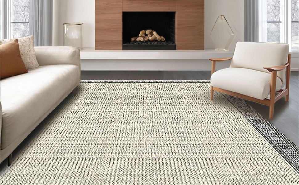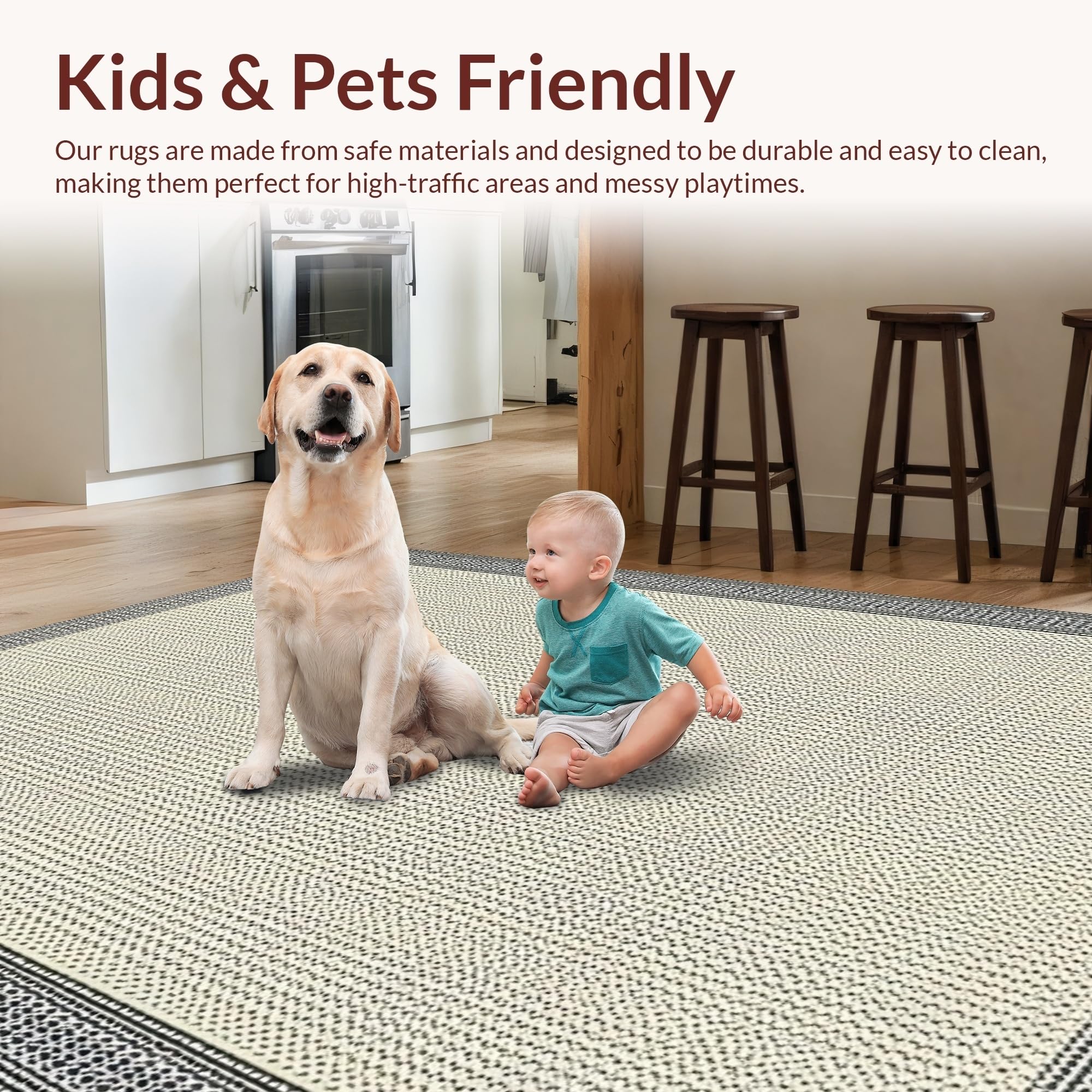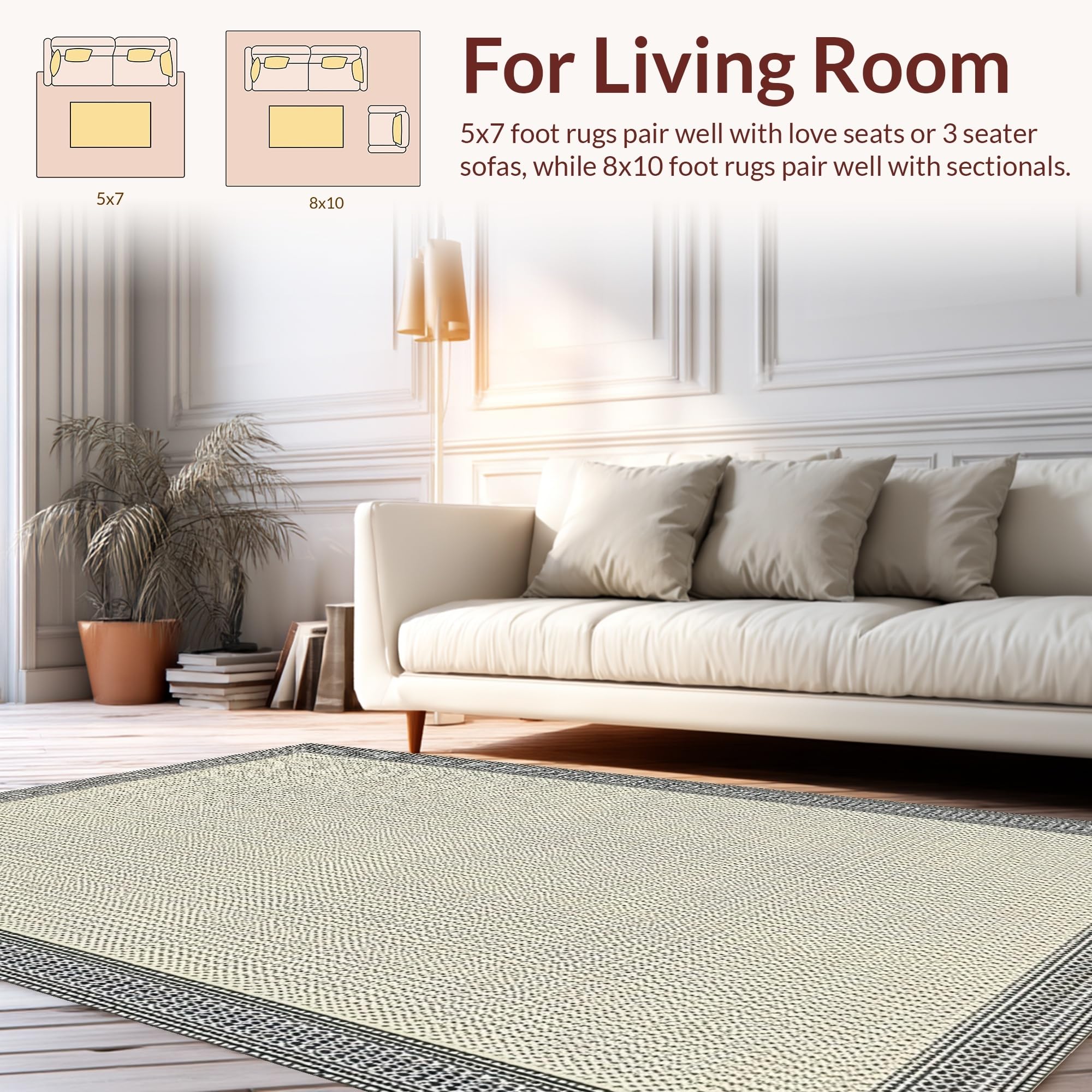 Ultra Soft Area Rug, Non Slip, Stain Resistant, Washable Area Rugs for Living Room, Bedroom, Stylish Black Spotted Contemporary Flair(Beige) Overview: