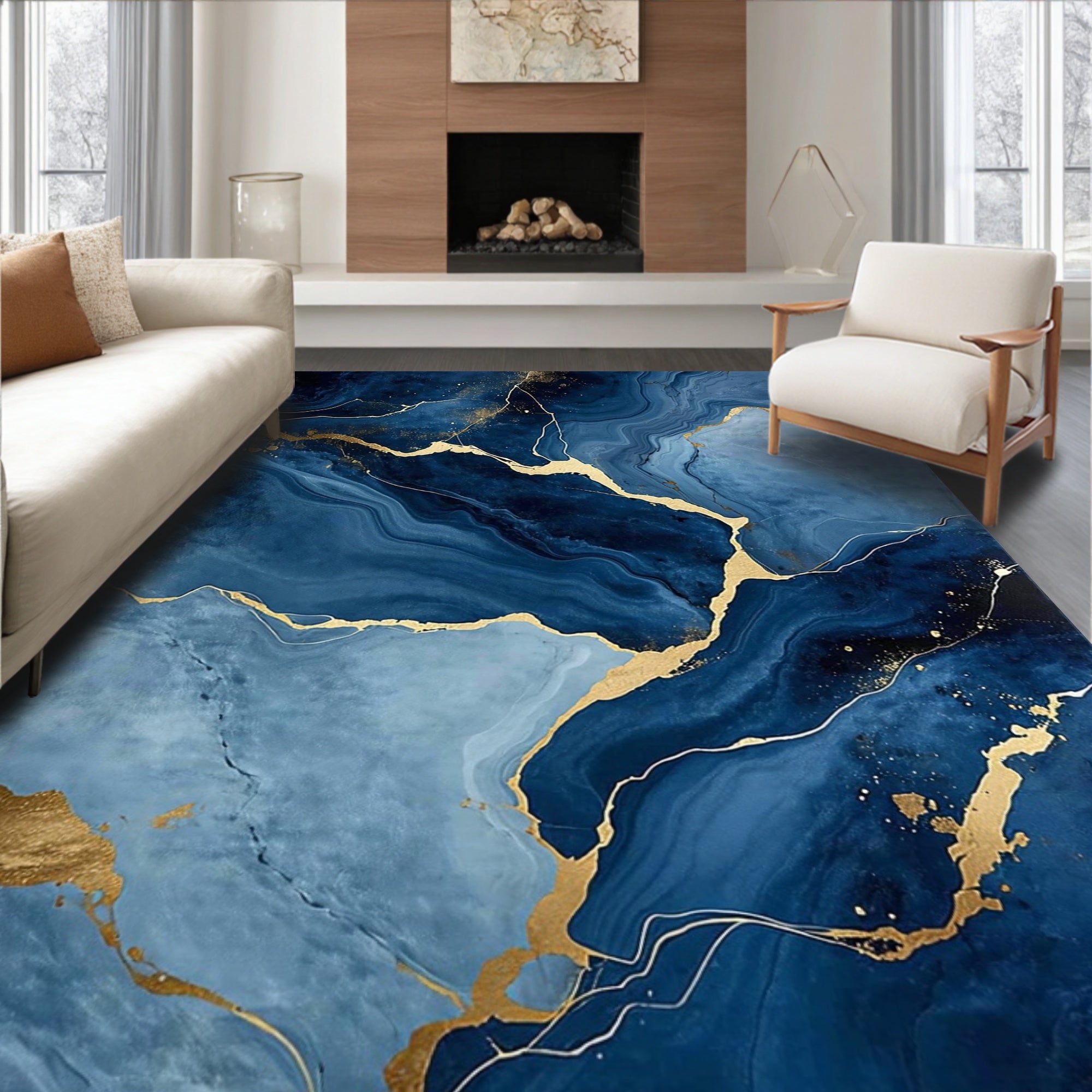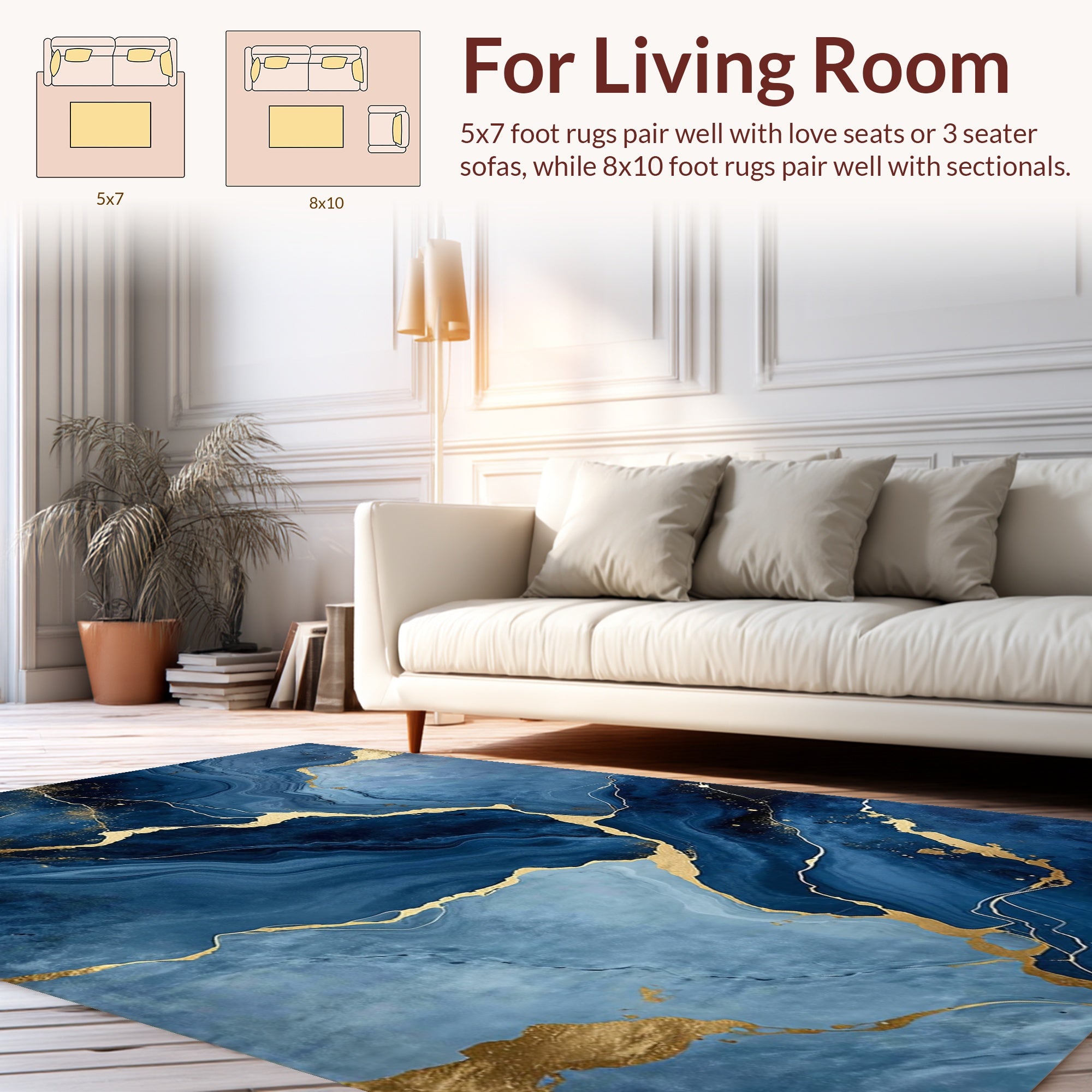 Flatwoven High Traffic Area Rug, Stylish Bold Color Arrangement, Non Slip, Stain Resistant, Washable Area Rugs for Living Room, Bedroom (Blue) Overview:
