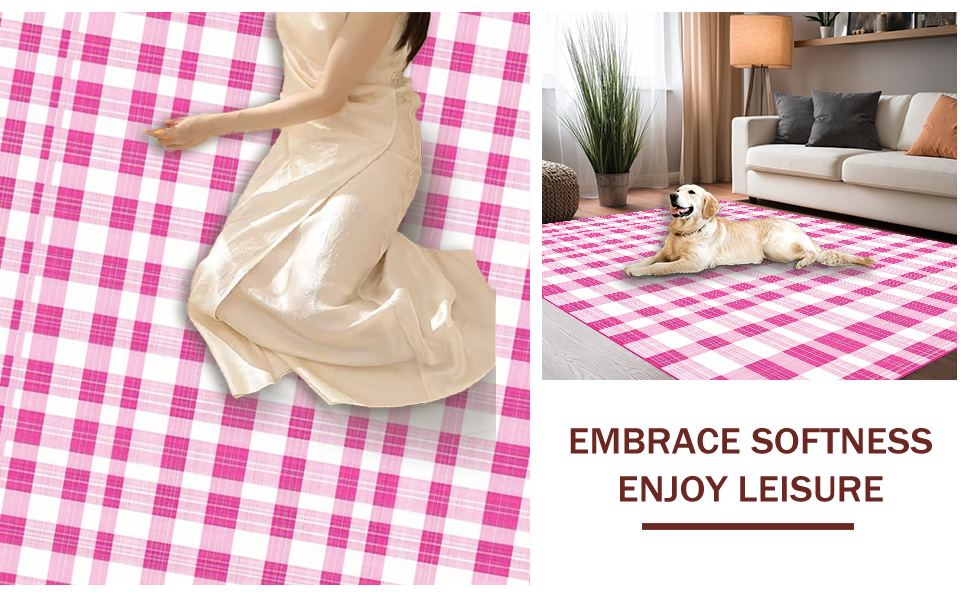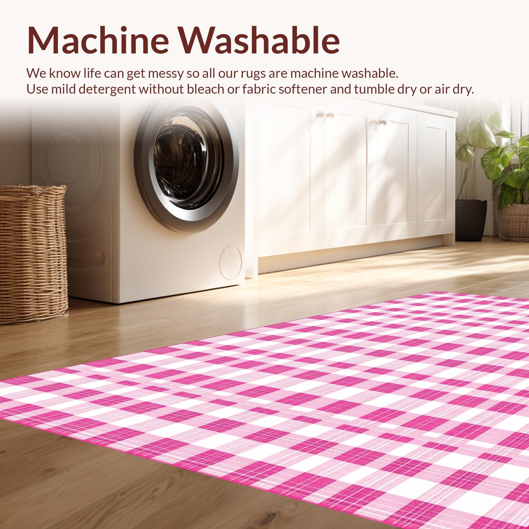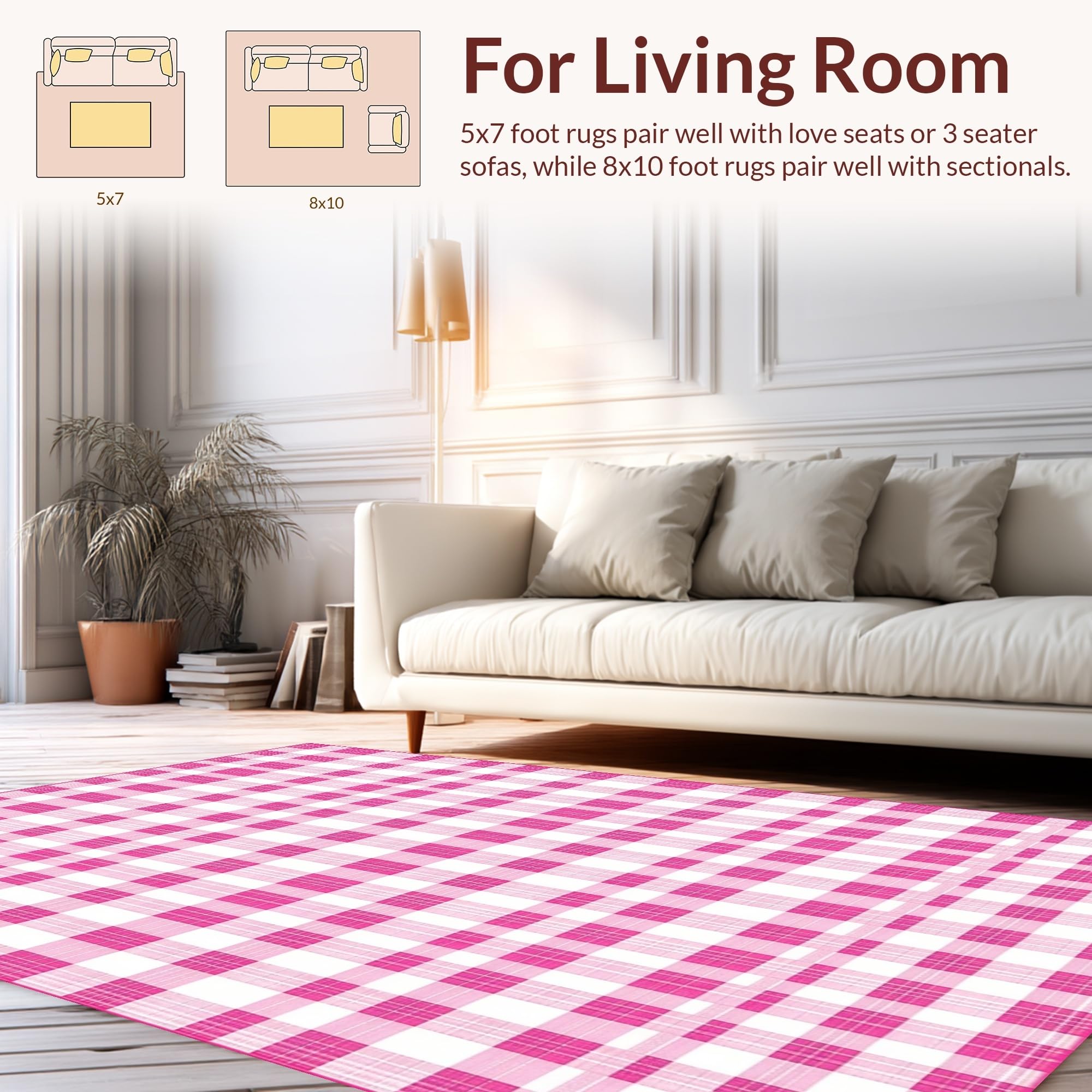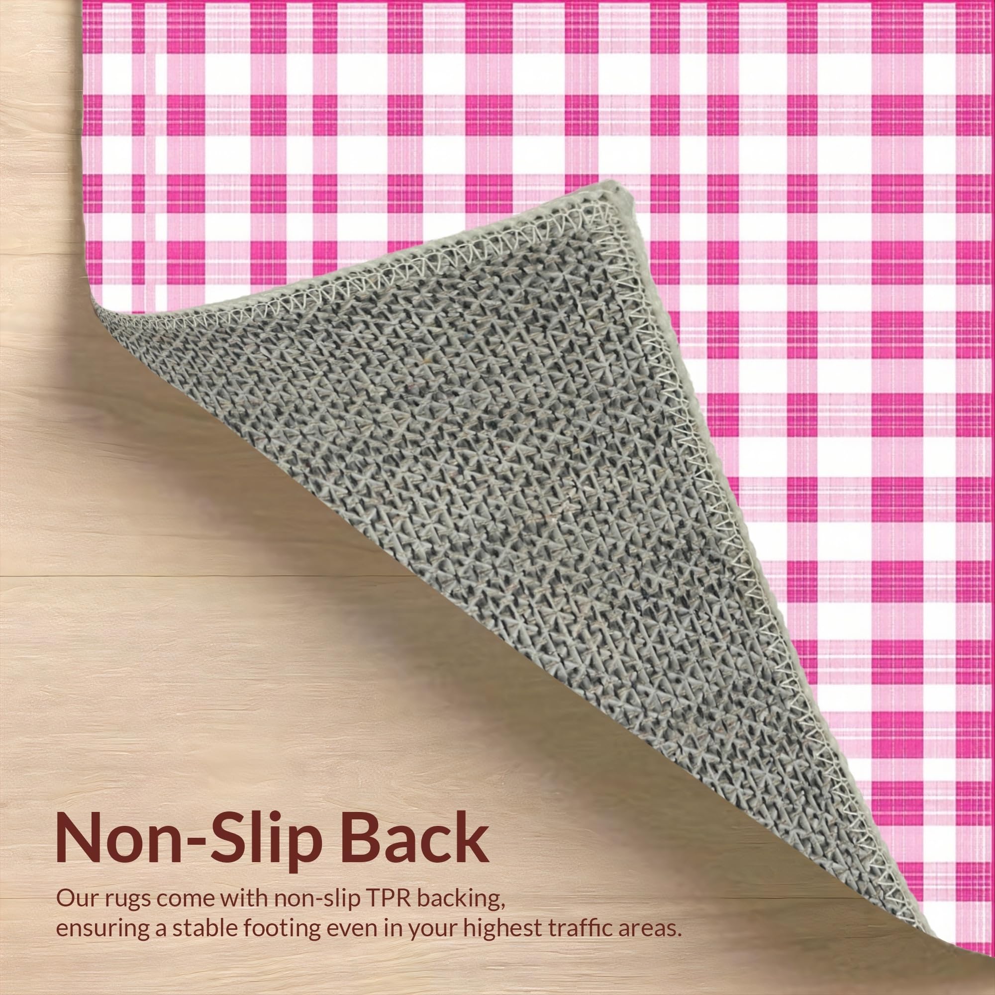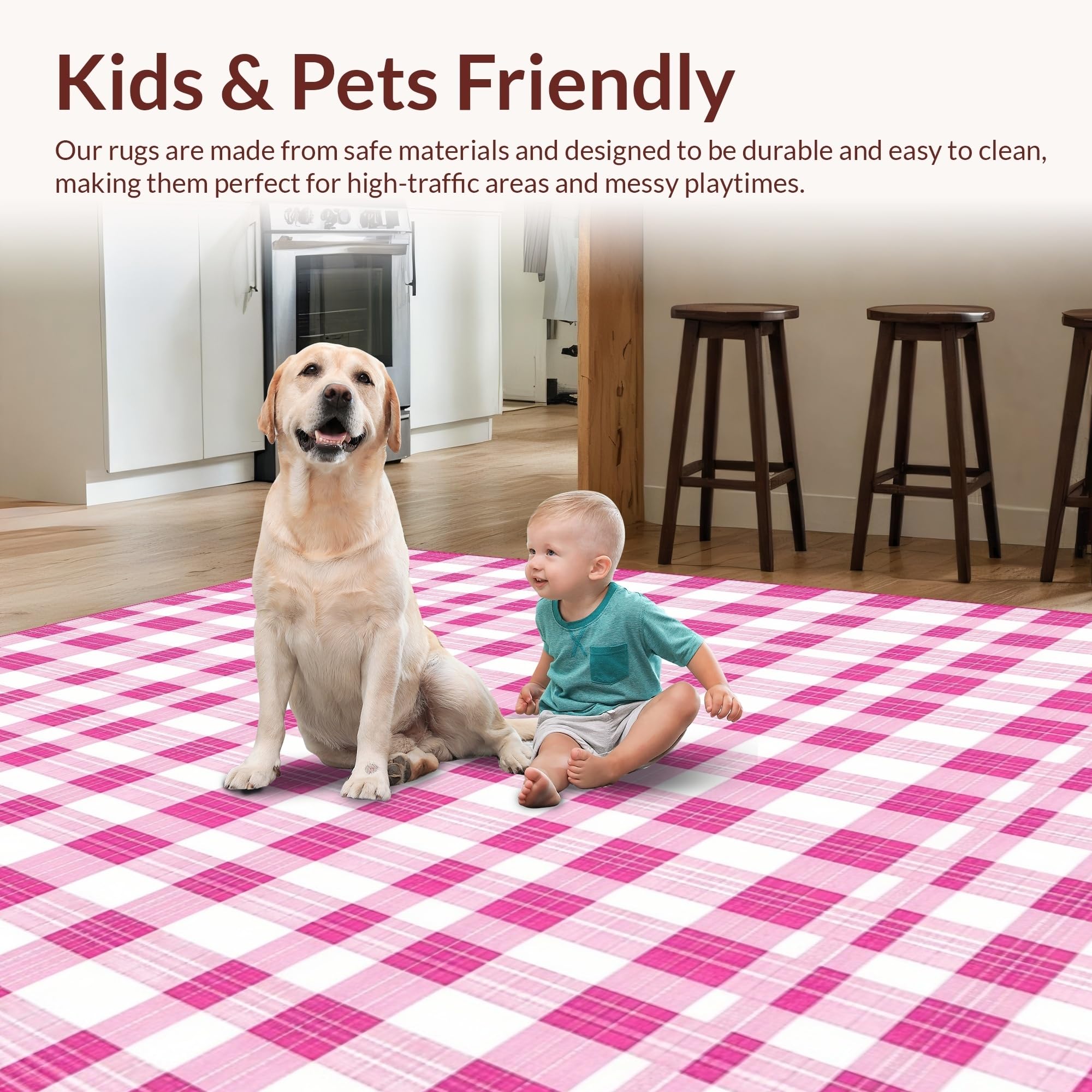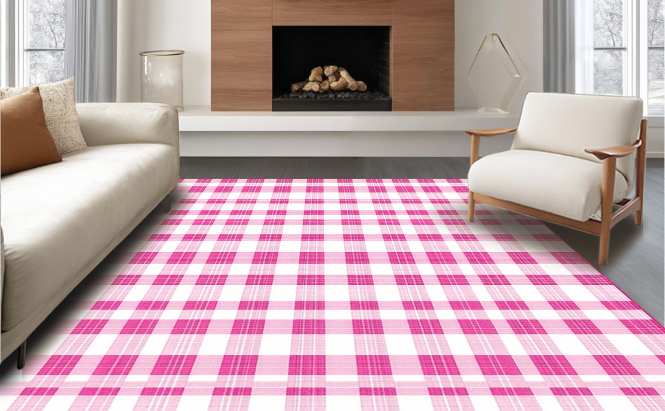 Ultra Soft Area Rug, Non Slip, Stain Resistant, Washable Area Rugs for Living Room, Bedroom, Stylish Bright Checkerboard Design(Pink) Overview: