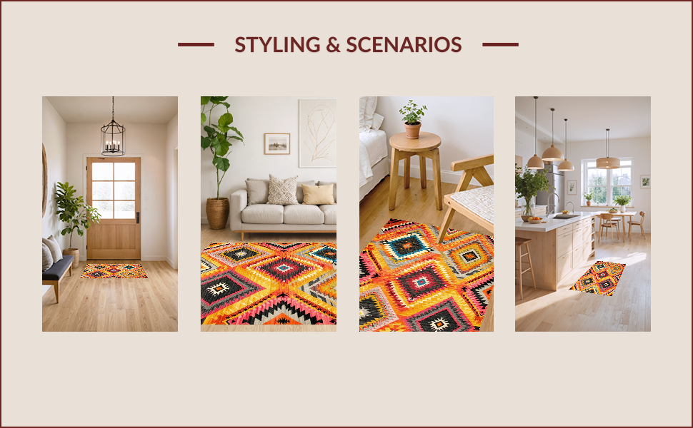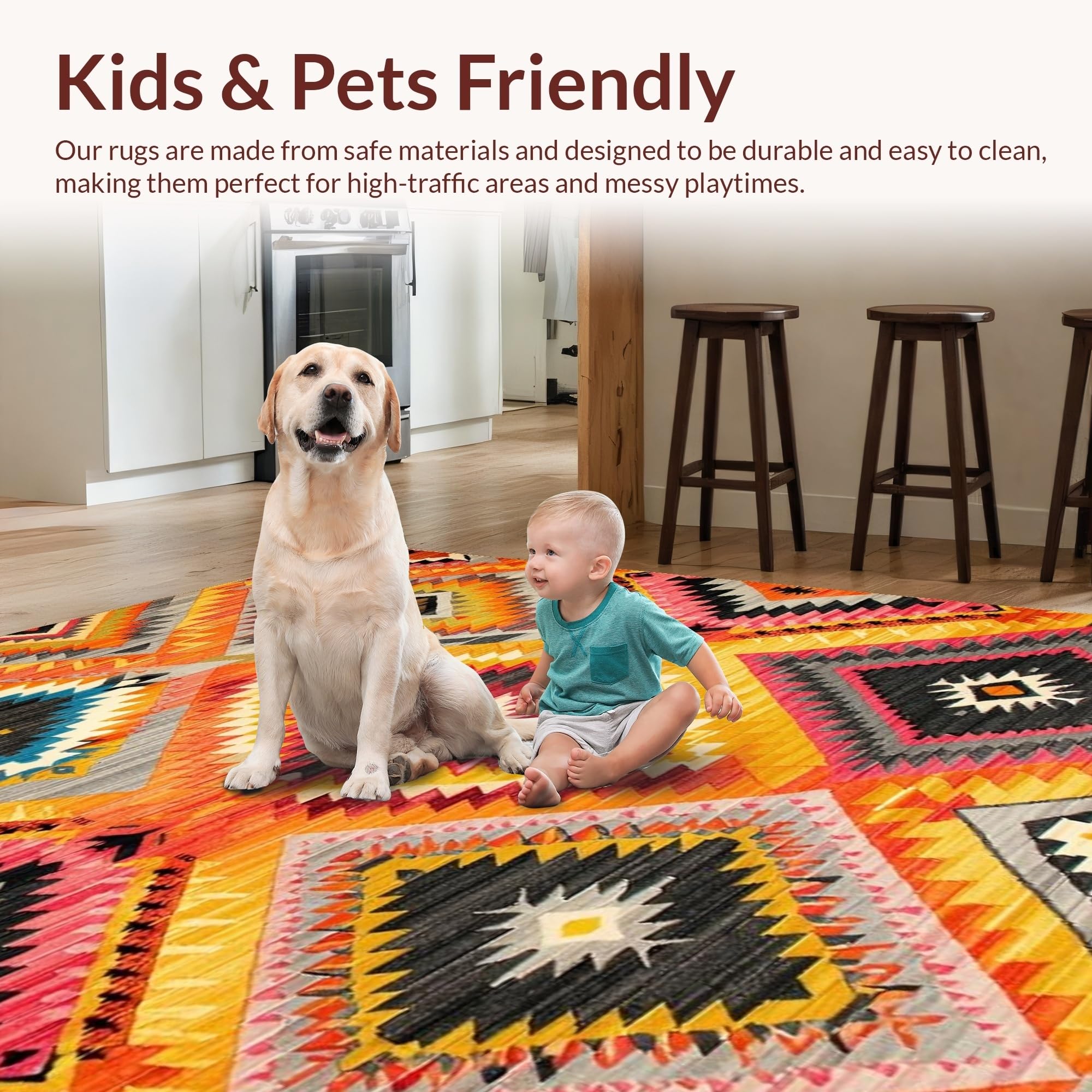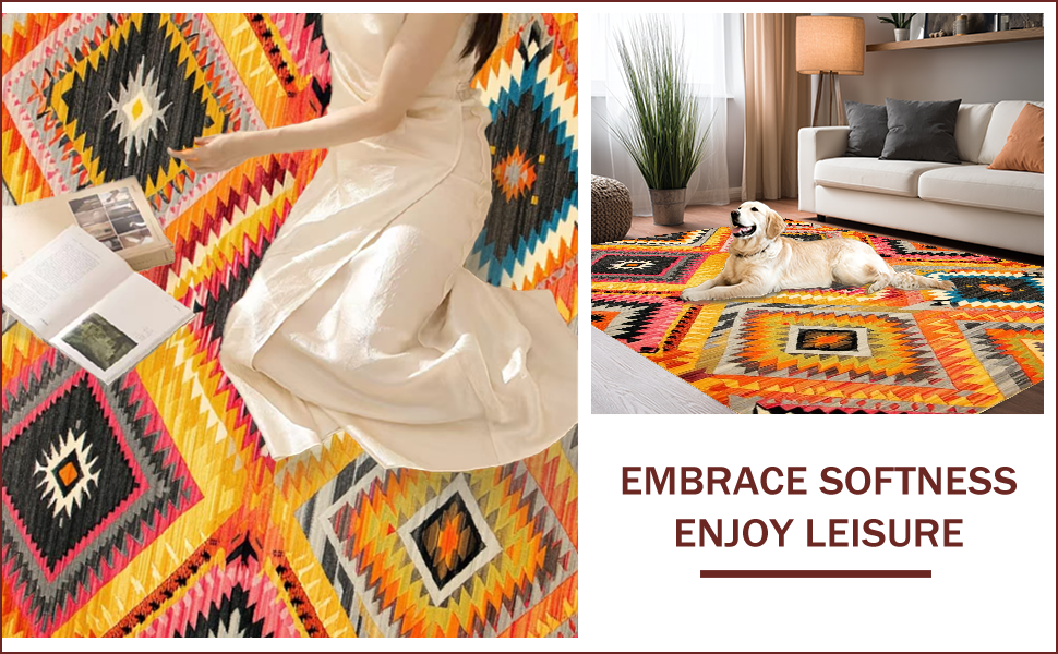 Ultra Soft Area Rug, Non Slip, Stain Resistant, Washable Area Rugs for Living Room, Bedroom, Stylish Checkered Design with Flair(Orange) Overview: