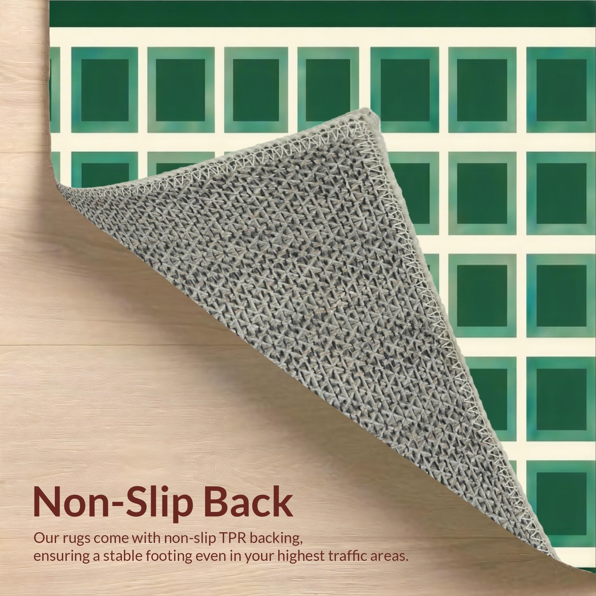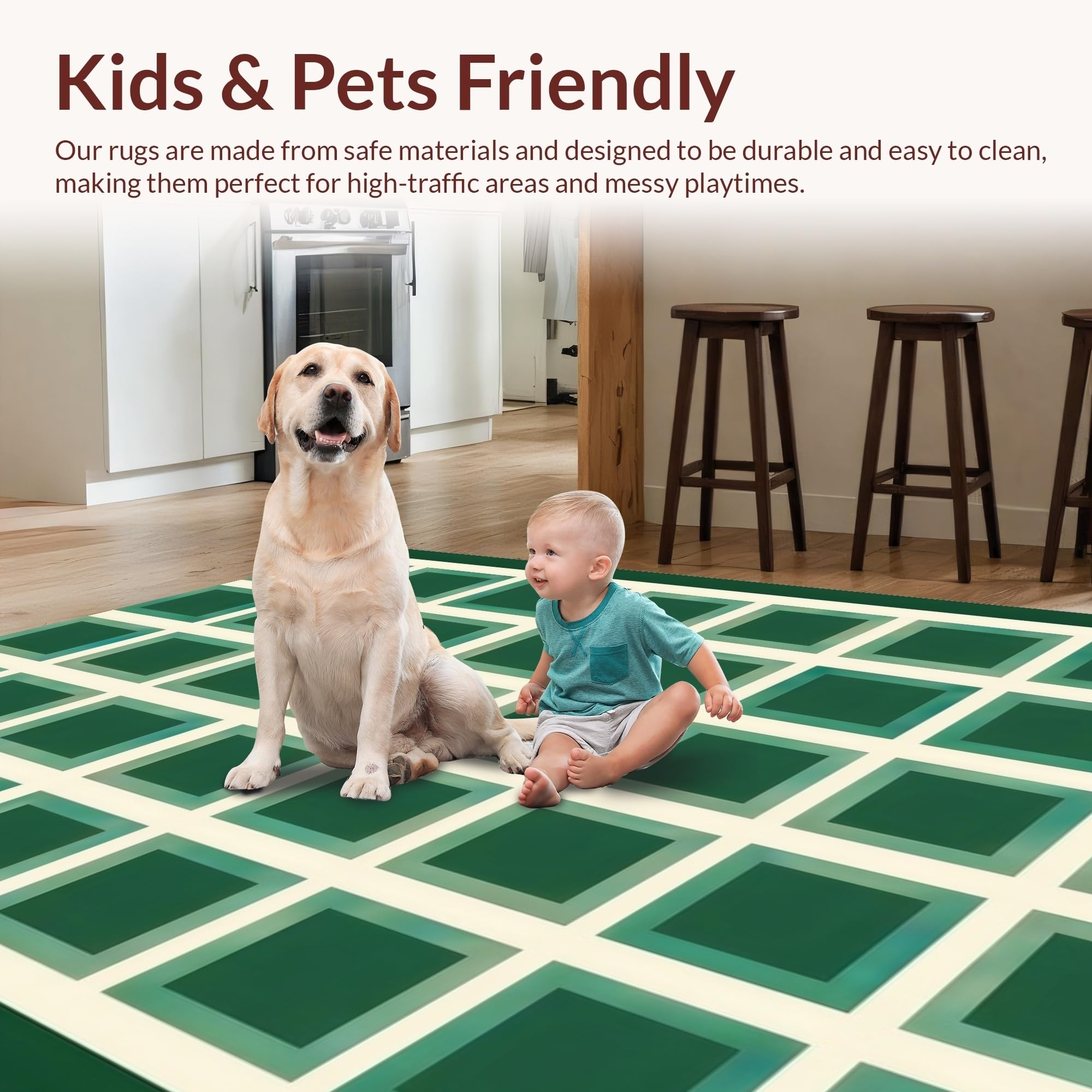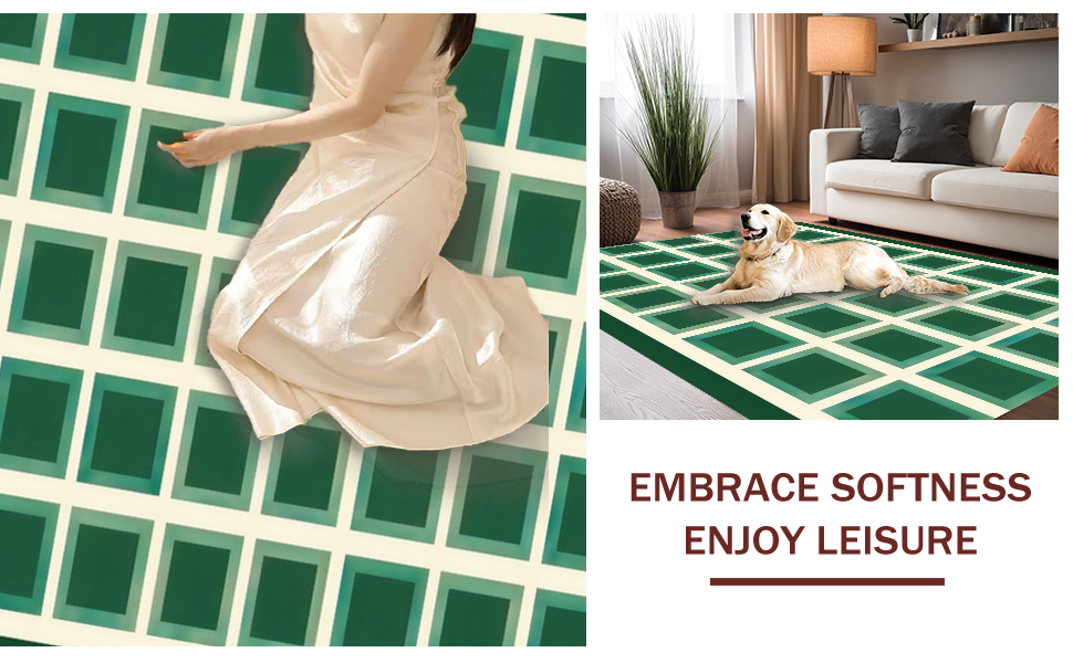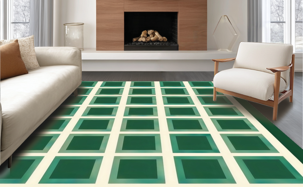 Ultra Soft Area Rug, Non Slip, Stain Resistant, Washable Area Rugs for Living Room, Bedroom, Stylish Circular Retro Geometry(Green) Overview: