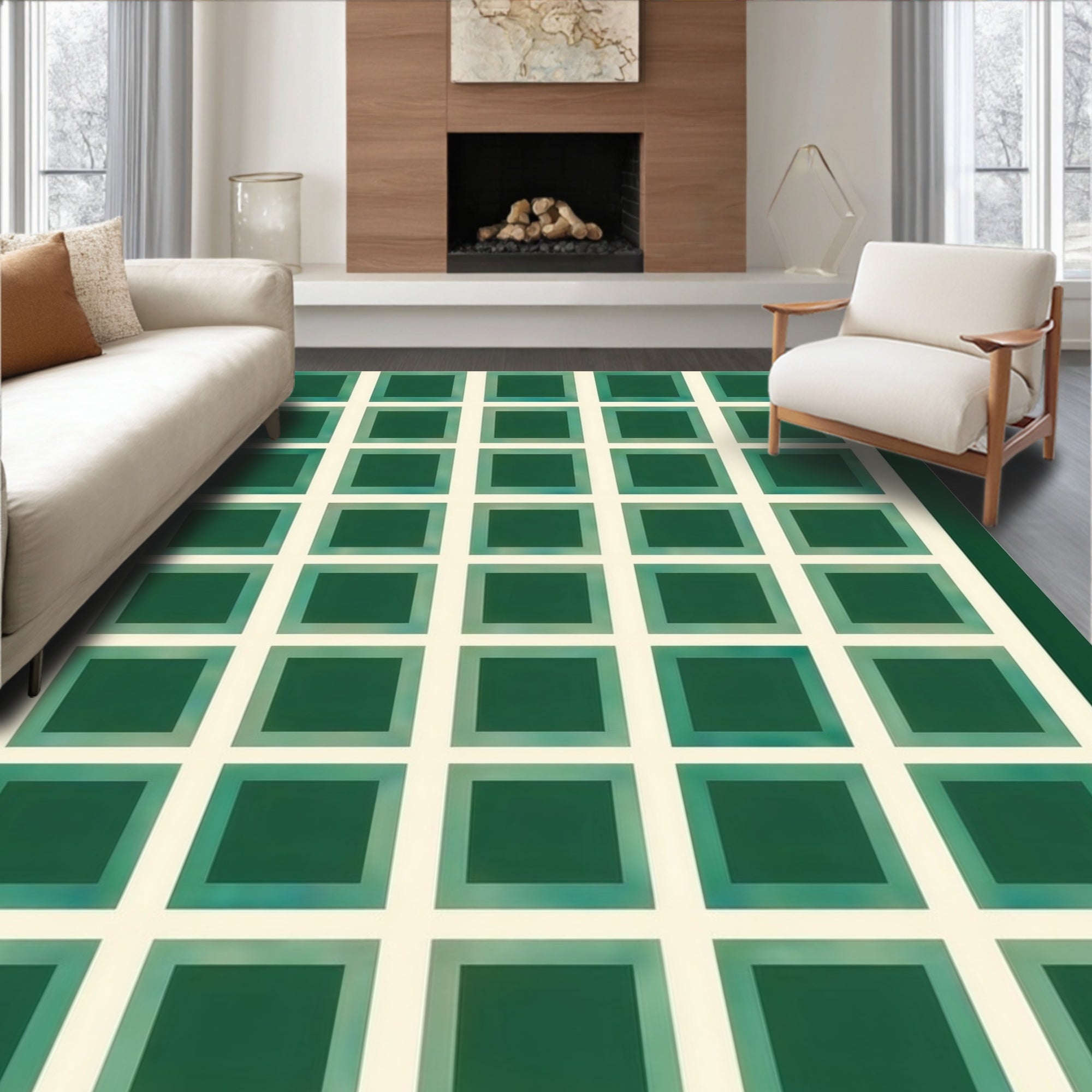 Flatwoven High Traffic Area Rug, Stylish Circular Retro Geometry, Non Slip, Stain Resistant, Washable Area Rugs for Living Room, Bedroom (Green) Overview: