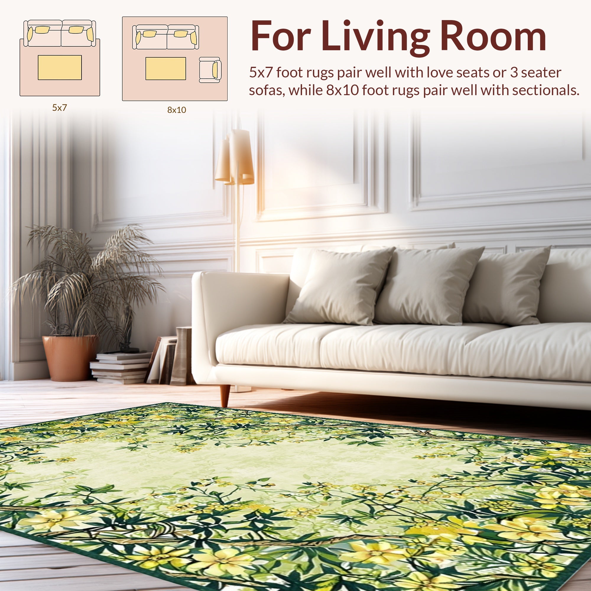 Flatwoven High Traffic Area Rug, Stylish Inspired Print, Non Slip, Stain Resistant, Washable Area Rugs for Living Room, Bedroom (Green) Overview: