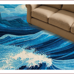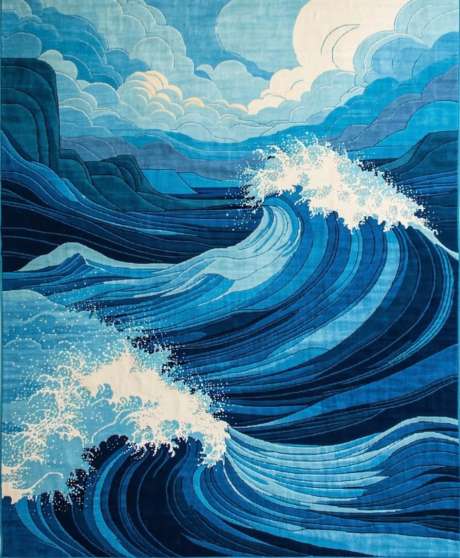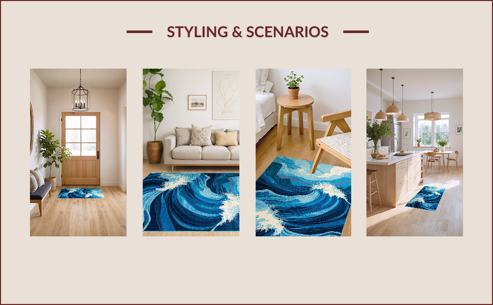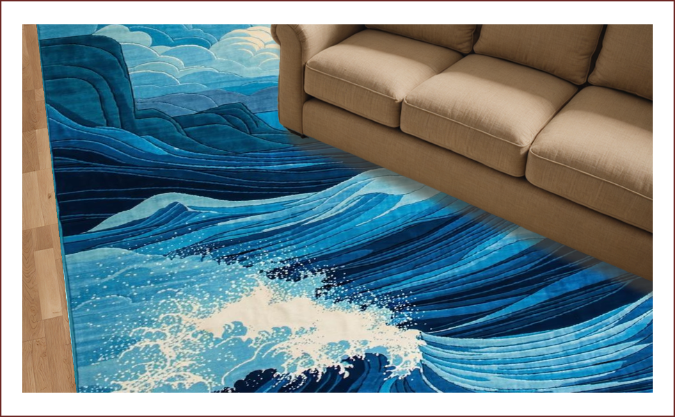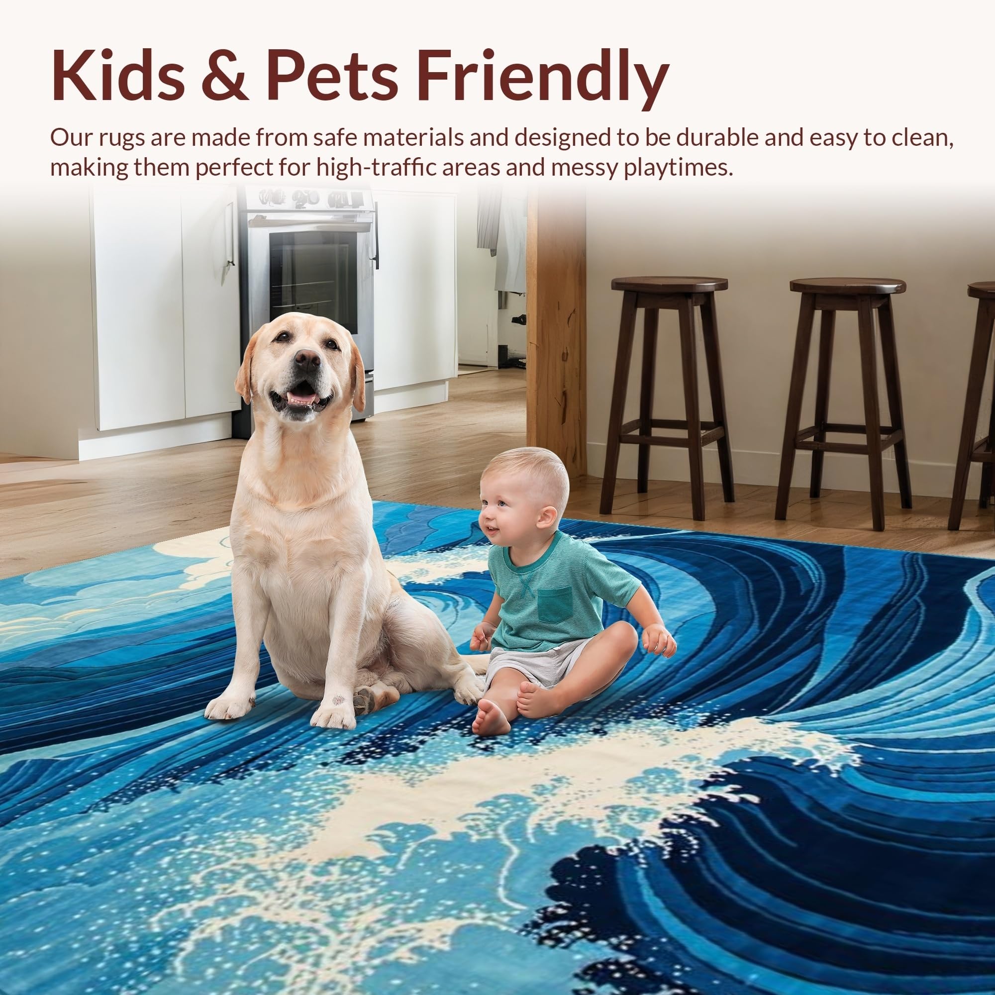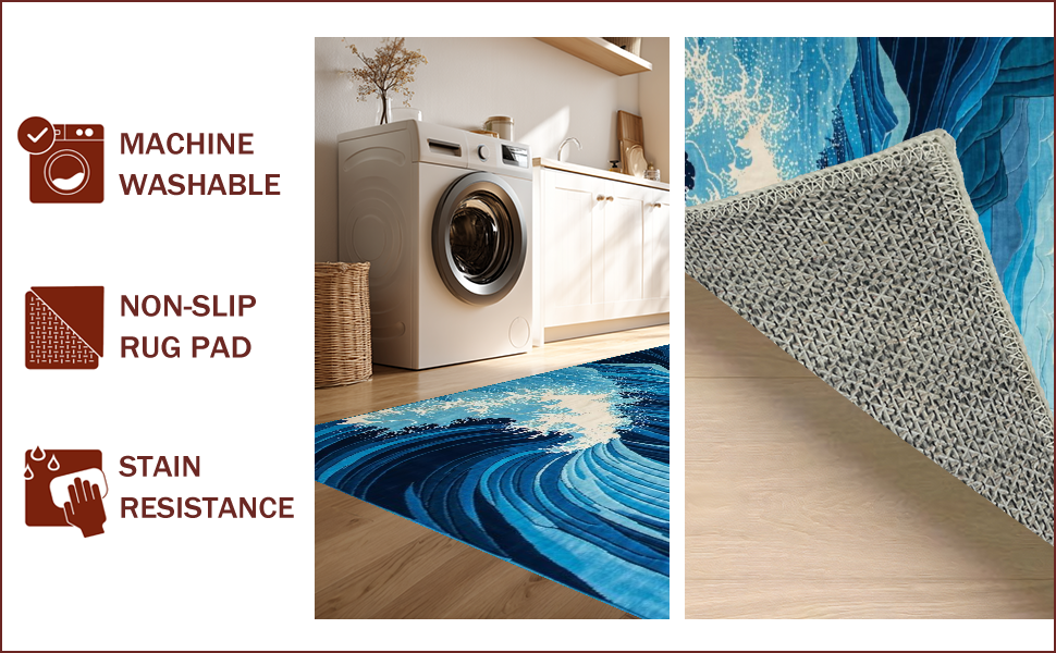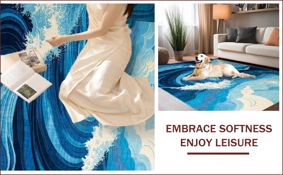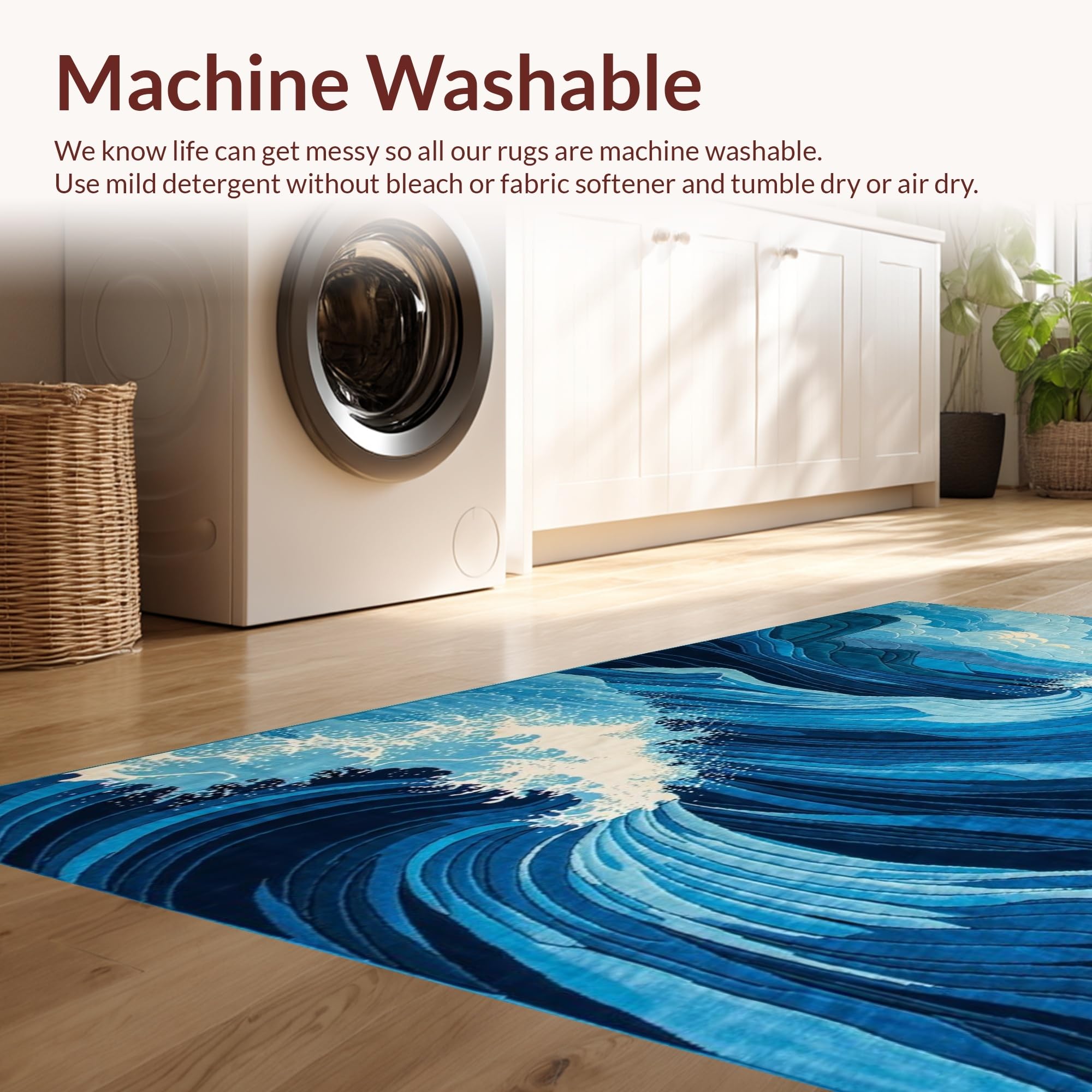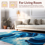 Ultra Soft Area Rug, Non Slip, Stain Resistant, Washable Area Rugs for Living Room, Bedroom, Stylish Coastal Wave Motif(Blue) Overview: