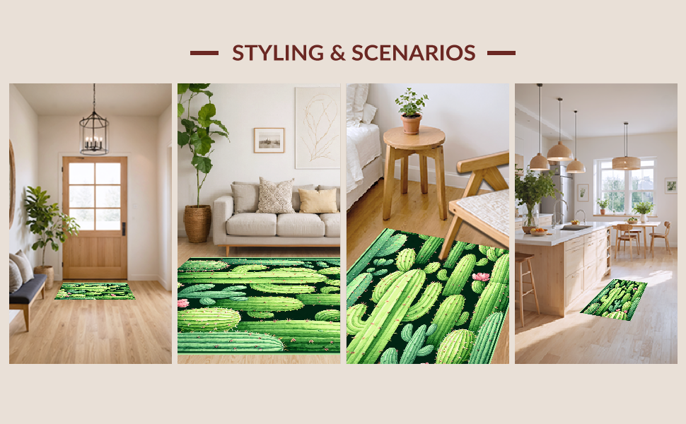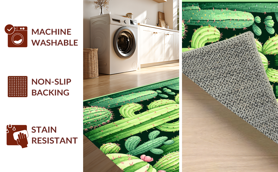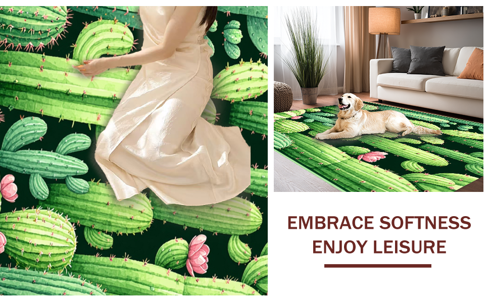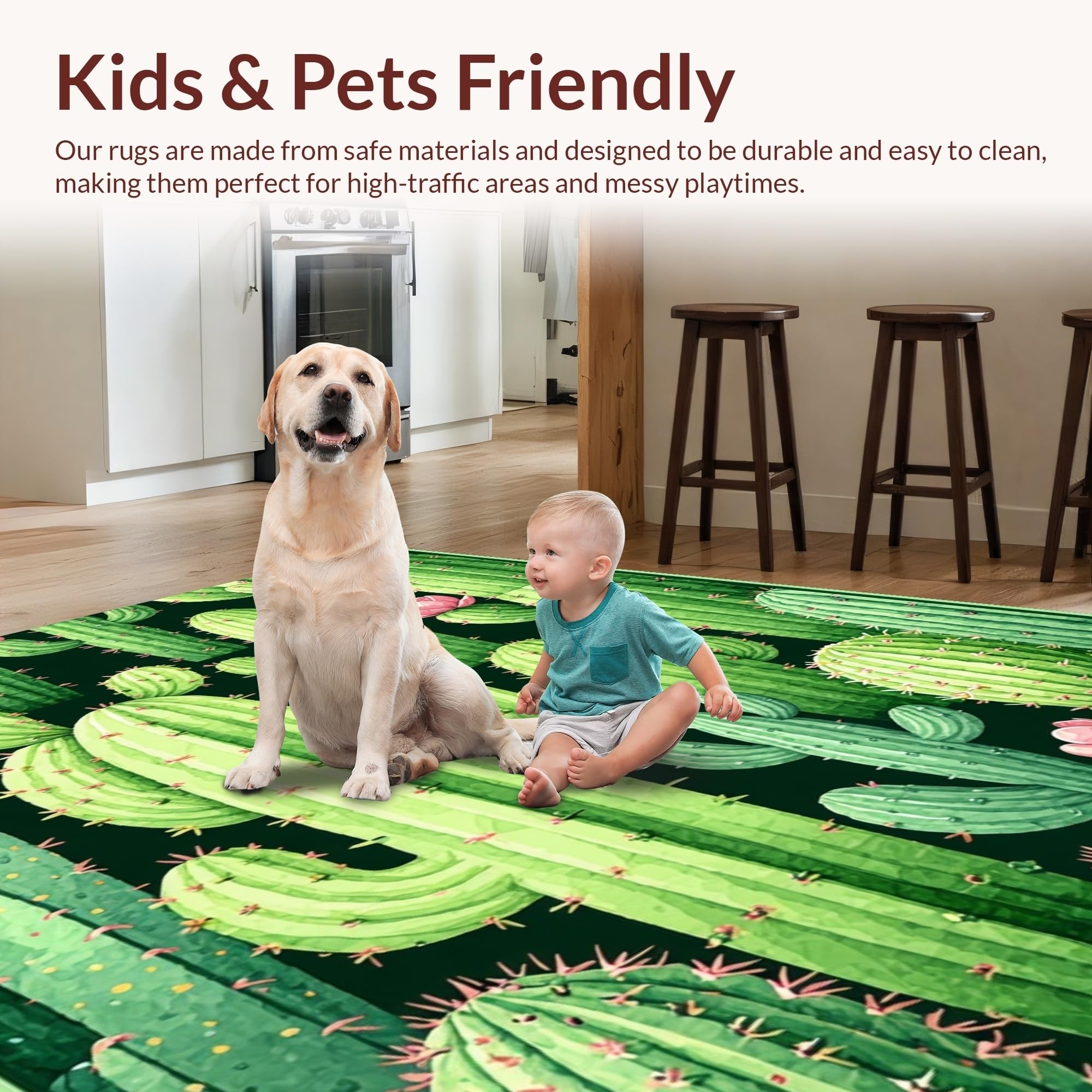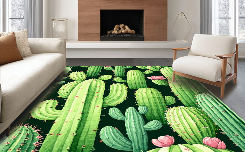 Ultra Soft Area Rug, Non Slip, Stain Resistant, Washable Area Rugs for Living Room, Bedroom, Stylish Colorful Succulent Themed Accents(Green) Overview: