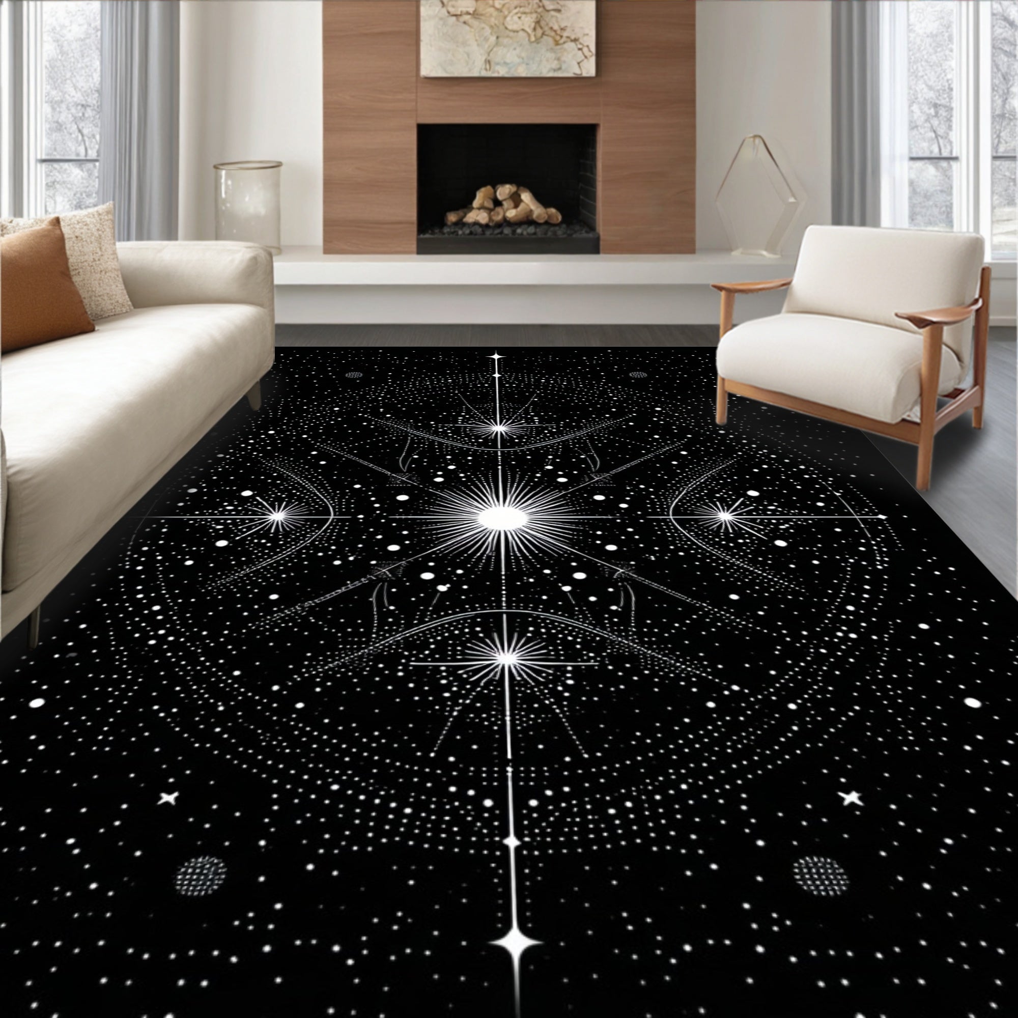 Flatwoven High Traffic Area Rug, Stylish Constellation Geometric, Non Slip, Stain Resistant, Washable Area Rugs for Living Room, Bedroom (Black) Overview: