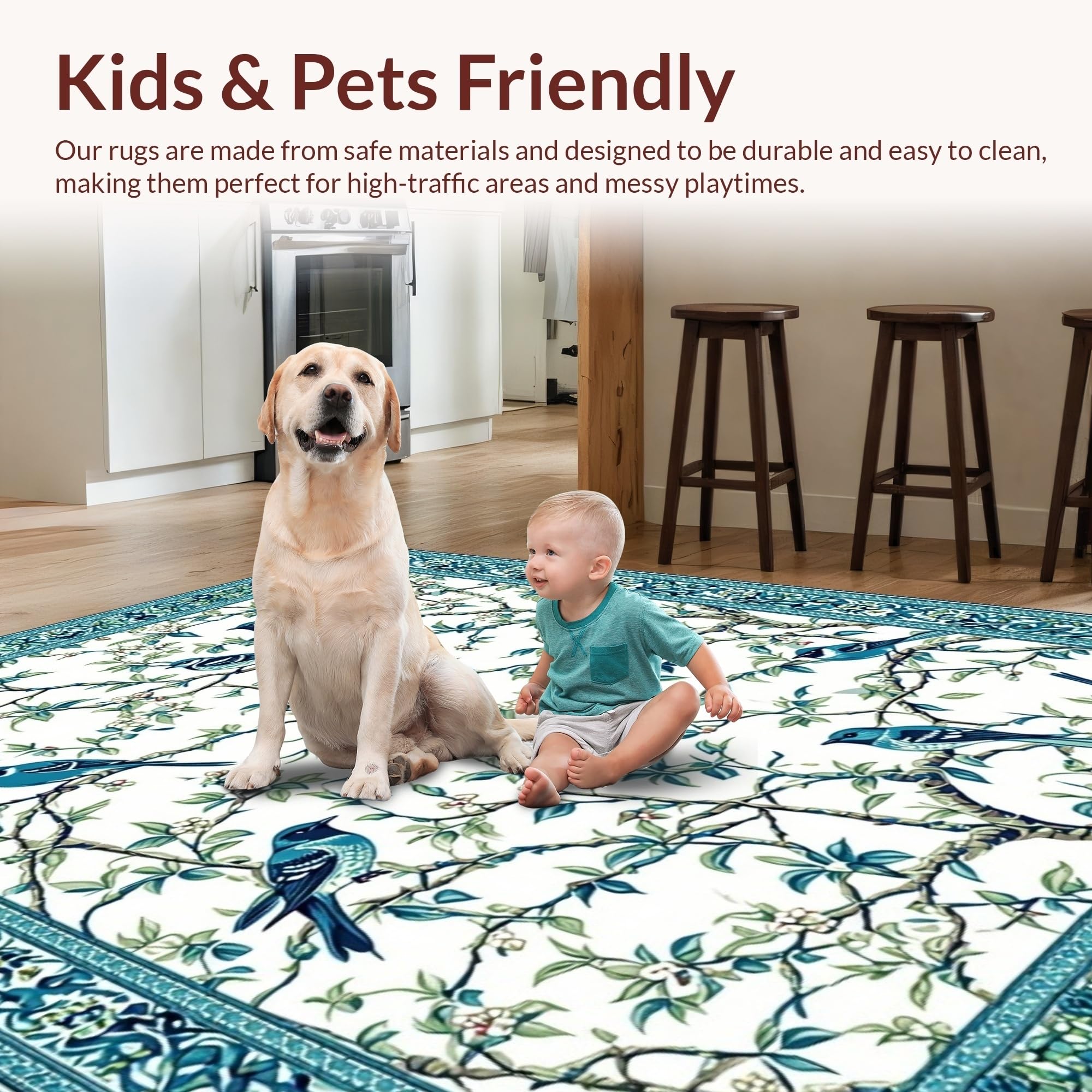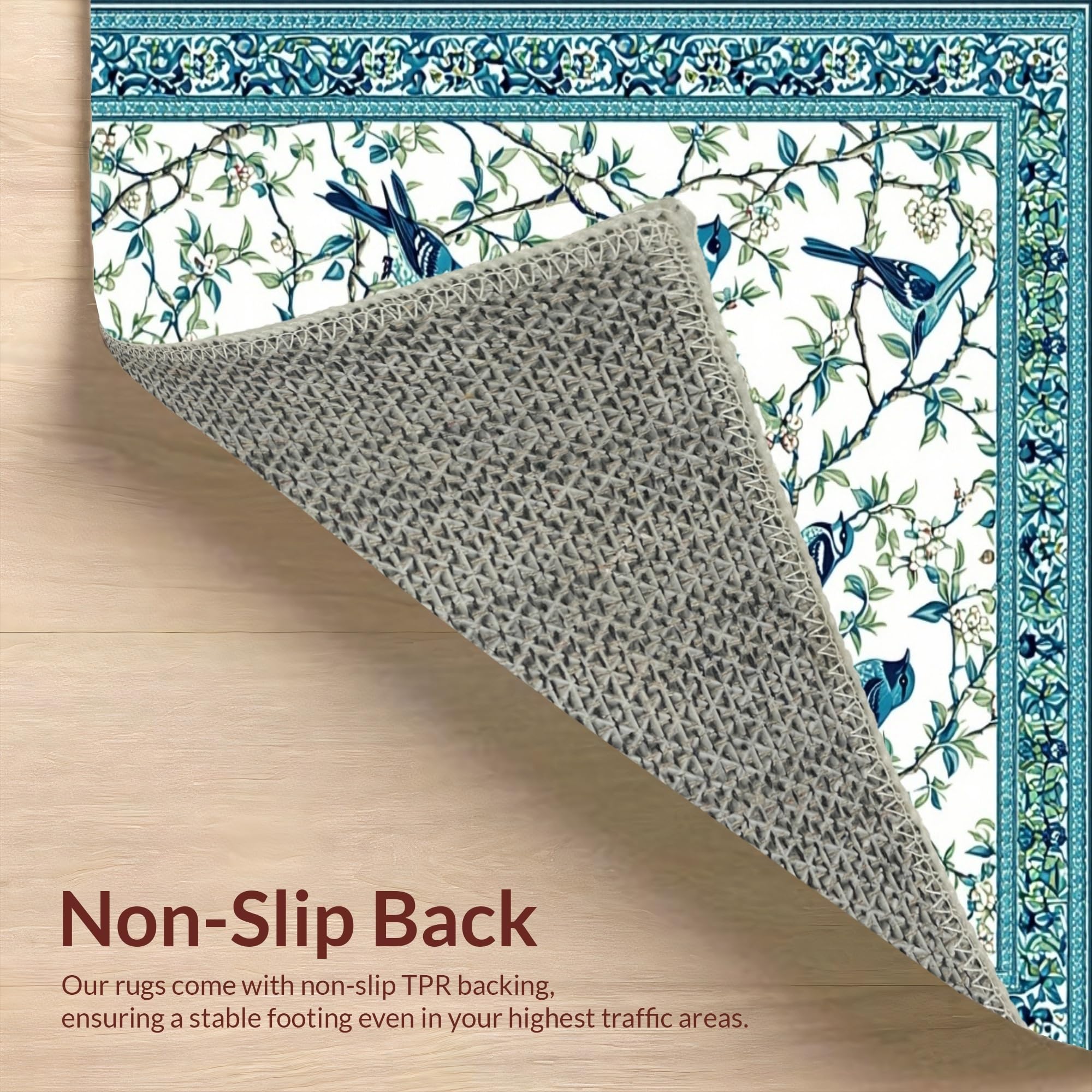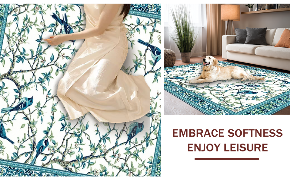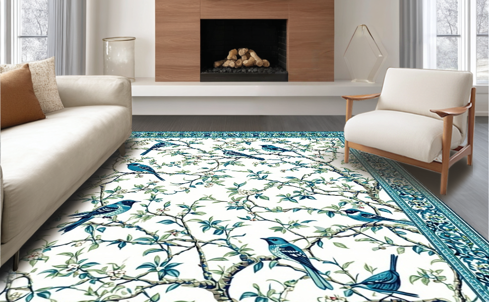 Ultra Soft Area Rug, Non Slip, Stain Resistant, Washable Area Rugs for Living Room, Bedroom, Stylish Contemporary Foliage Arrangement(White) Overview: