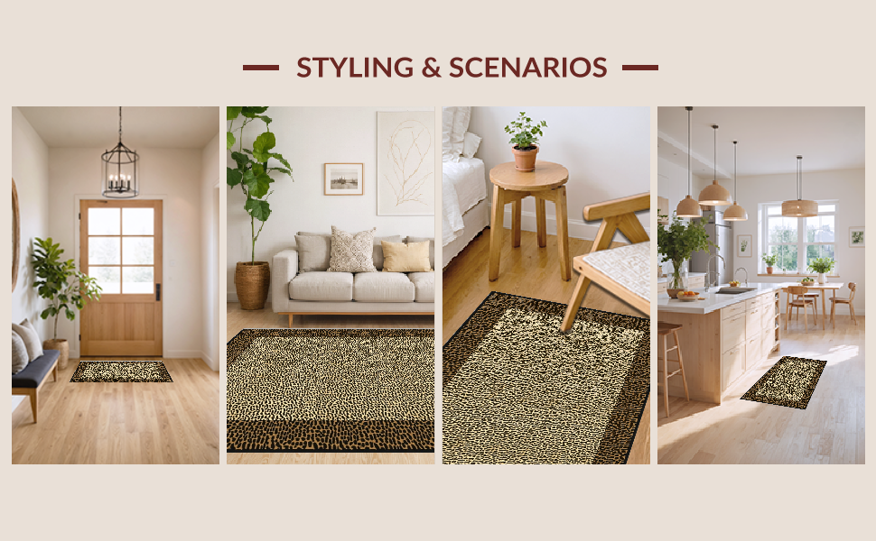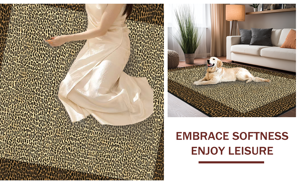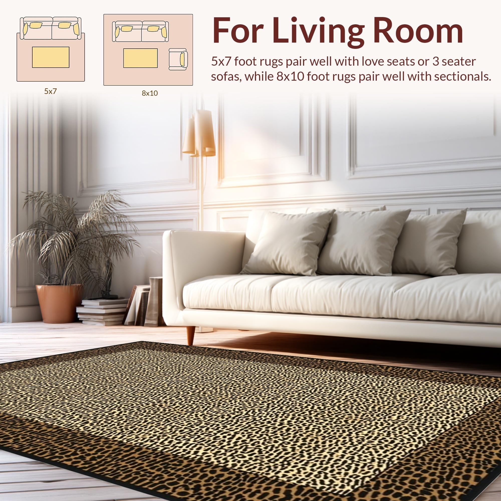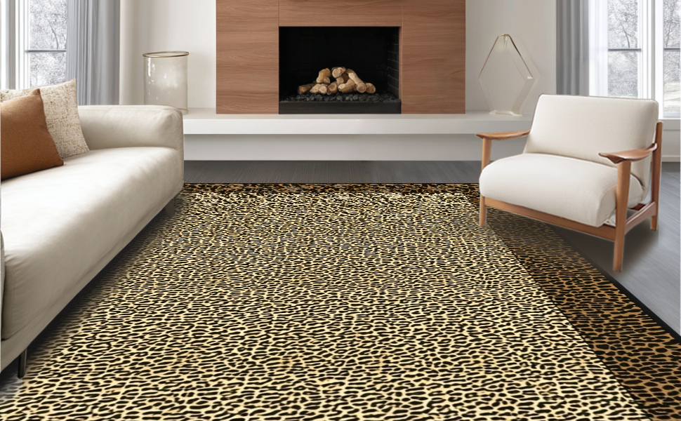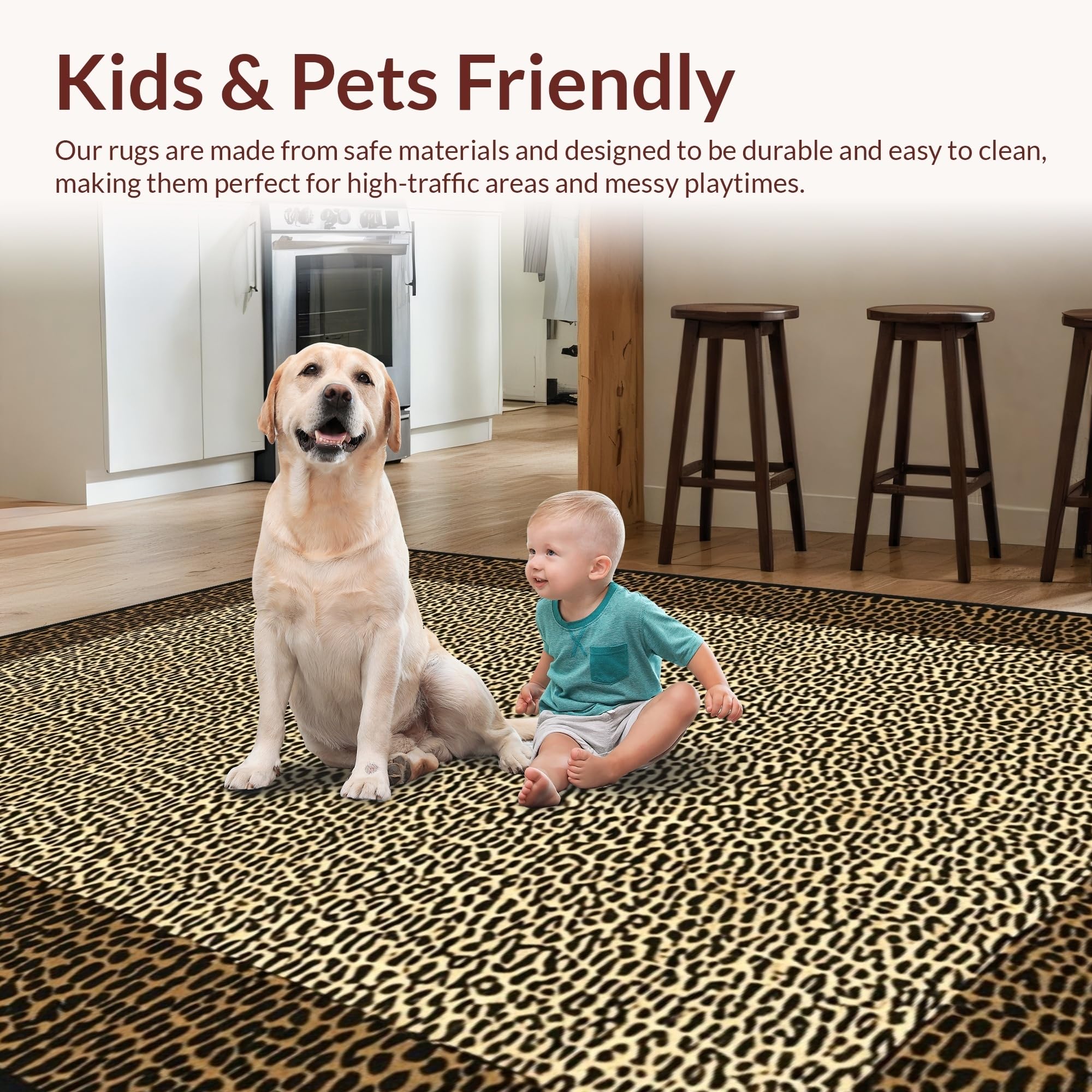 Ultra Soft Area Rug, Non Slip, Stain Resistant, Washable Area Rugs for Living Room, Bedroom, Stylish Contemporary Wild Motif(Beige) Overview: