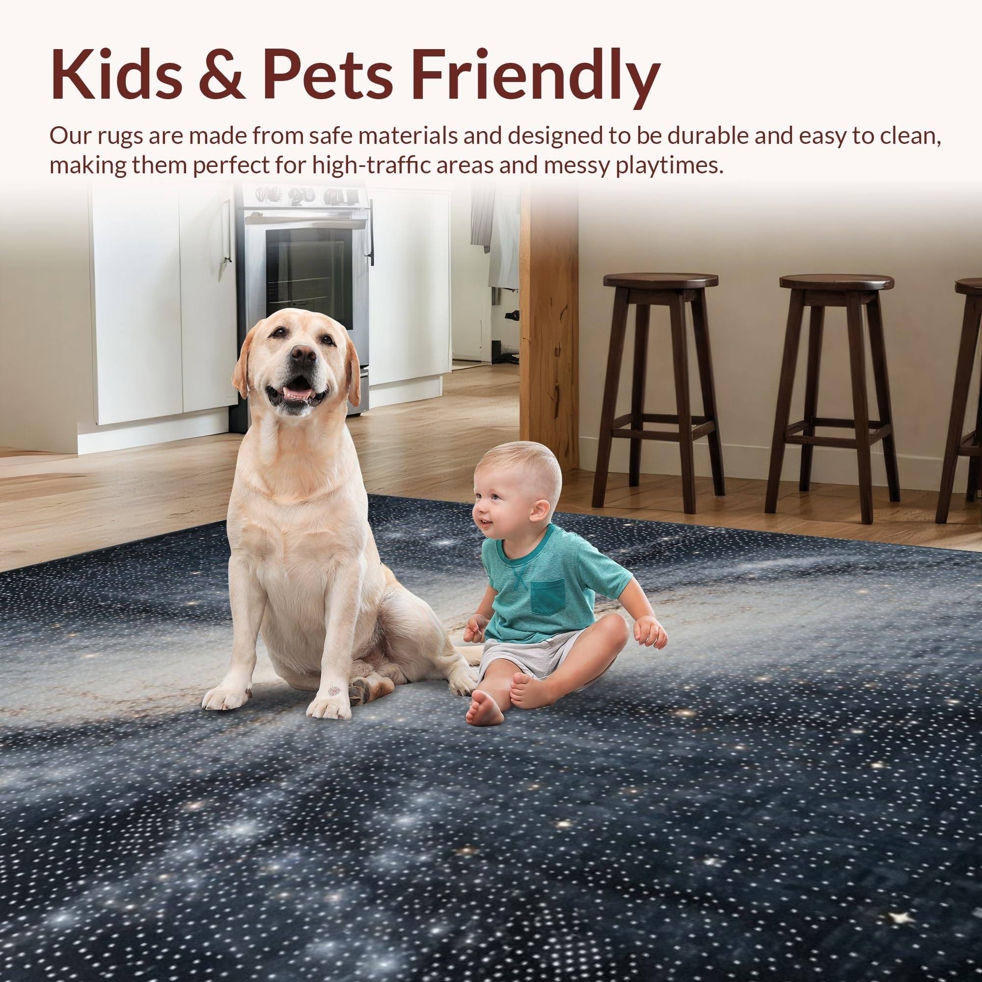 Ultra Soft Area Rug, Non Slip, Stain Resistant, Washable Area Rugs for Living Room, Bedroom, Stylish Cosmic Gray and White(Gray) Overview: