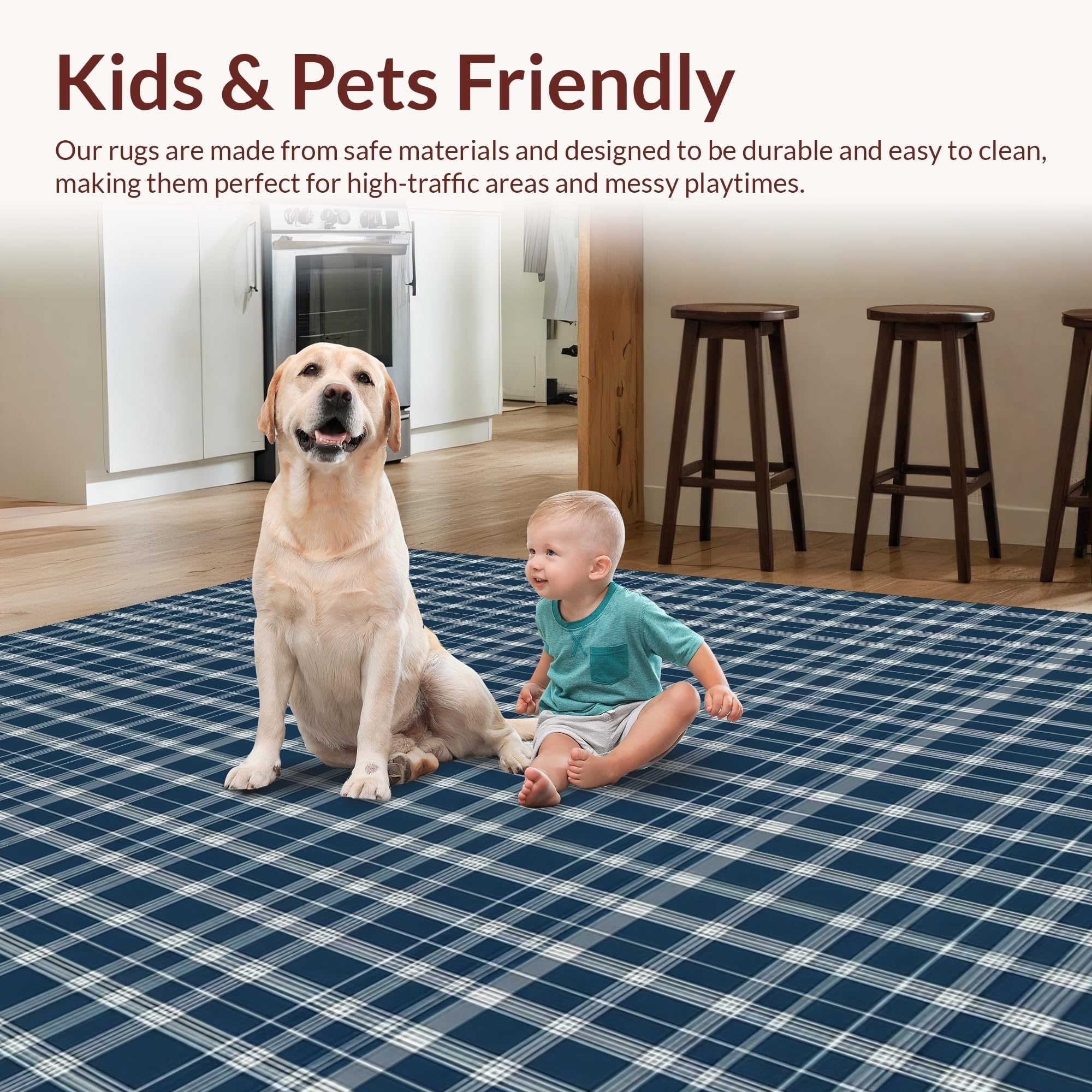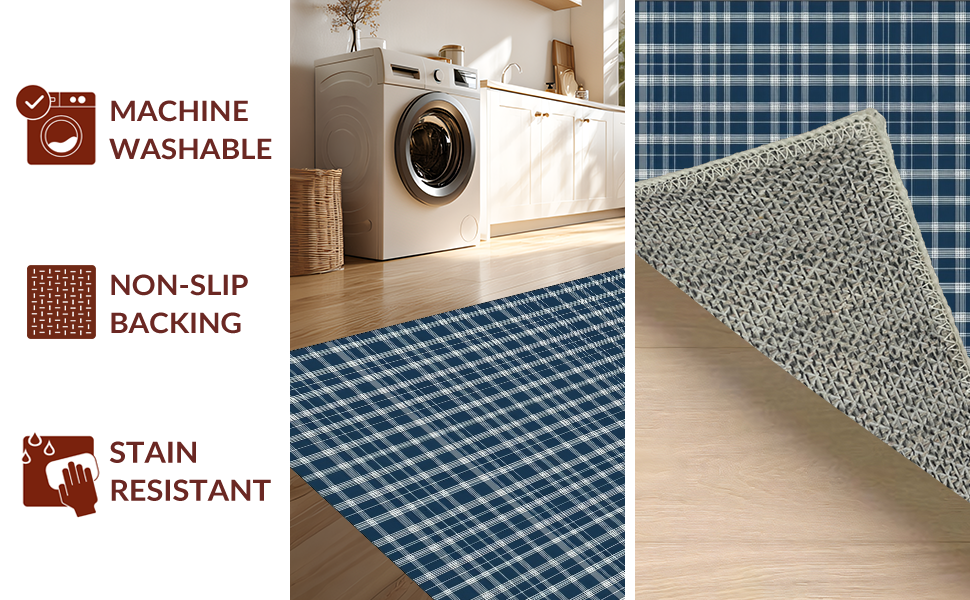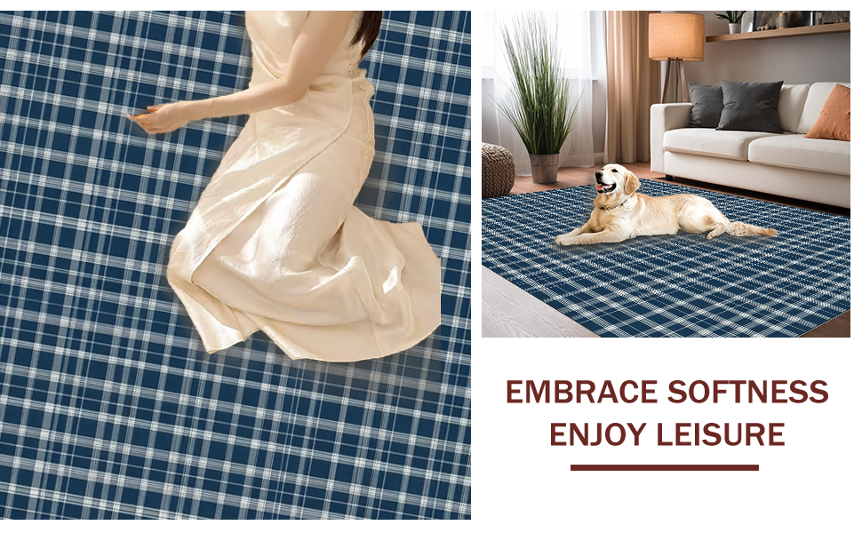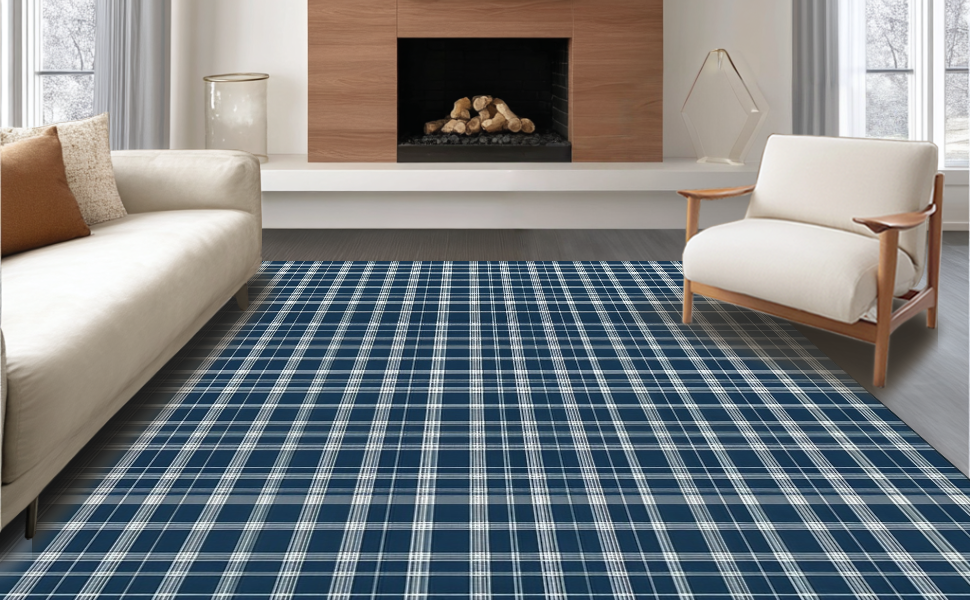 Ultra Soft Area Rug, Non Slip, Stain Resistant, Washable Area Rugs for Living Room, Bedroom, Stylish Country Living Buffalo Fashion(Blue) Overview: