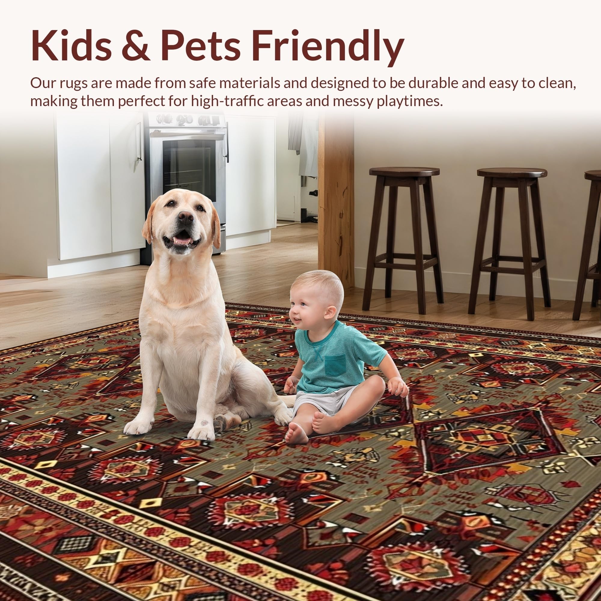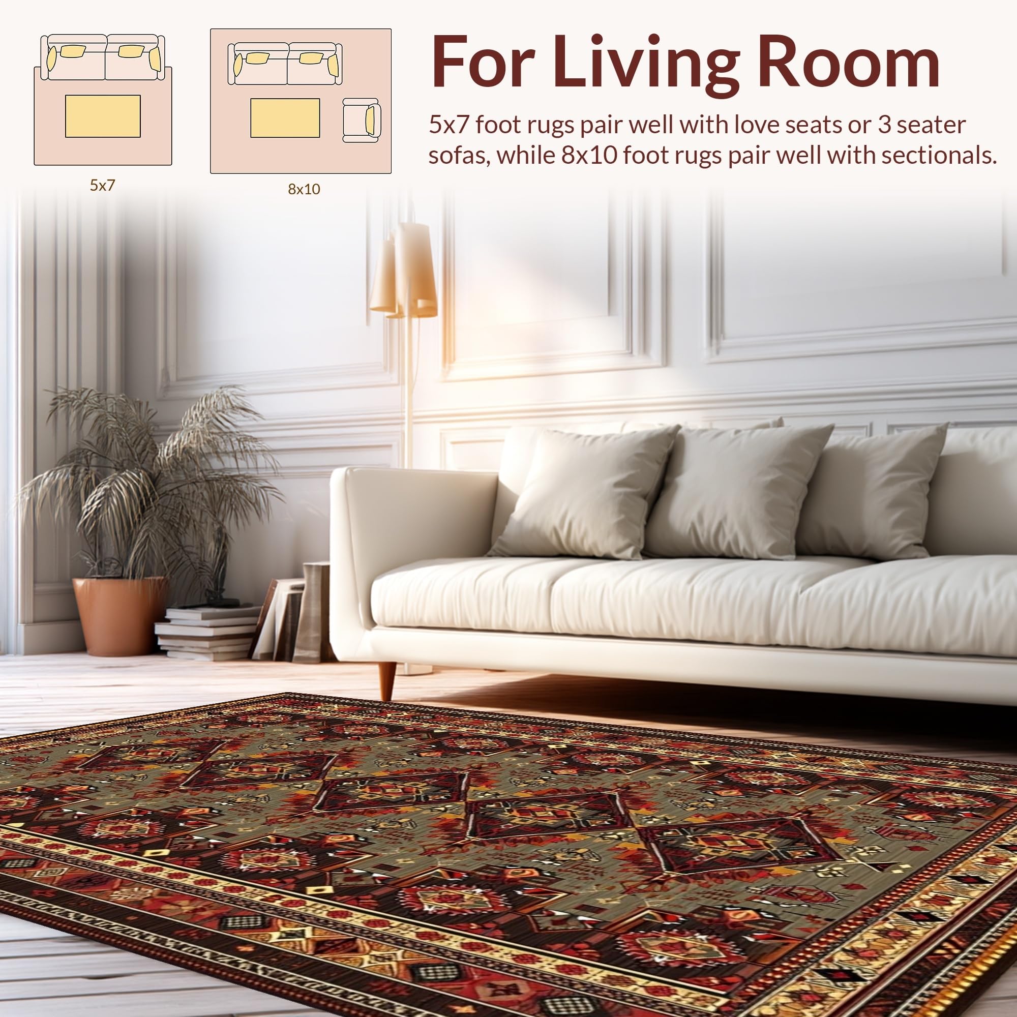 Ultra Soft Area Rug, Non Slip, Stain Resistant, Washable Area Rugs for Living Room, Bedroom, Stylish Cozy Multi-Hued Arrangement(Red) Overview: