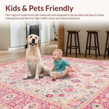 Ultra Soft Area Rug, Non Slip, Stain Resistant, Washable Area Rugs for Living Room, Bedroom, Stylish Distressed Linear Motif(Pink) Overview: