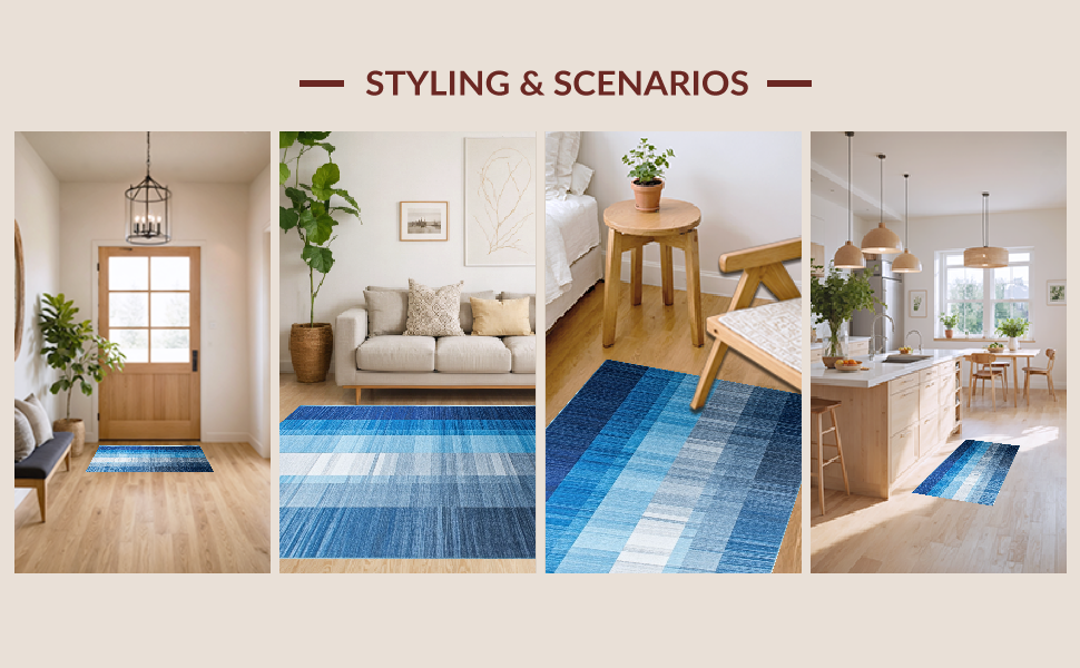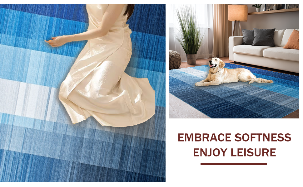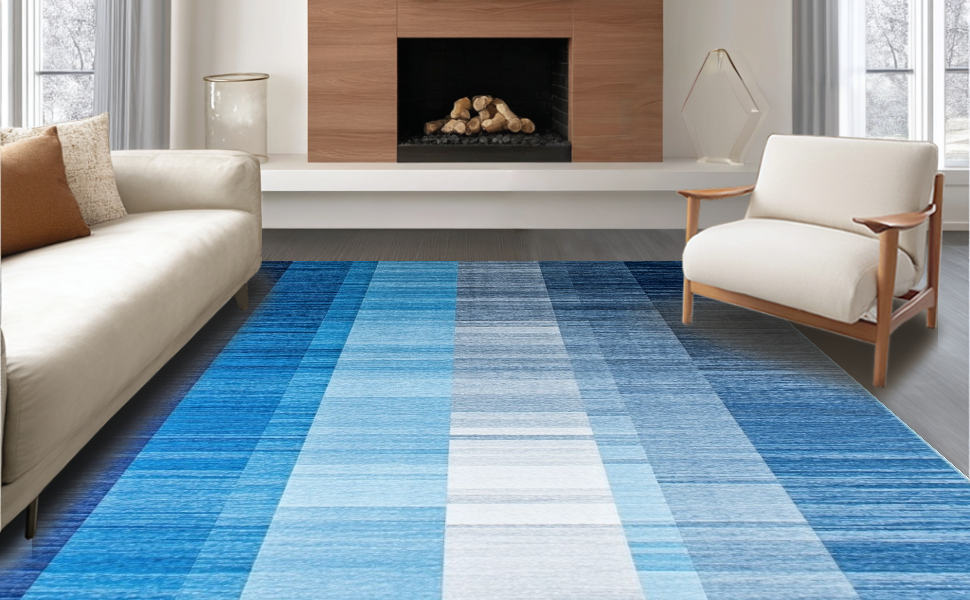 Ultra Soft Area Rug, Non Slip, Stain Resistant, Washable Area Rugs for Living Room, Bedroom, Stylish Dual-Tone Fluid Design(Blue) Overview:
