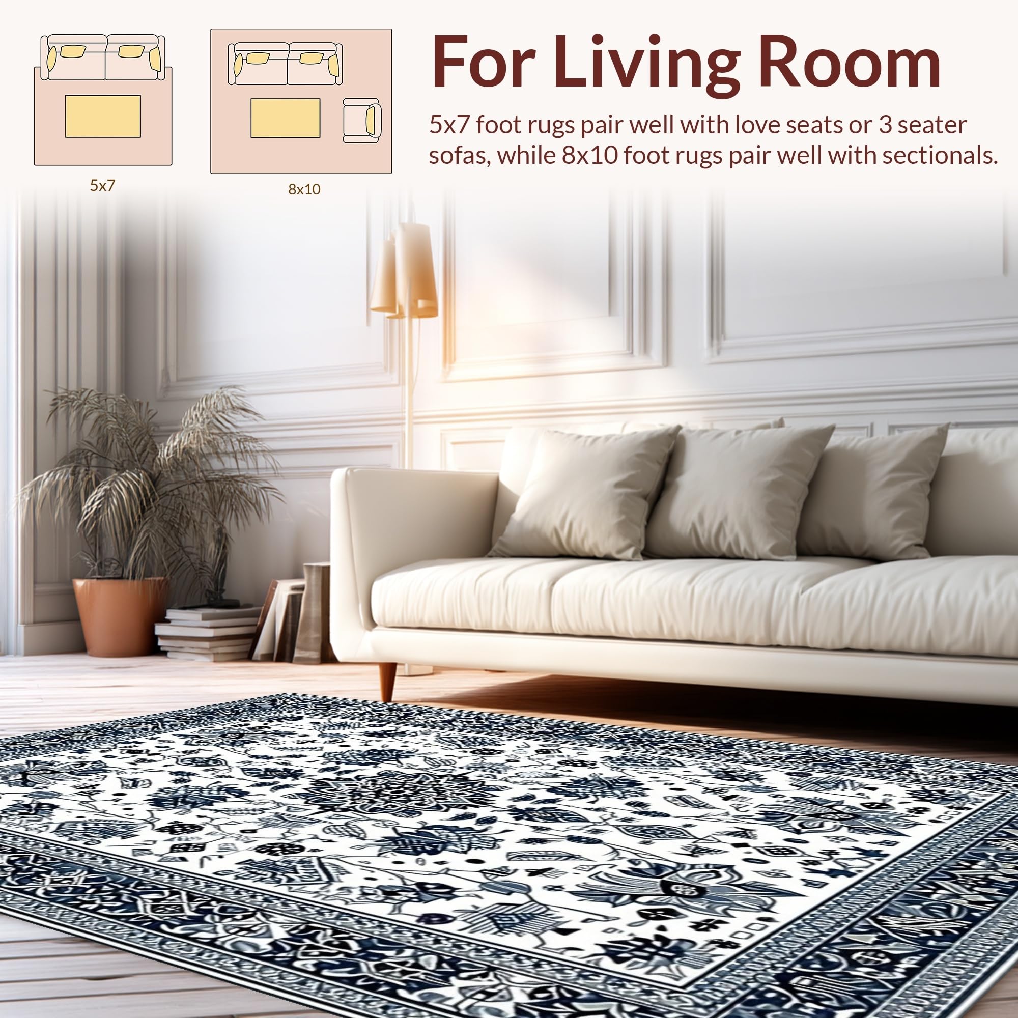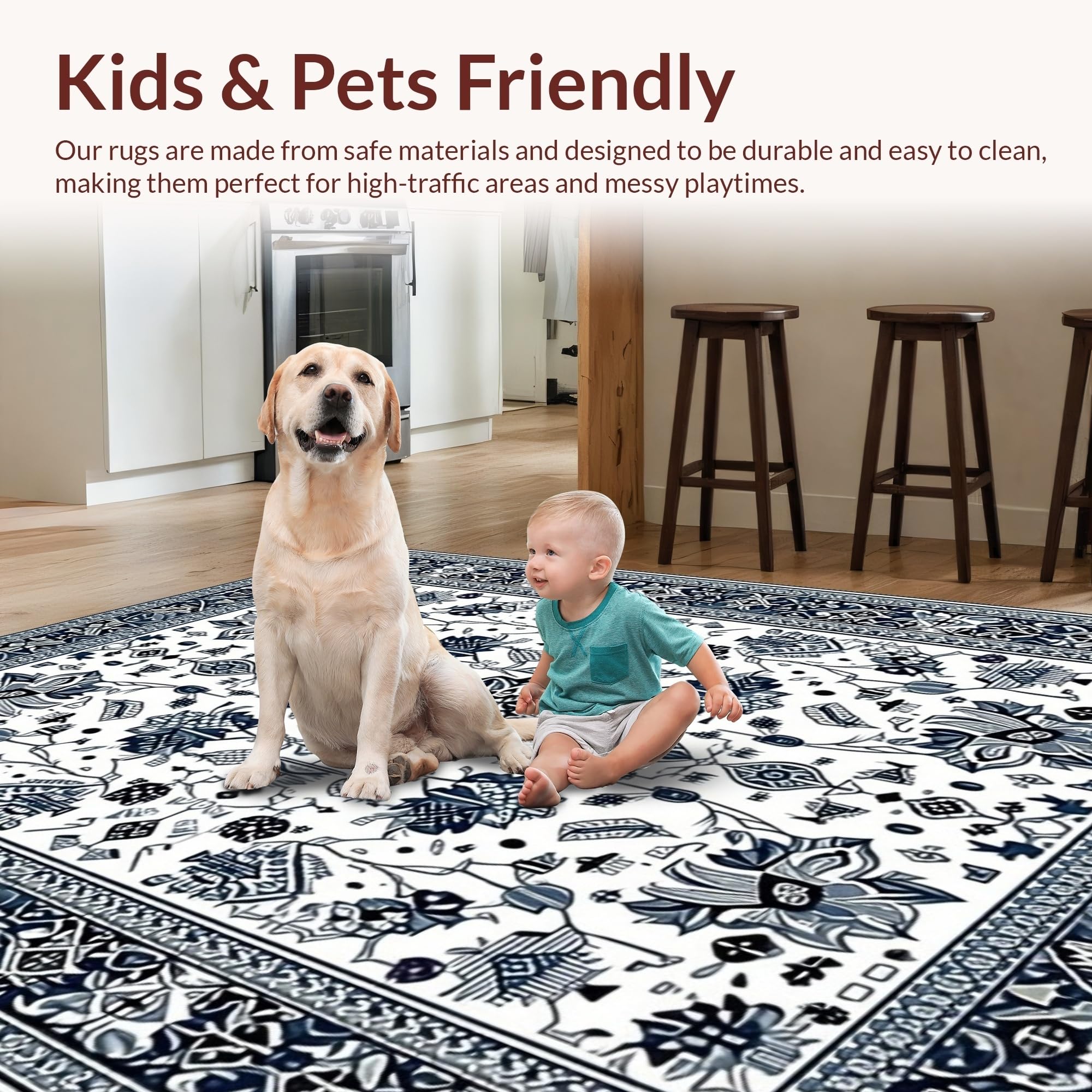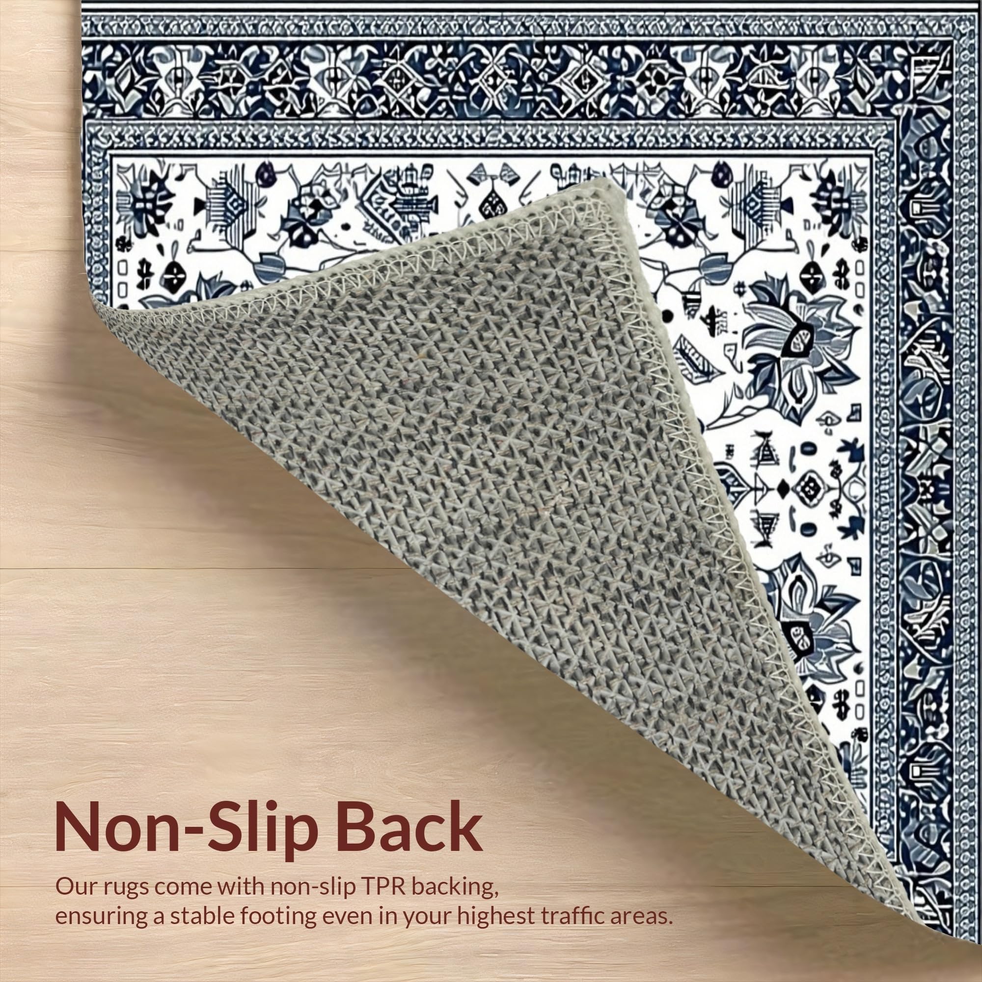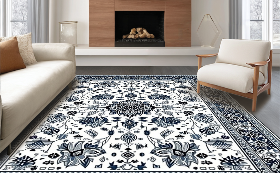Ultra Soft Area Rug, Non Slip, Stain Resistant, Washable Area Rugs for Living Room, Bedroom, Stylish Earth Tone Medallion(White) Overview: