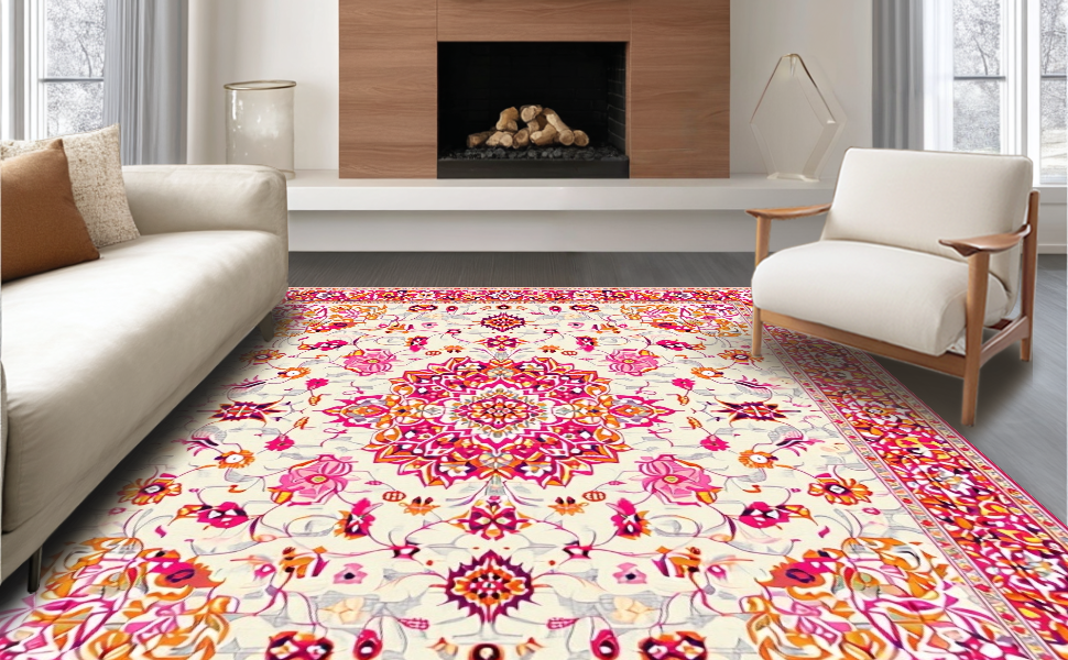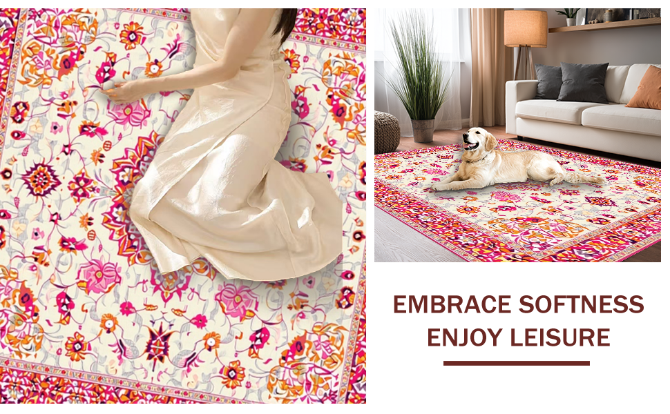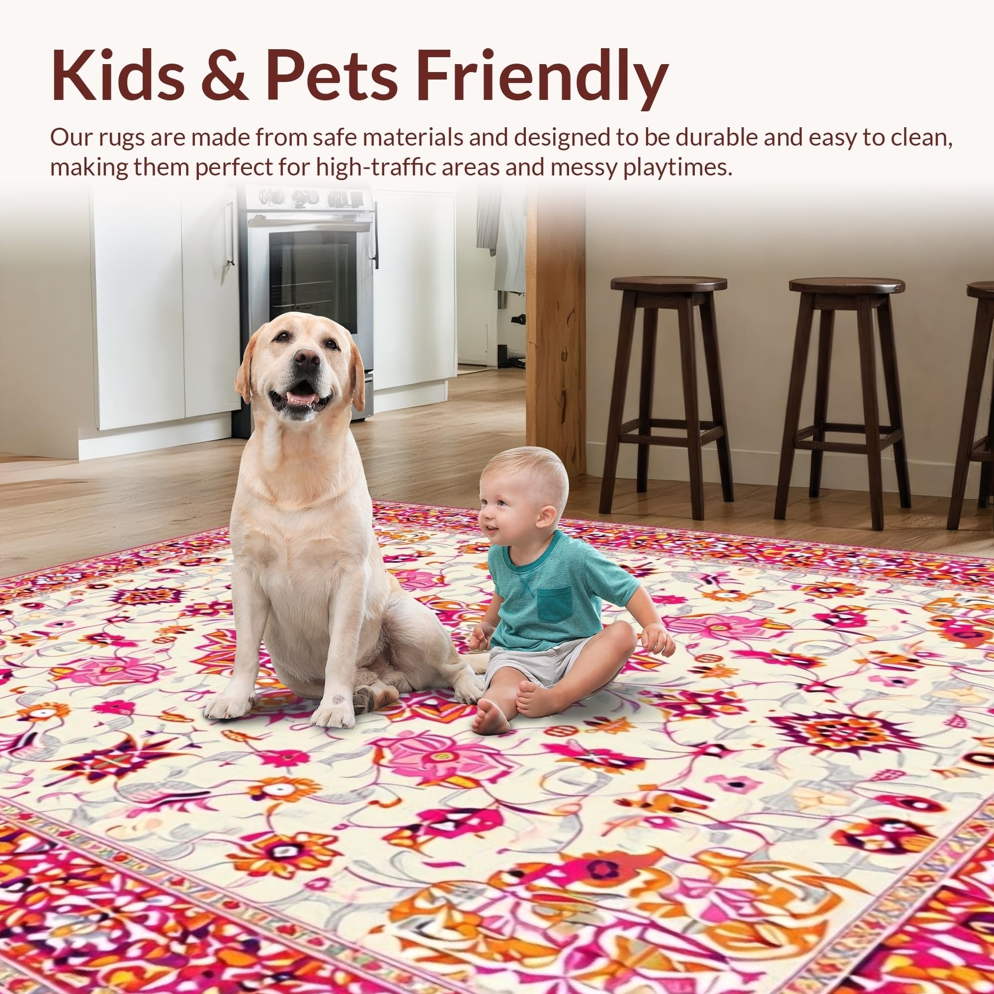 Ultra Soft Area Rug, Non Slip, Stain Resistant, Washable Area Rugs for Living Room, Bedroom, Stylish Earthy Floral Composition(Ivory) Overview:
