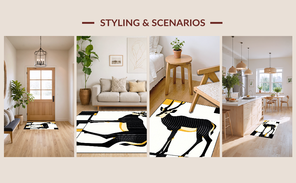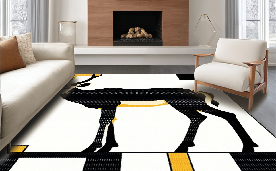 Ultra Soft Area Rug, Non Slip, Stain Resistant, Washable Area Rugs for Living Room, Bedroom, Stylish Earthy Tones with Animal Themes(Black) Overview: