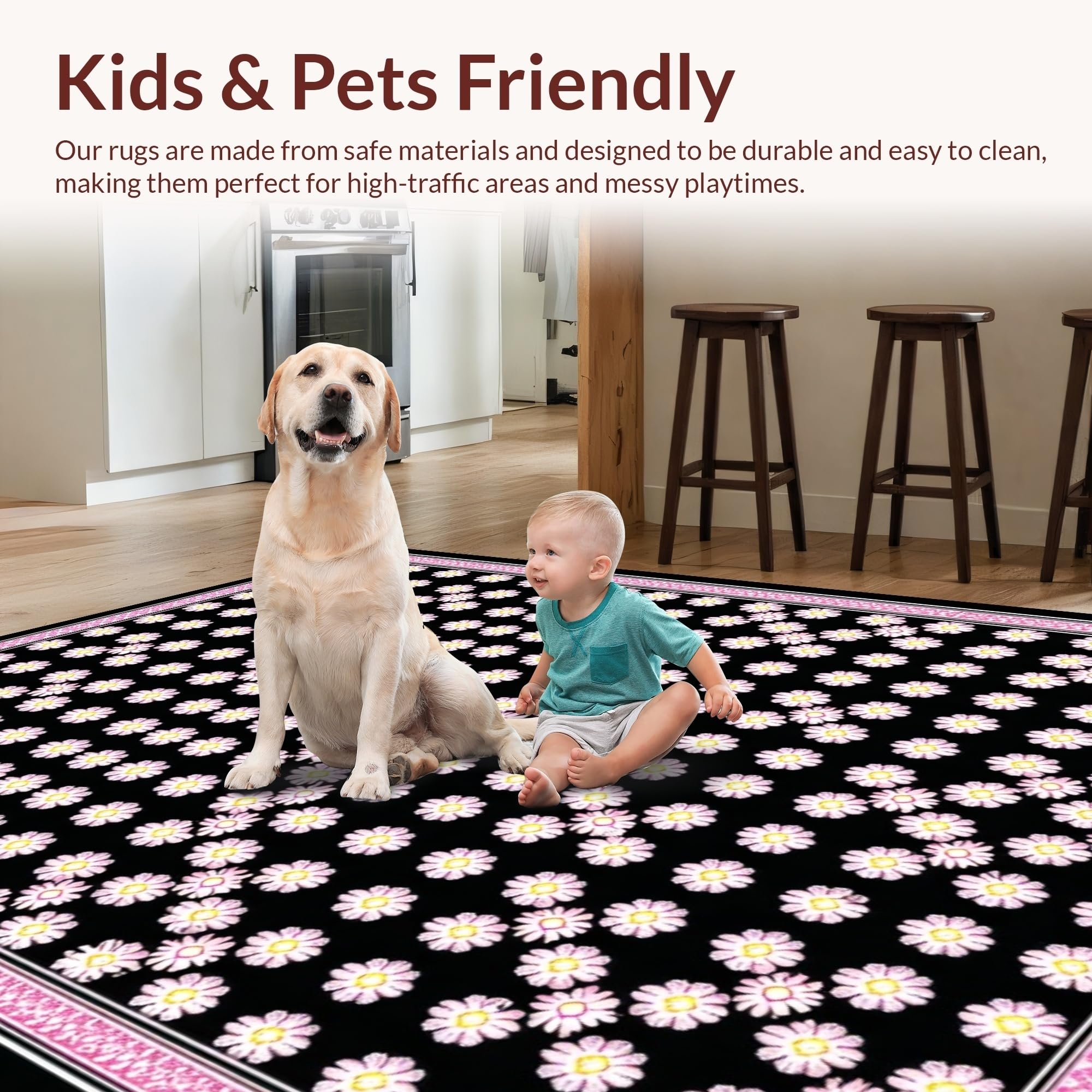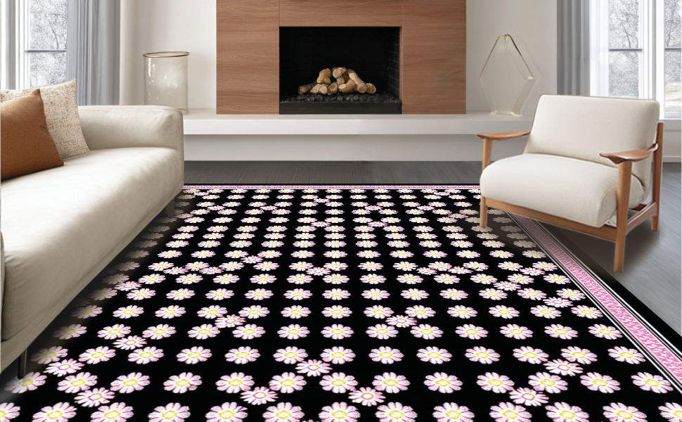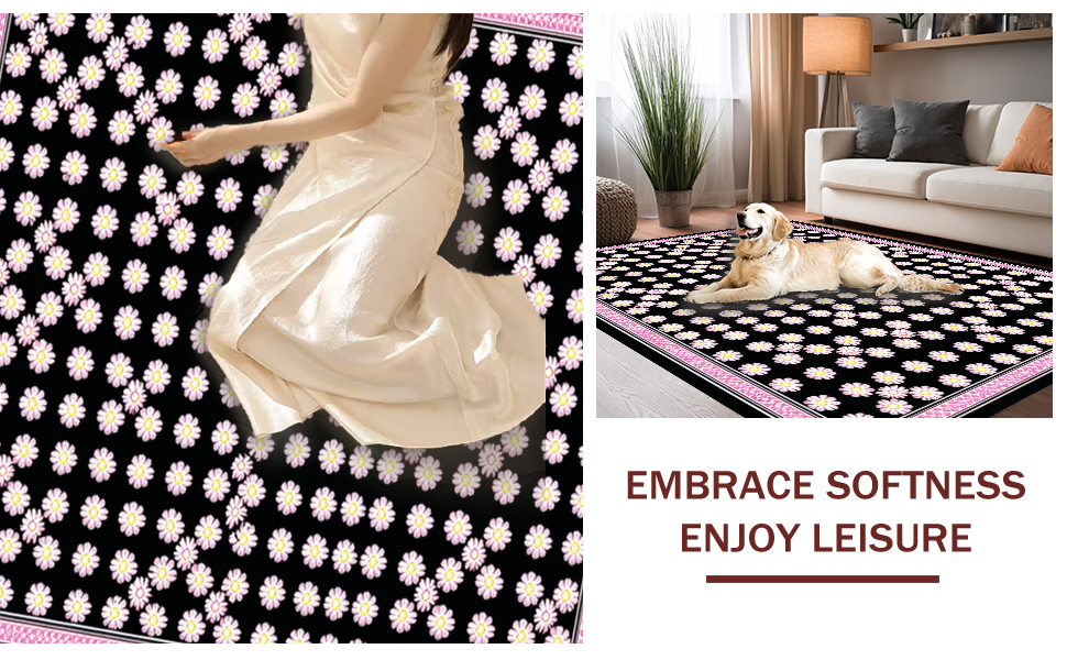 Ultra Soft Area Rug, Non Slip, Stain Resistant, Washable Area Rugs for Living Room, Bedroom, Stylish Educational Petal Theme(White) Overview: