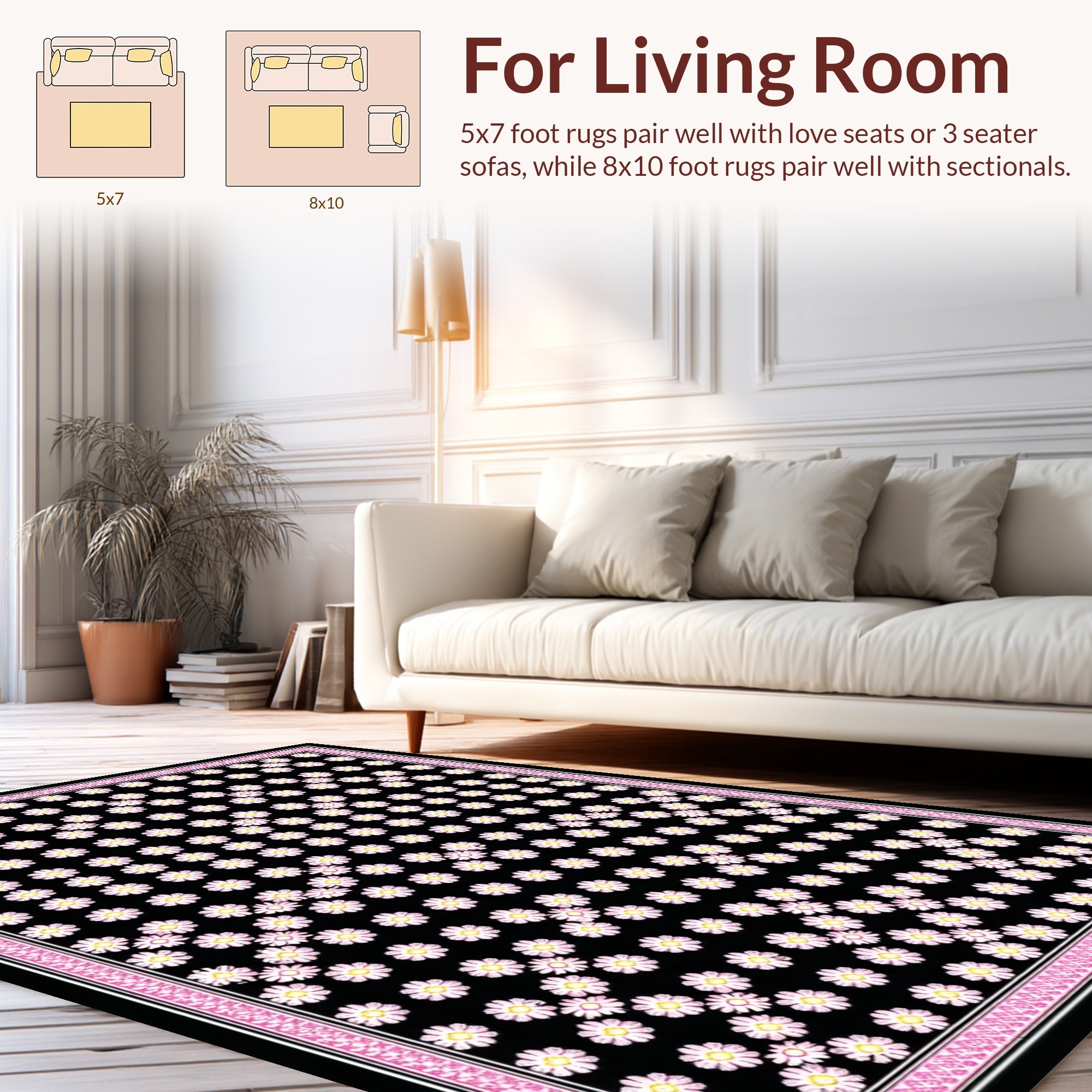 Flatwoven High Traffic Area Rug, Stylish Educational Petal Theme, Non Slip, Stain Resistant, Washable Area Rugs for Living Room, Bedroom (White) Overview: