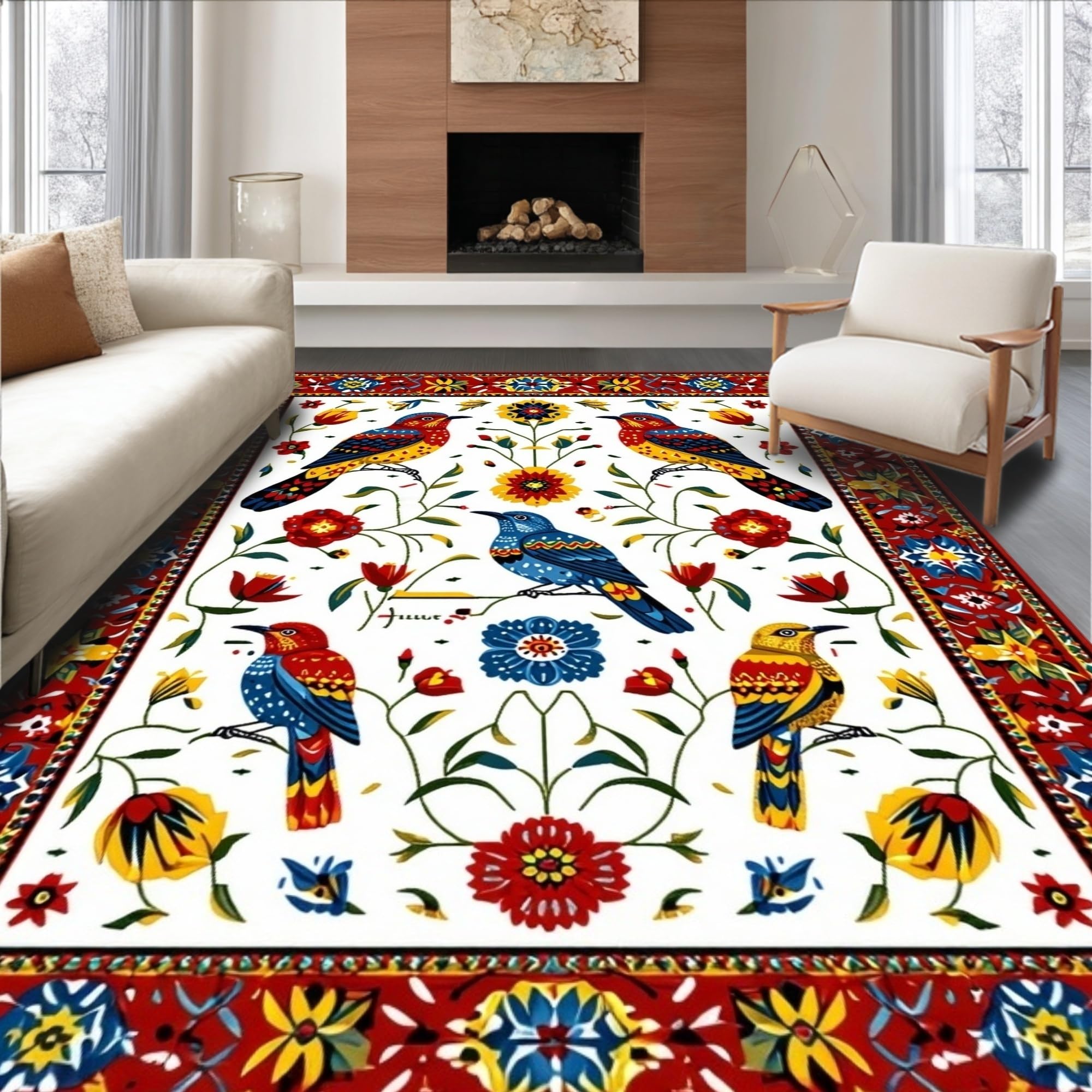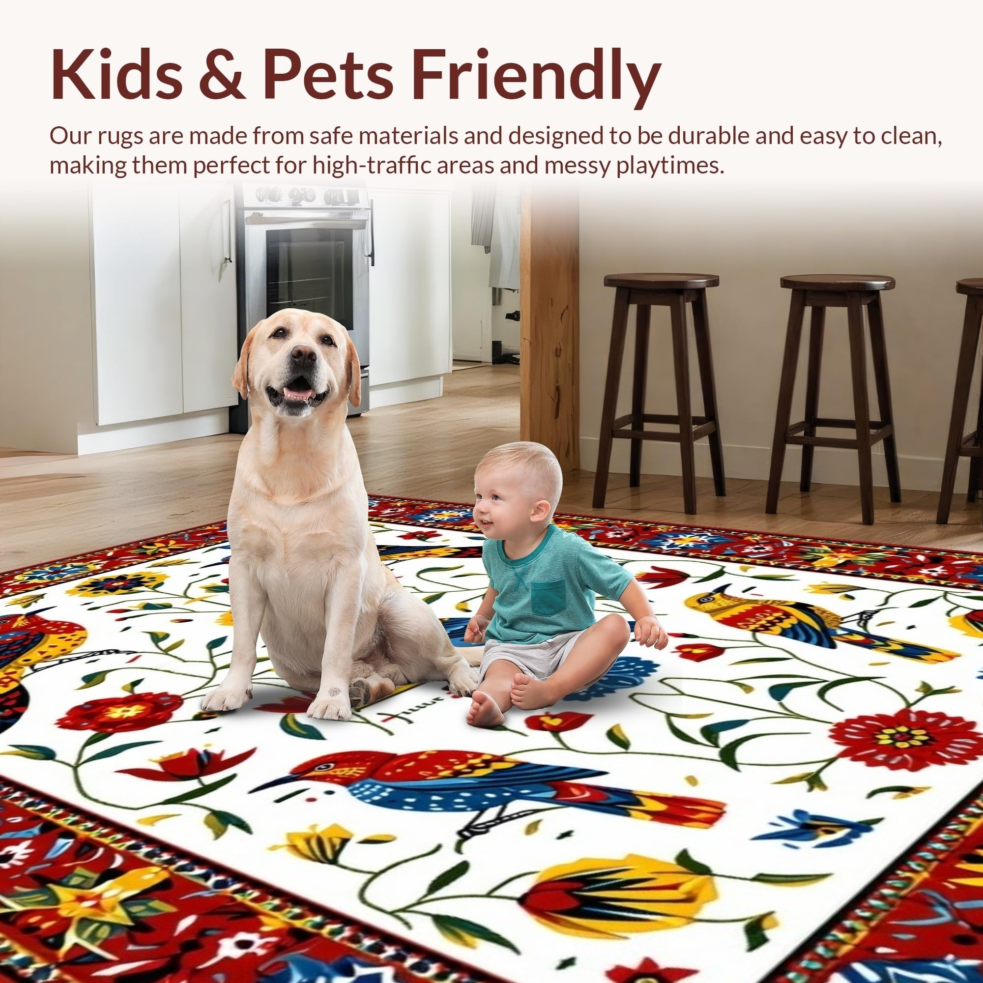 Ultra Soft Area Rug, Non Slip, Stain Resistant, Washable Area Rugs for Living Room, Bedroom, Stylish Ethnic Botanical Artwork(White) Overview: