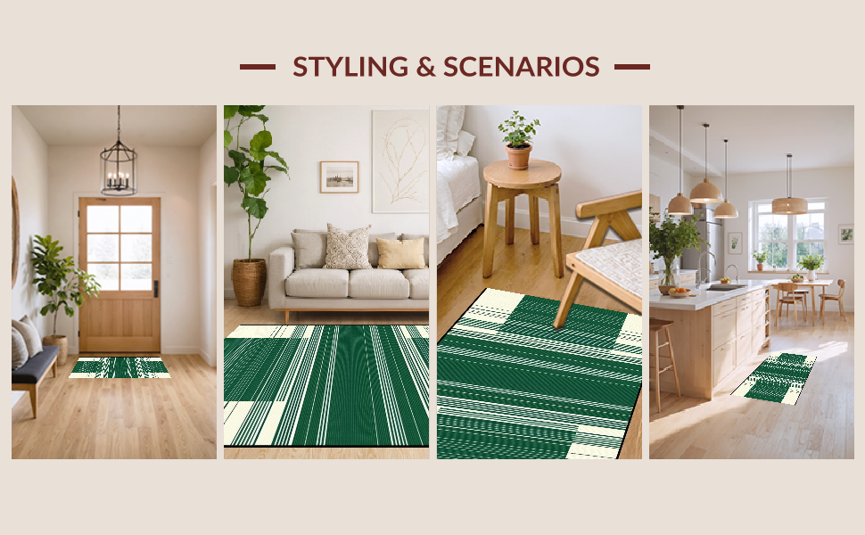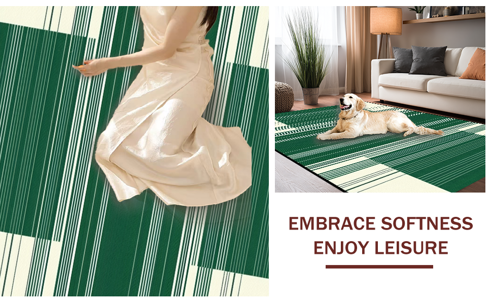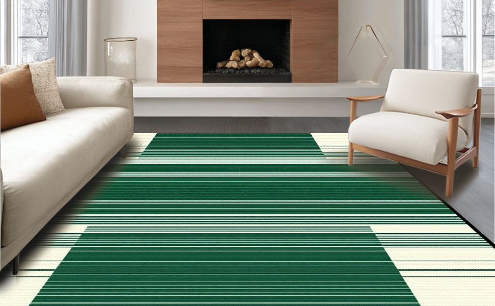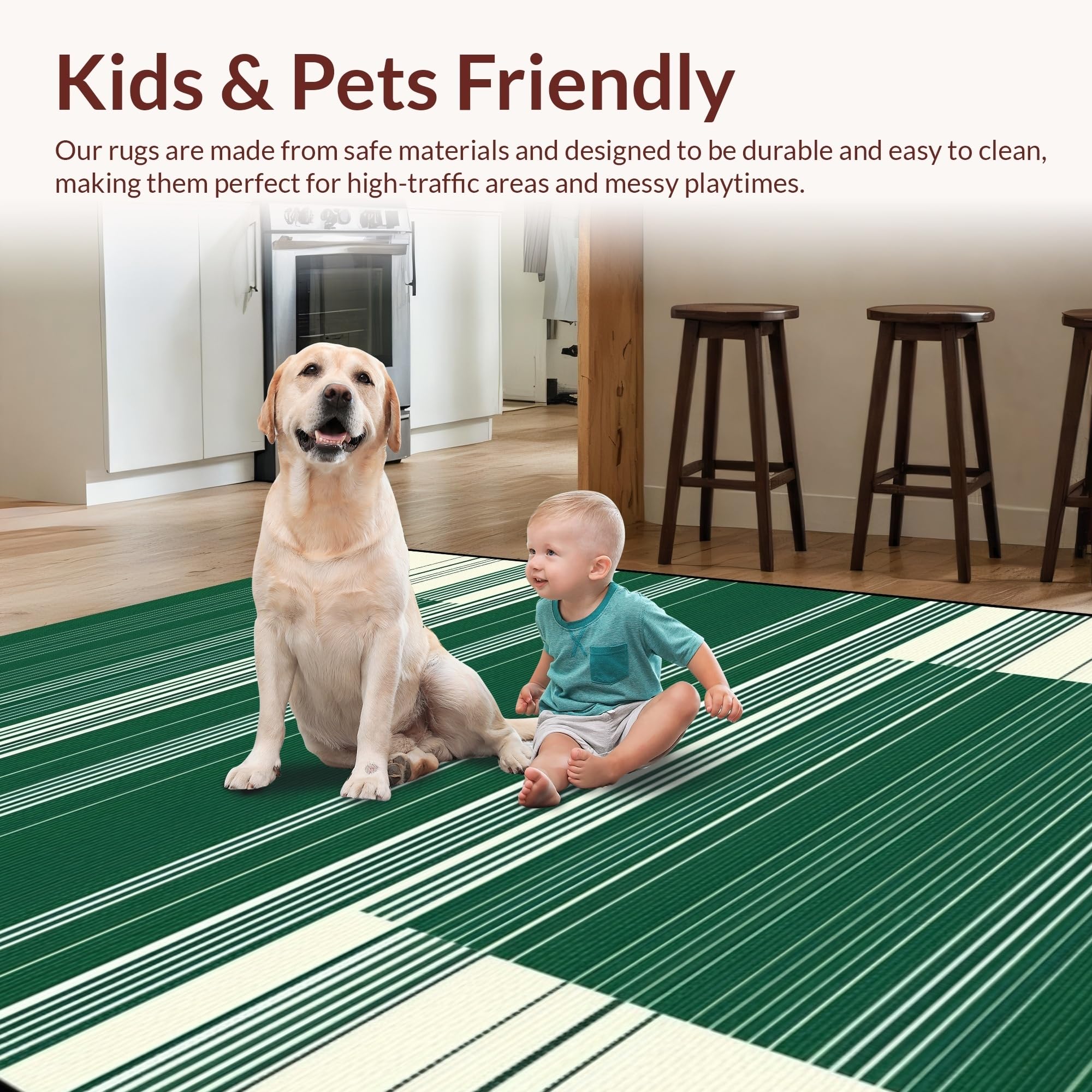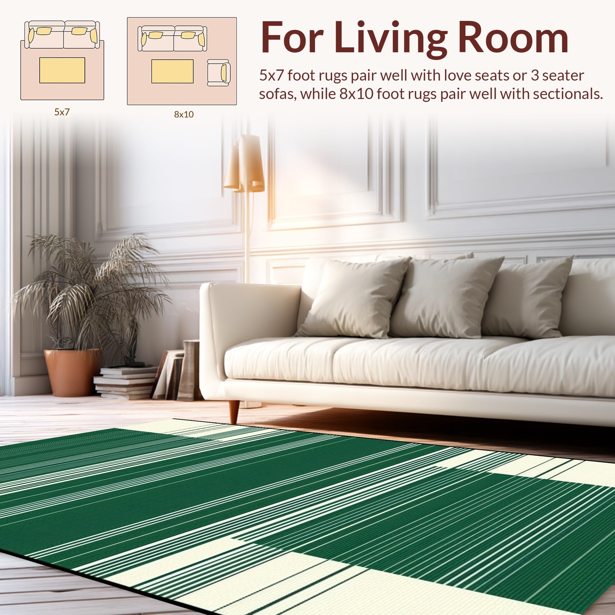 Ultra Soft Area Rug, Non Slip, Stain Resistant, Washable Area Rugs for Living Room, Bedroom, Stylish Geometric White and Green(Green) Overview: