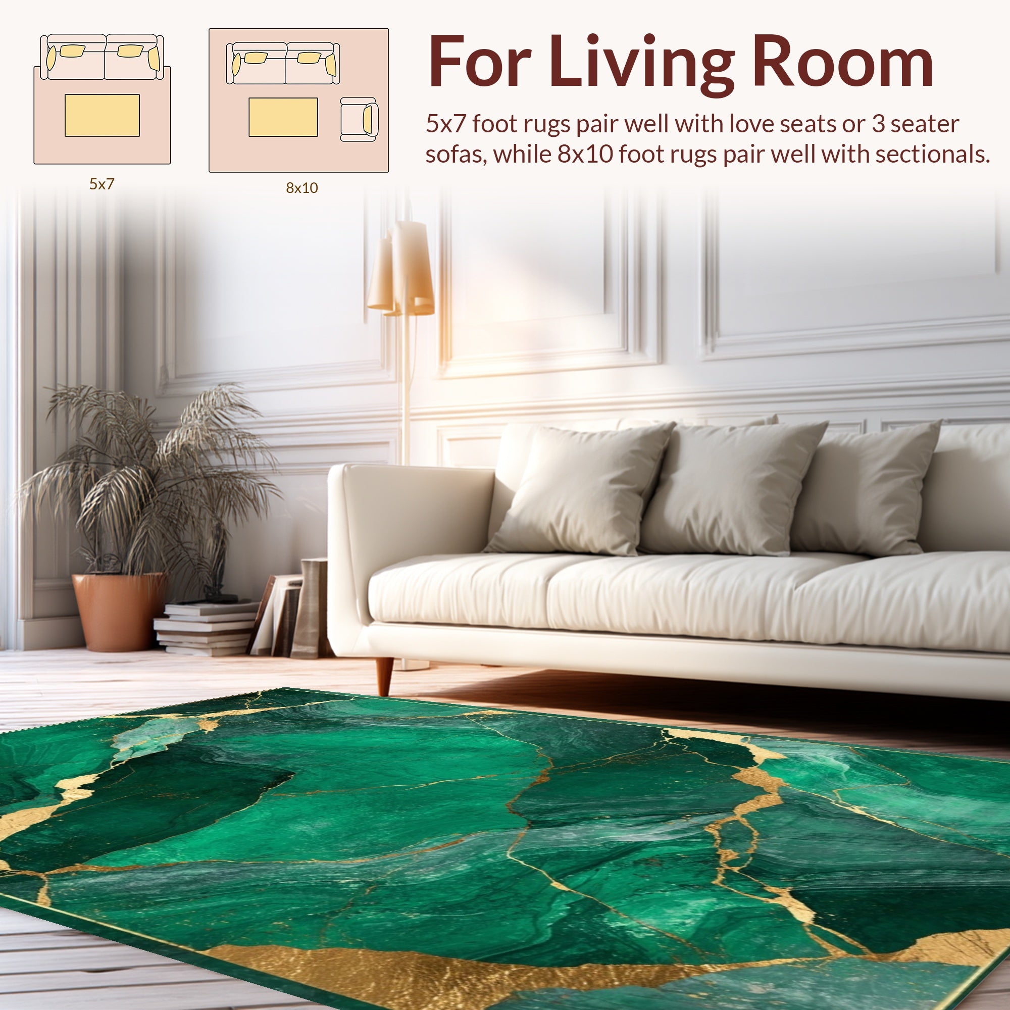 Flatwoven High Traffic Area Rug, Stylish Gold Accents on Dark Tones, Non Slip, Stain Resistant, Washable Area Rugs for Living Room, Bedroom (Green) Overview: