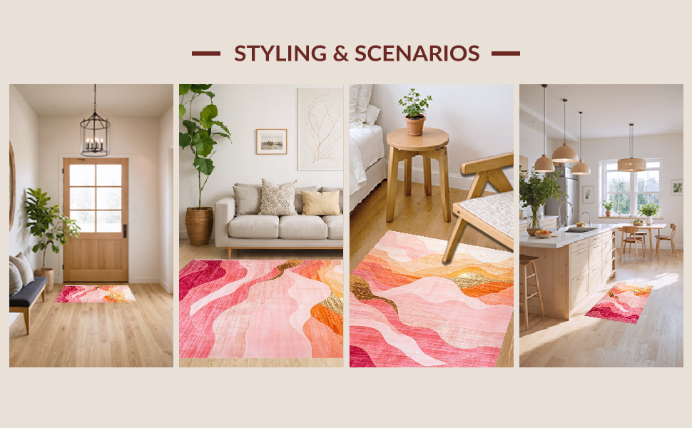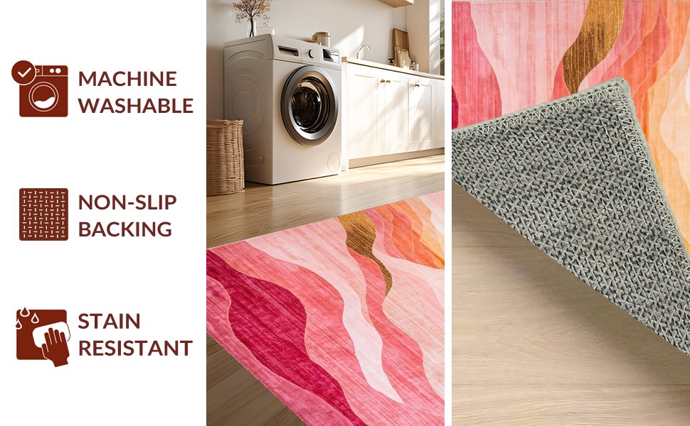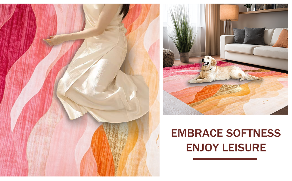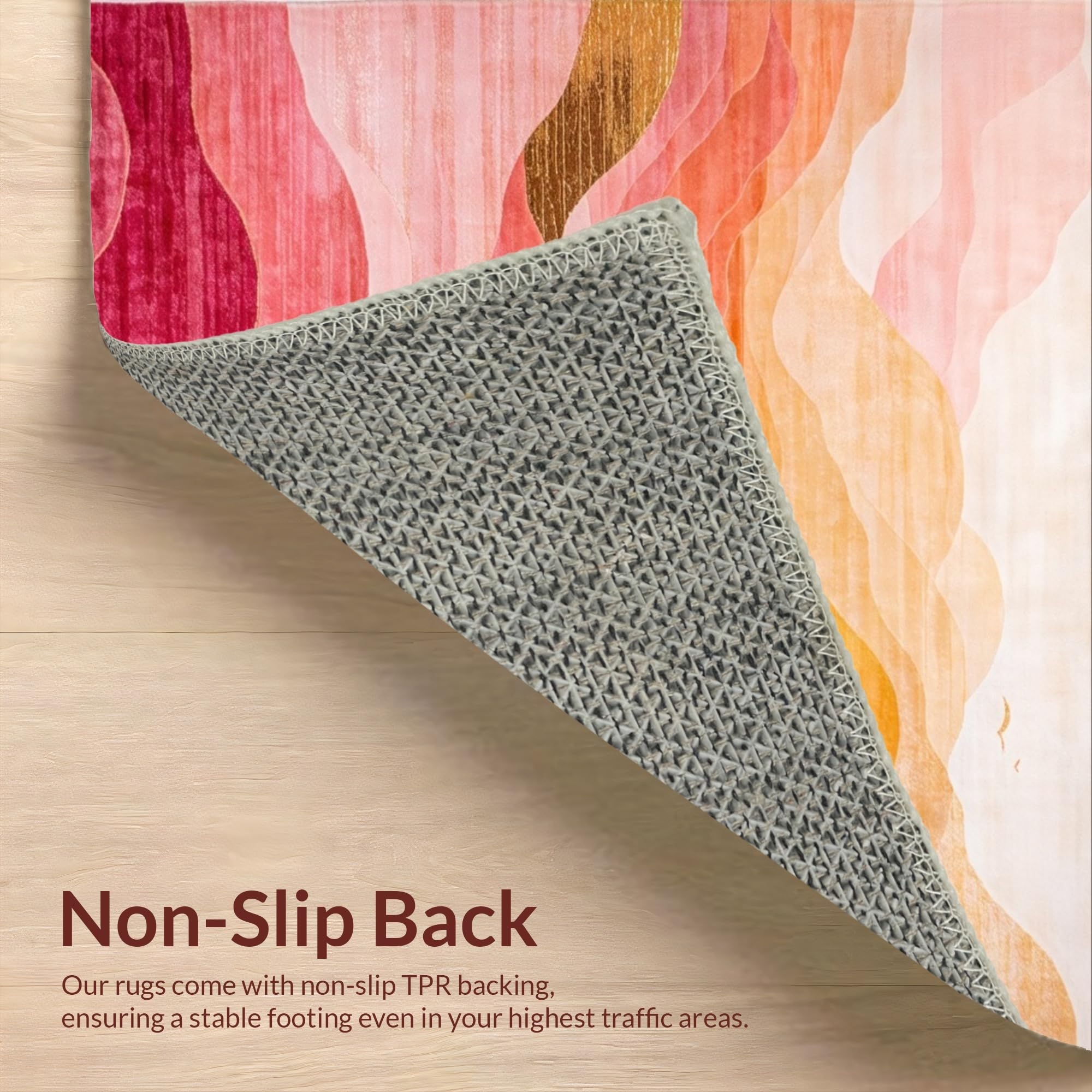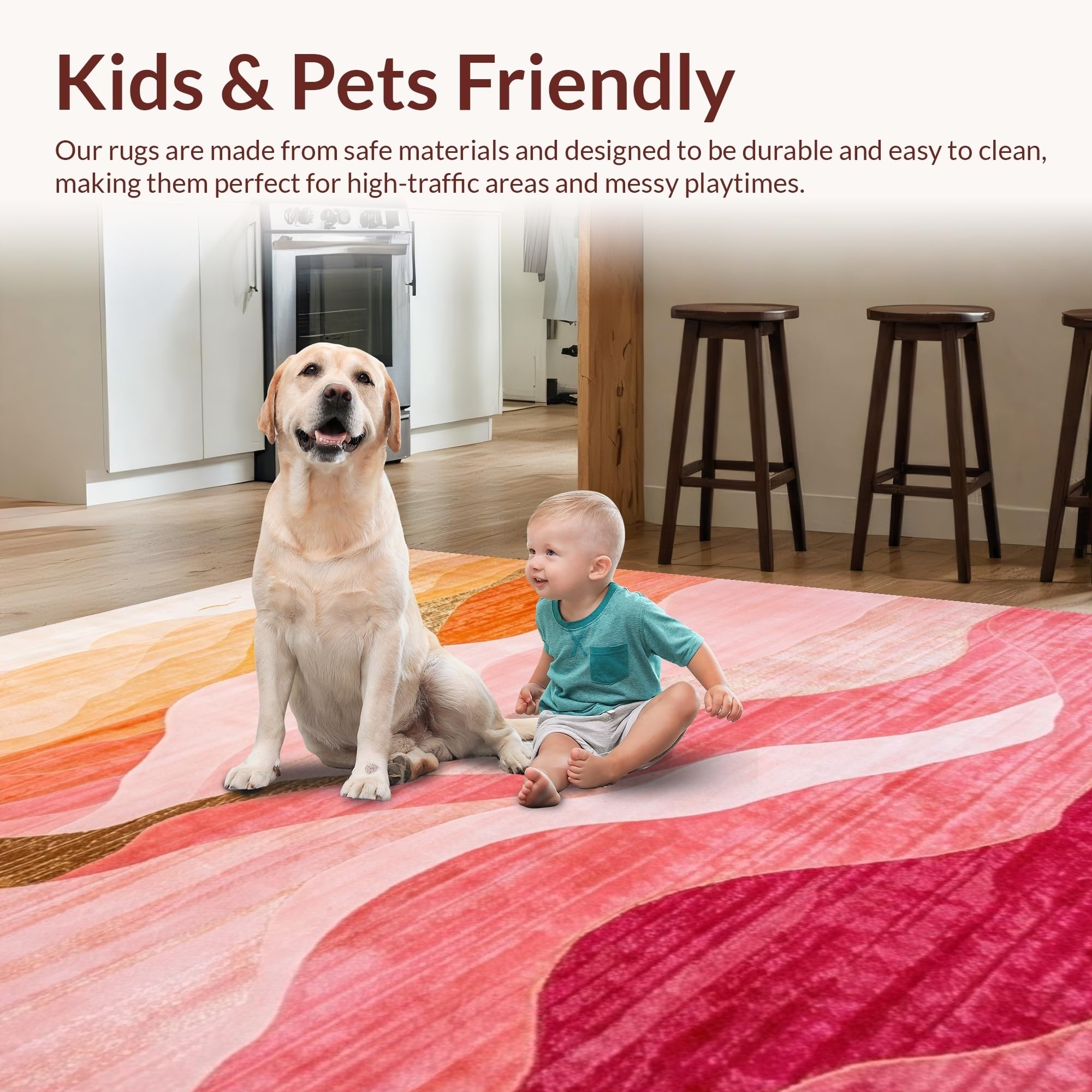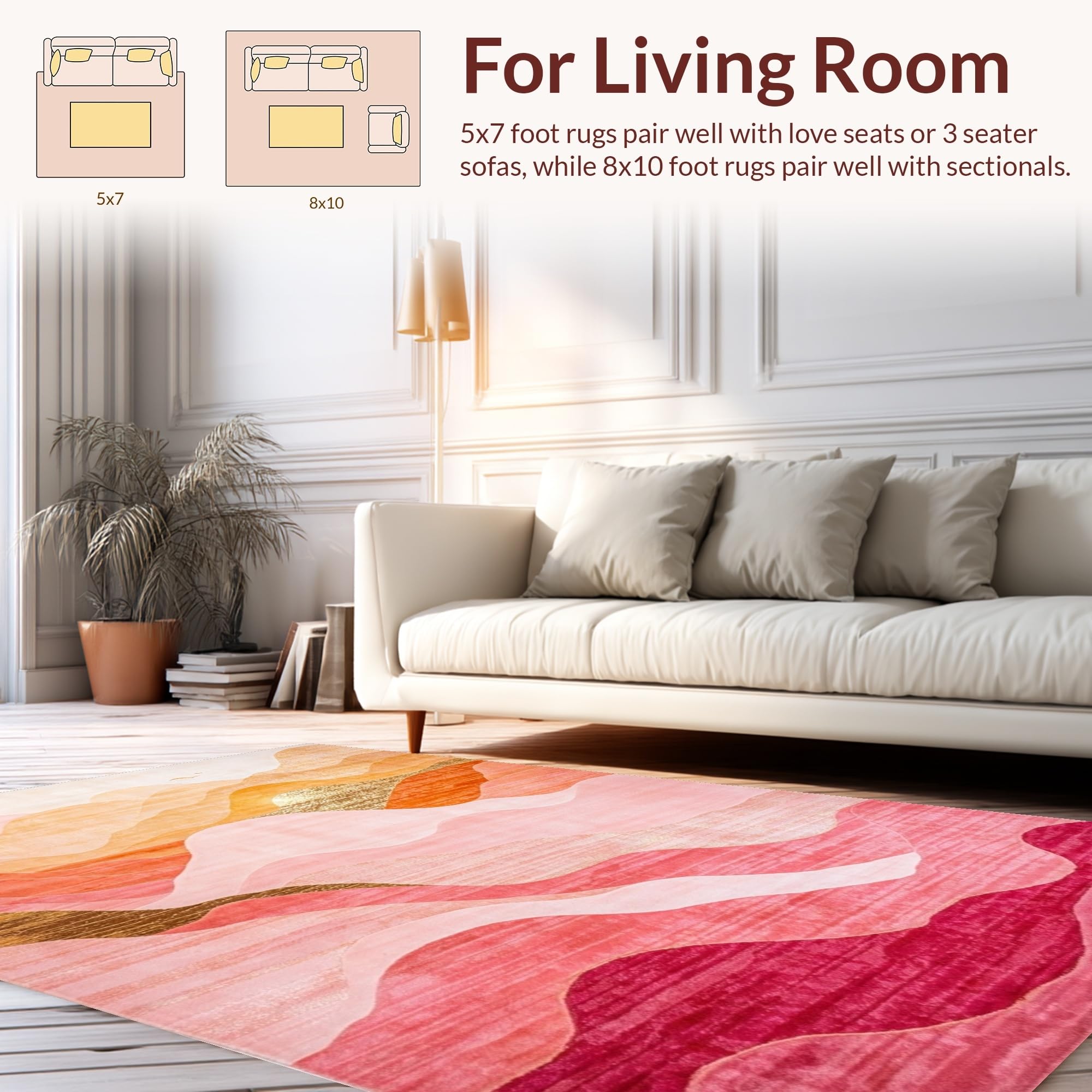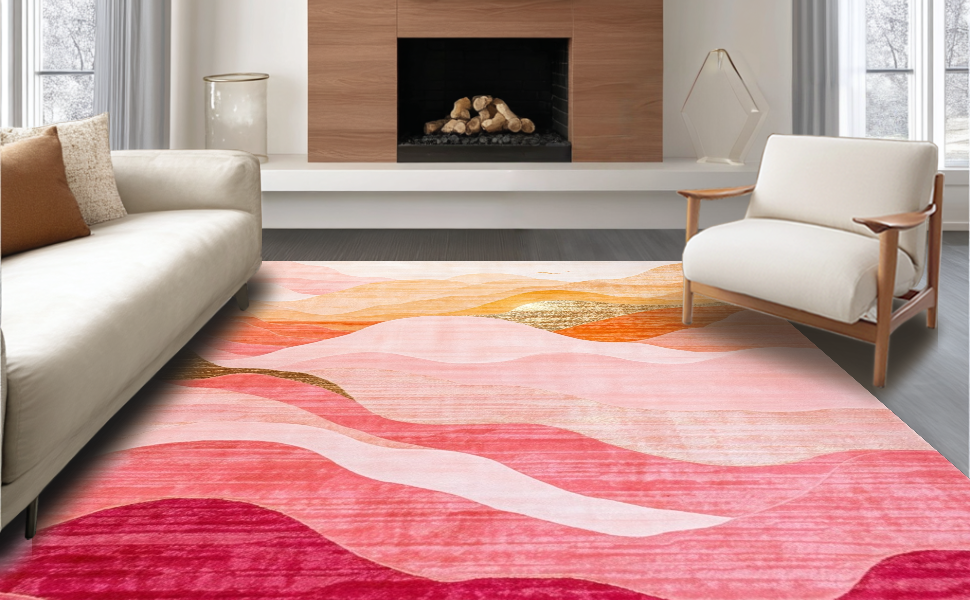 Ultra Soft Area Rug, Non Slip, Stain Resistant, Washable Area Rugs for Living Room, Bedroom, Stylish Gradient Color Burst(Pink) Overview: