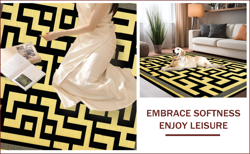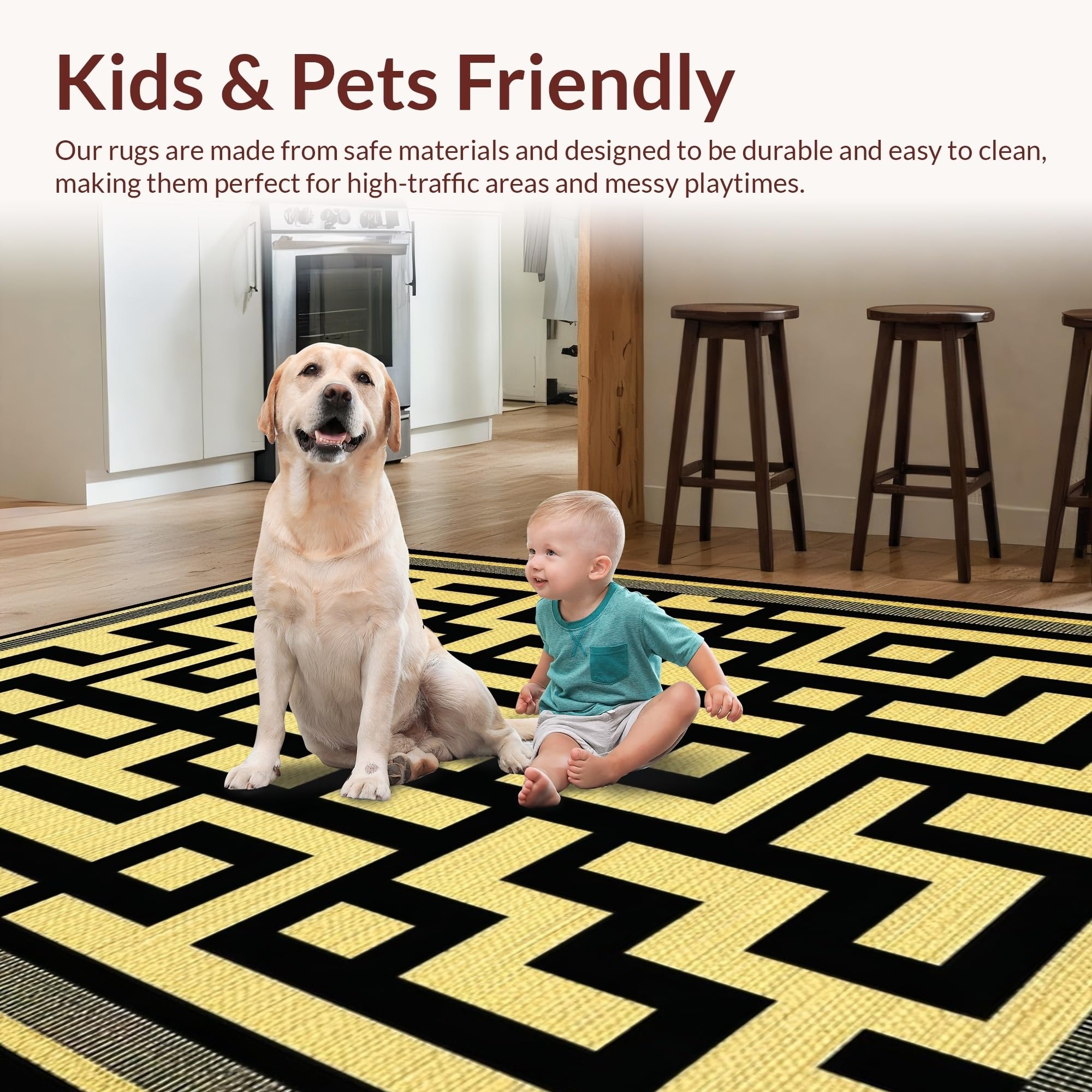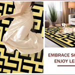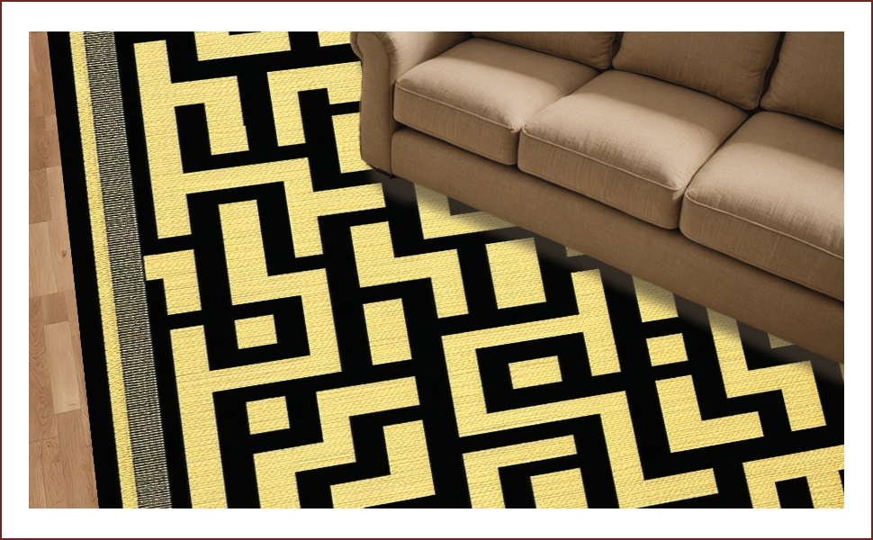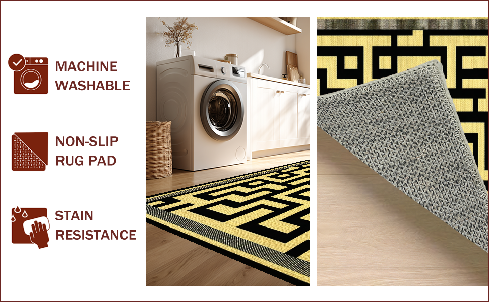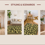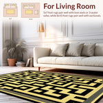 Ultra Soft Area Rug, Non Slip, Stain Resistant, Washable Area Rugs for Living Room, Bedroom, Stylish Greek Key Patterned Aesthetic(Gold) Overview: