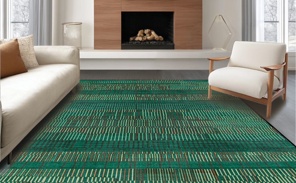 Ultra Soft Area Rug, Non Slip, Stain Resistant, Washable Area Rugs for Living Room, Bedroom, Stylish Green Brown Harmony(Green) Overview: