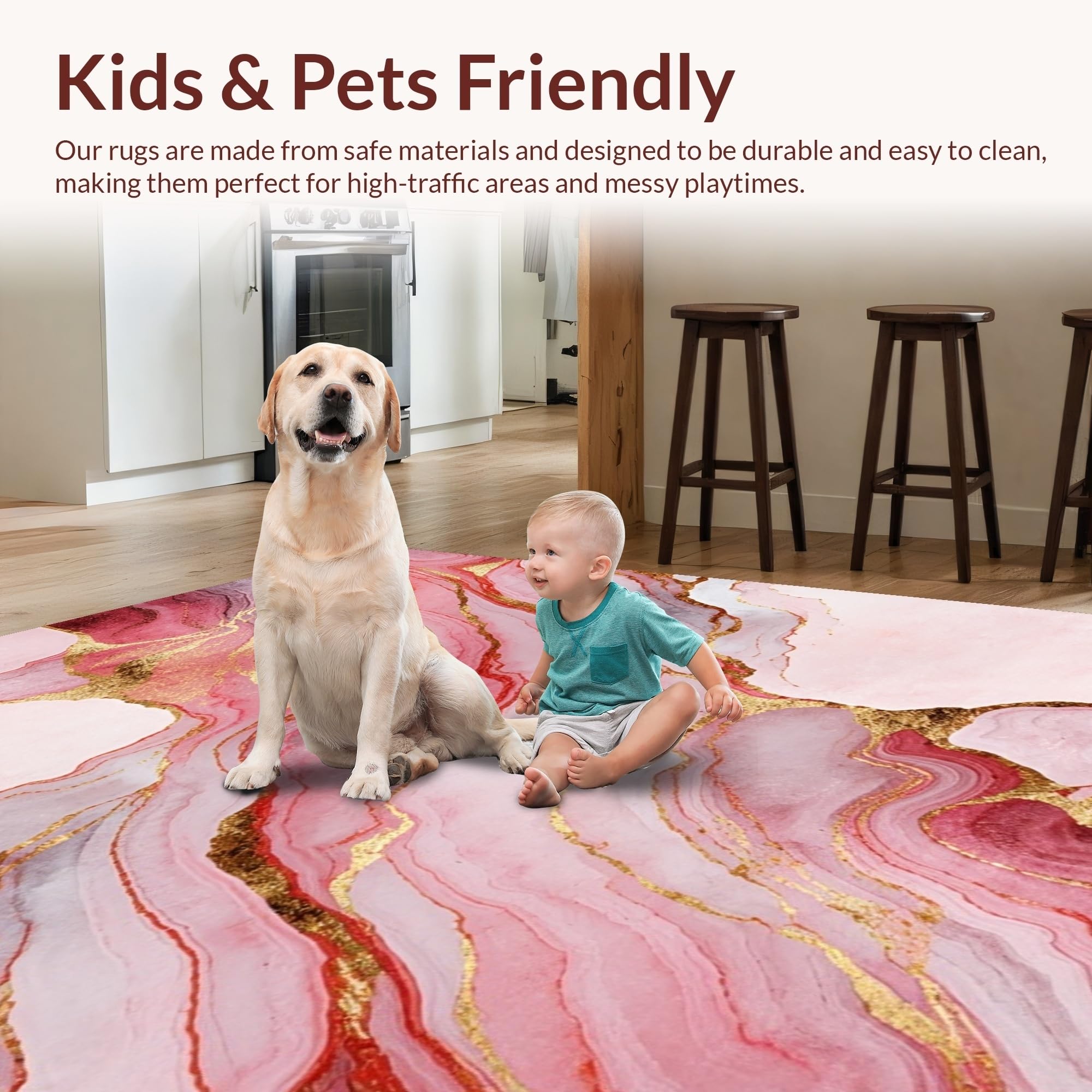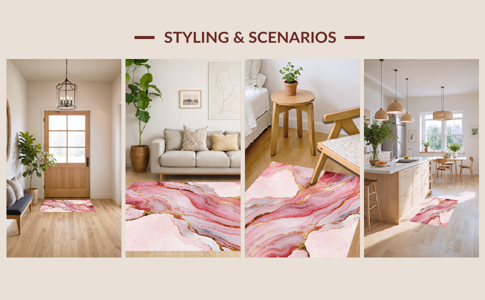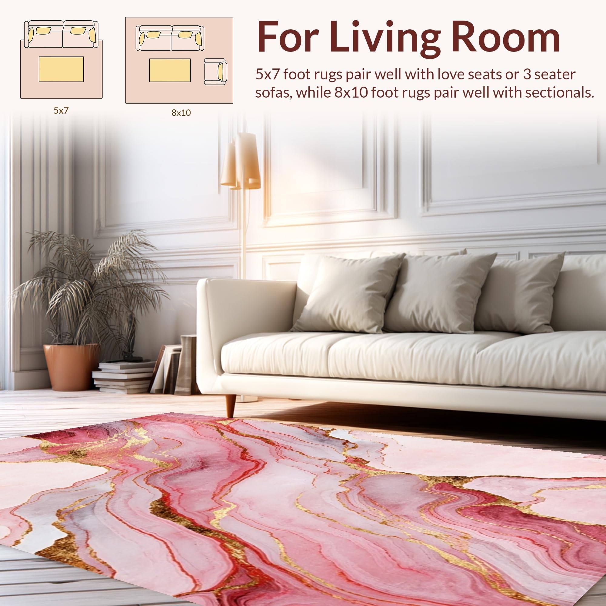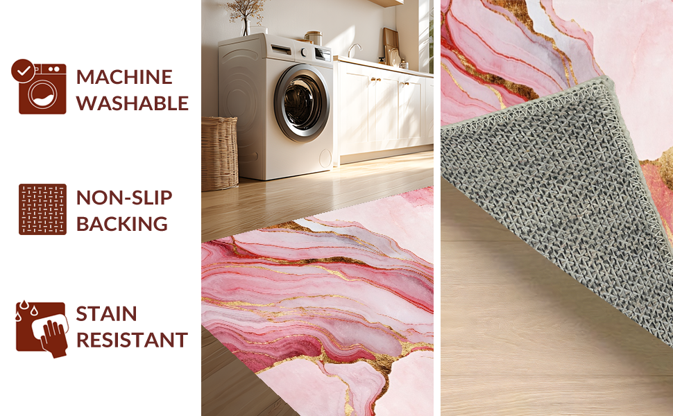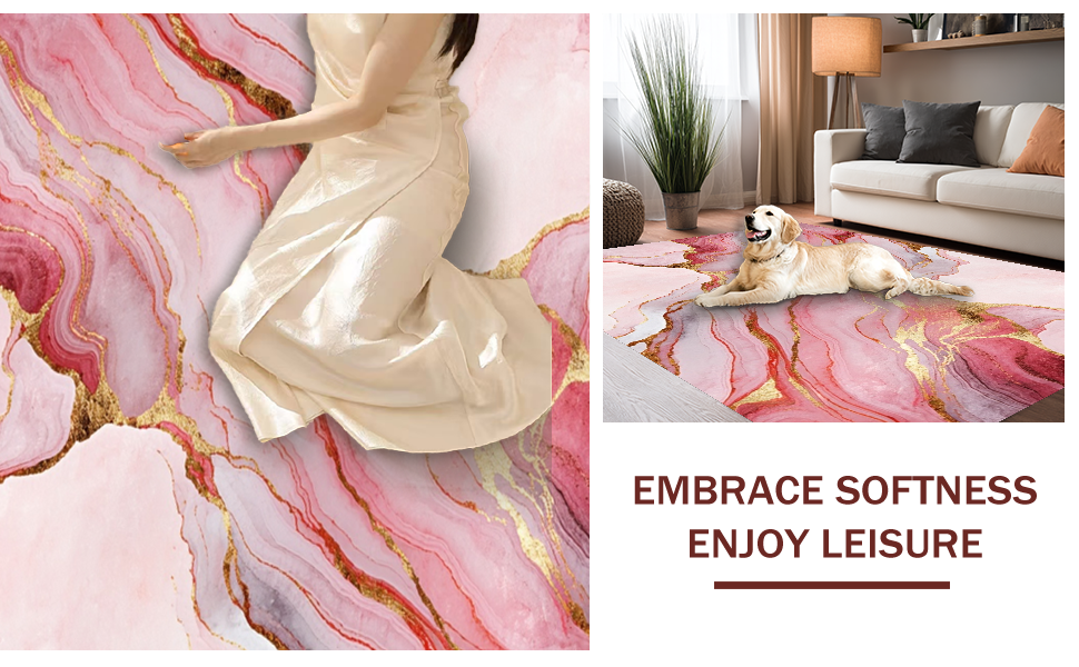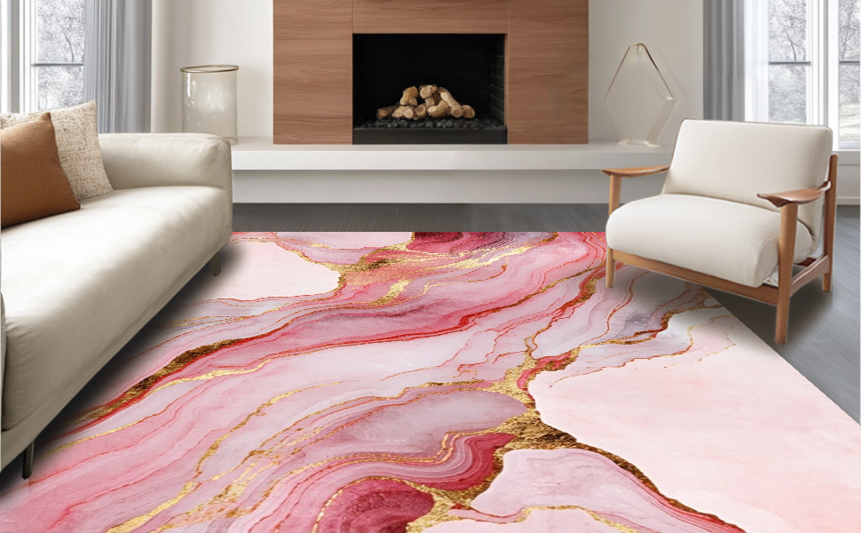 Ultra Soft Area Rug, Non Slip, Stain Resistant, Washable Area Rugs for Living Room, Bedroom, Stylish Liquid Marble Aesthetic(Pink) Overview: