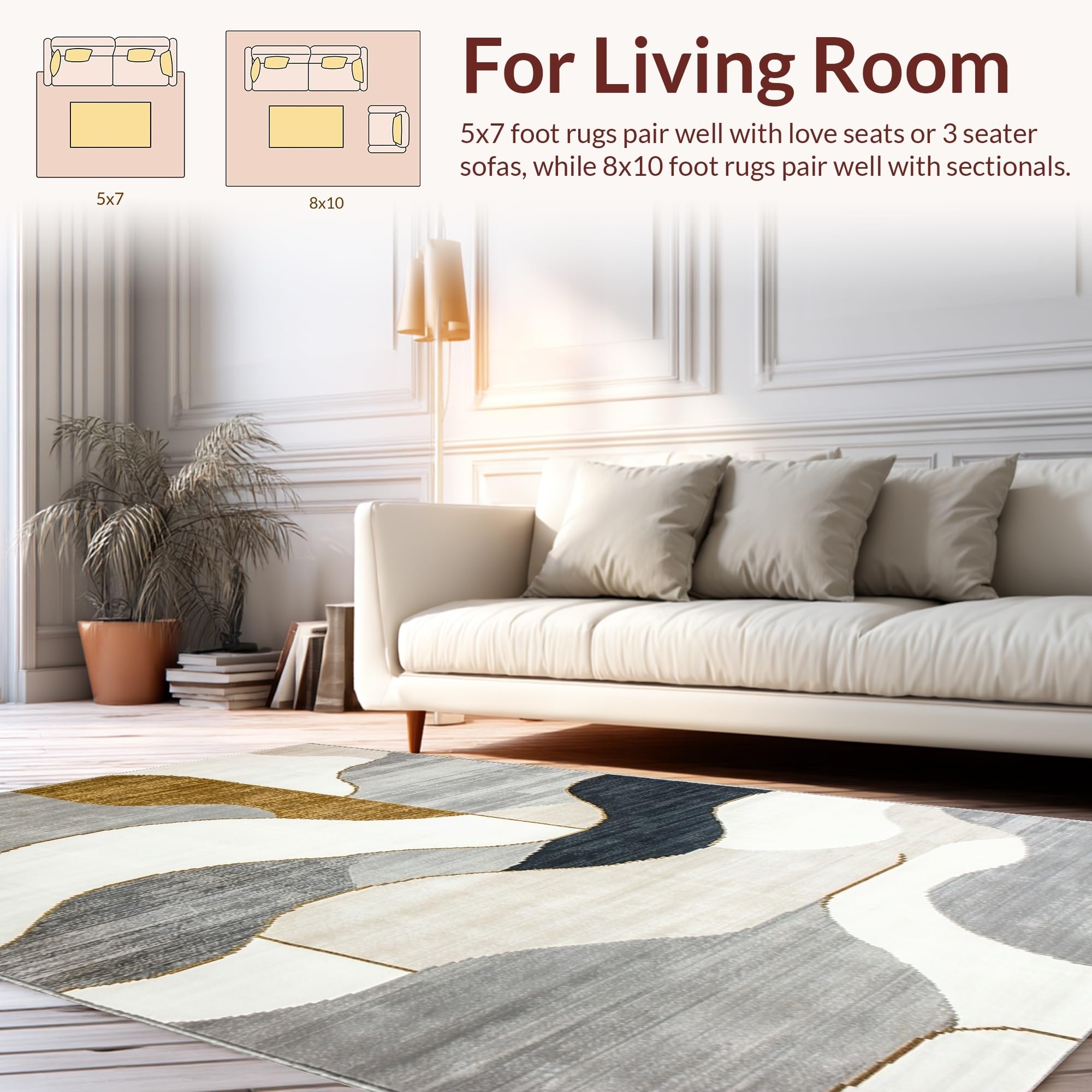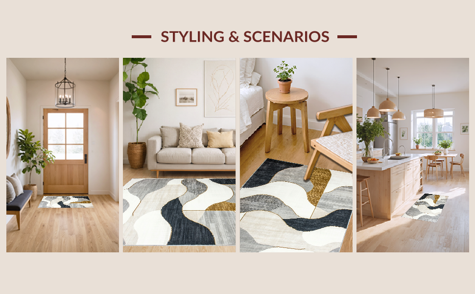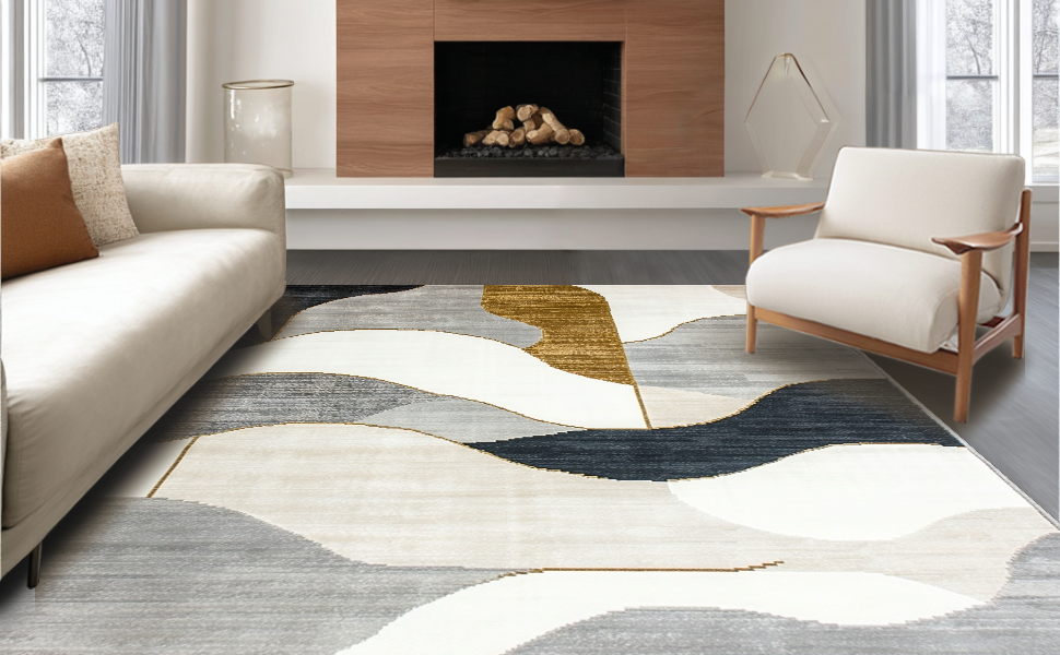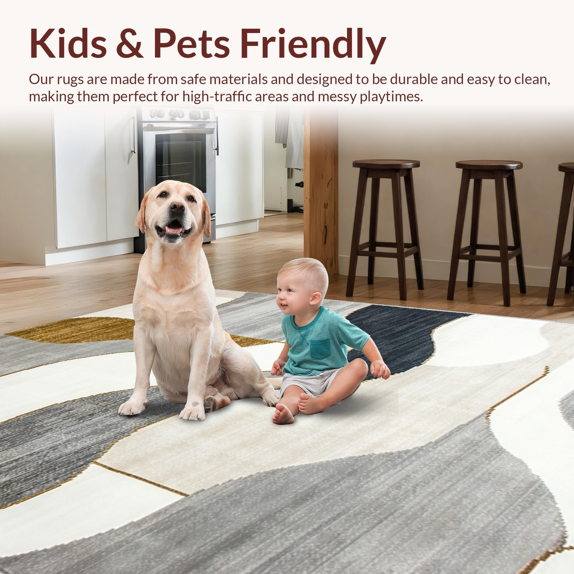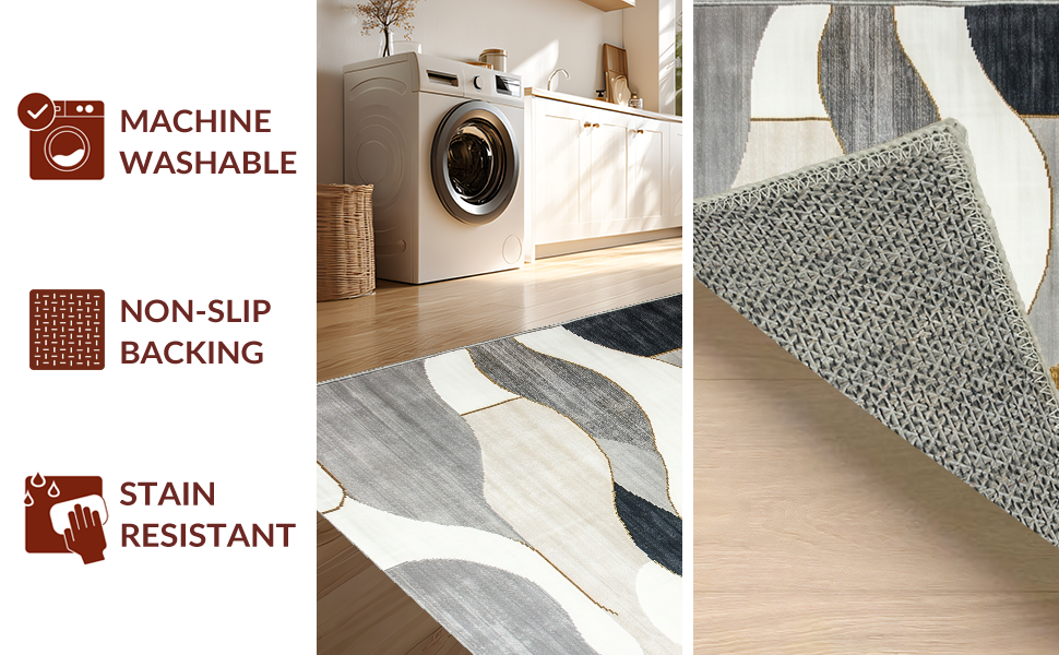 Ultra Soft Area Rug, Non Slip, Stain Resistant, Washable Area Rugs for Living Room, Bedroom, Stylish Low Pile Neutral Texture(Gray) Overview: