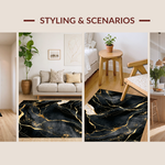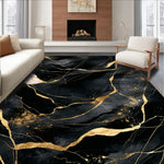 Ultra Soft Area Rug, Non Slip, Stain Resistant, Washable Area Rugs for Living Room, Bedroom, Stylish Marble Gold Composition(Black) Overview: