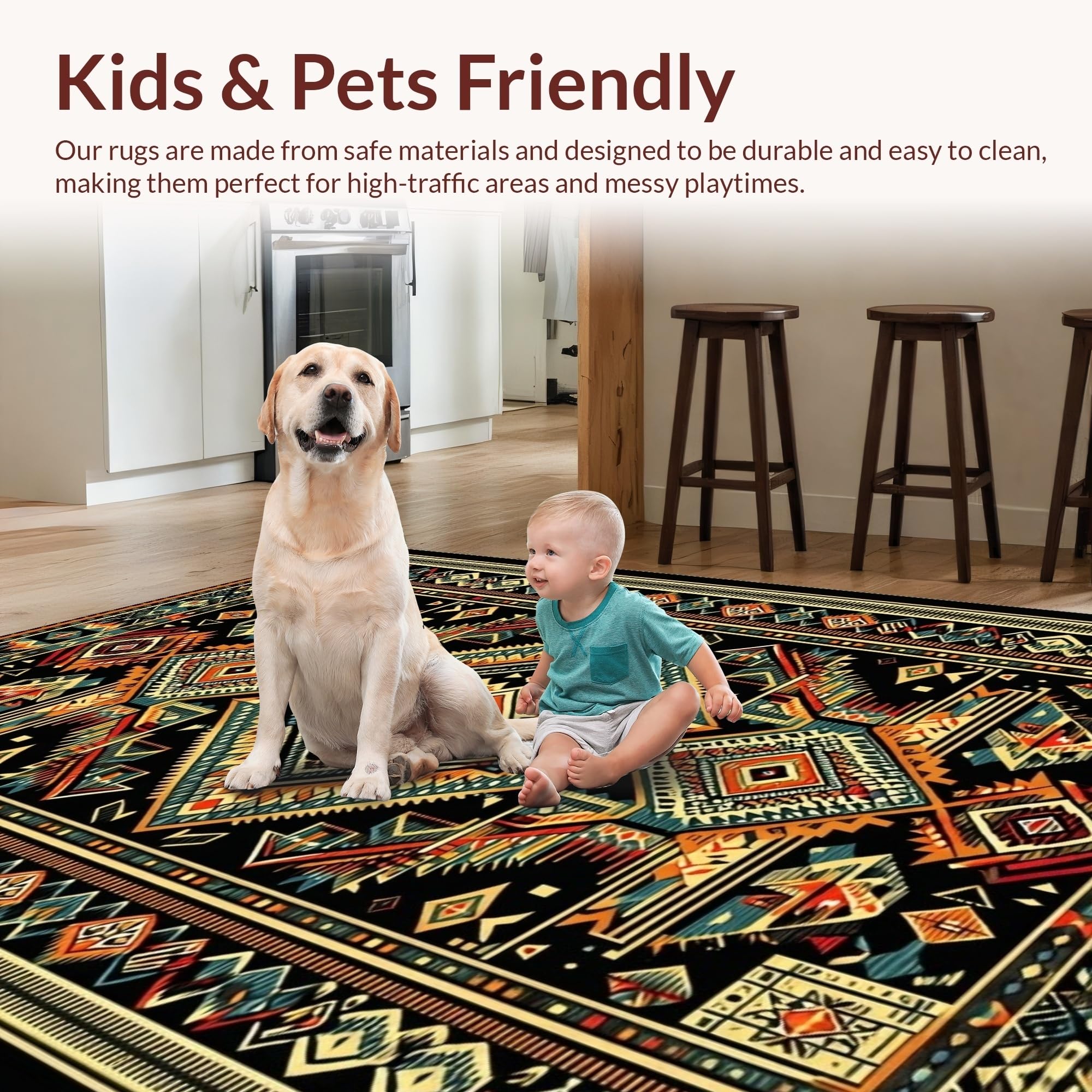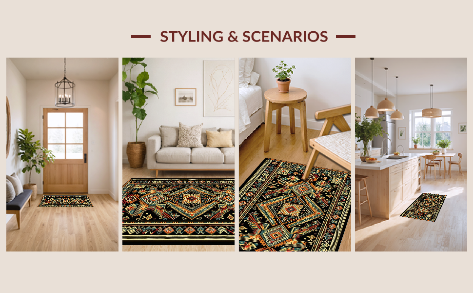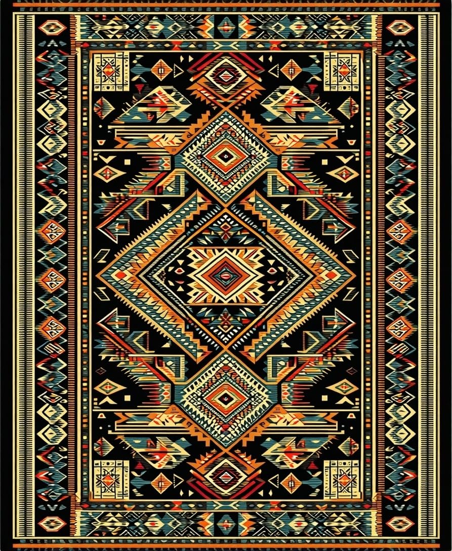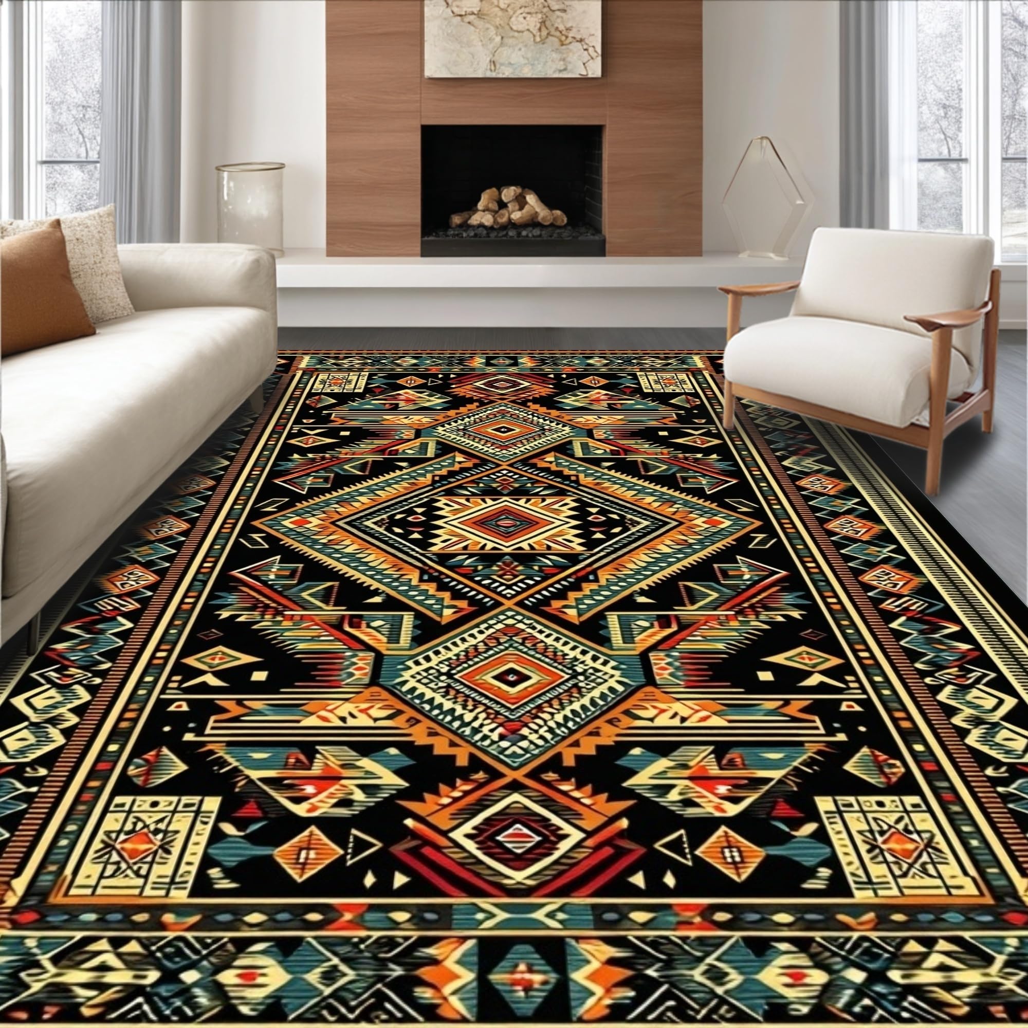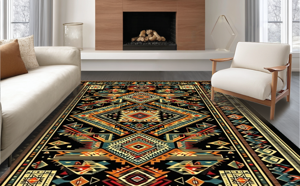 Ultra Soft Area Rug, Non Slip, Stain Resistant, Washable Area Rugs for Living Room, Bedroom, Stylish Mid-Century Black Geometry(Black) Overview: