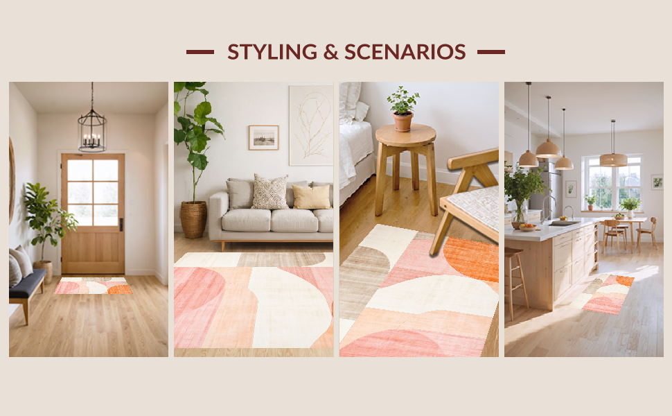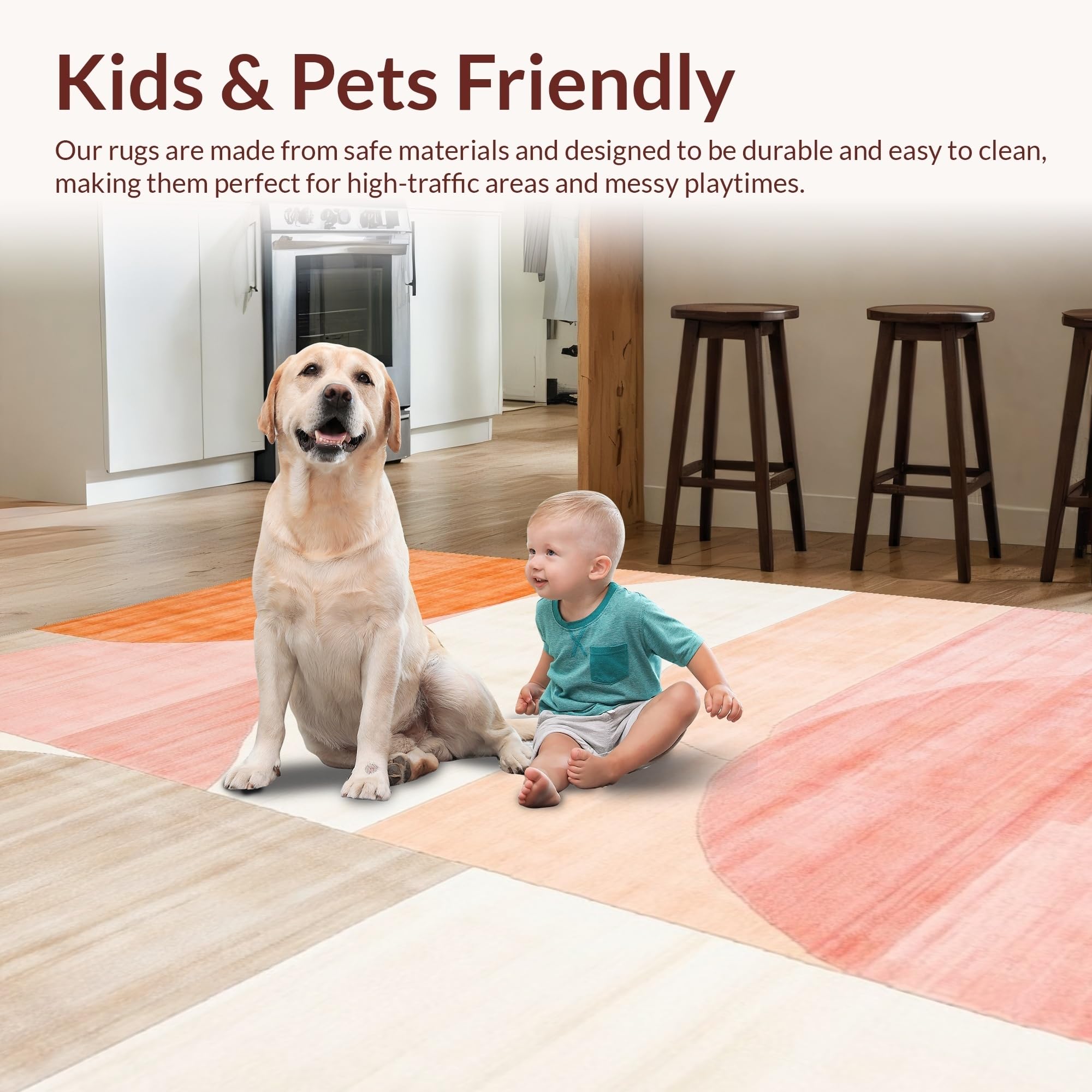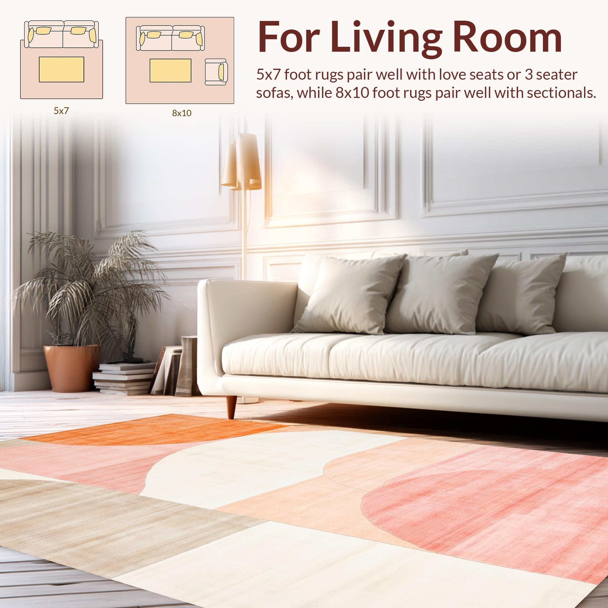 Ultra Soft Area Rug, Non Slip, Stain Resistant, Washable Area Rugs for Living Room, Bedroom, Stylish Mid-Century Modern Aesthetic(White) Overview: