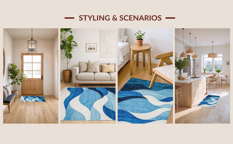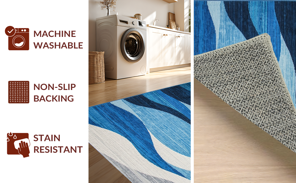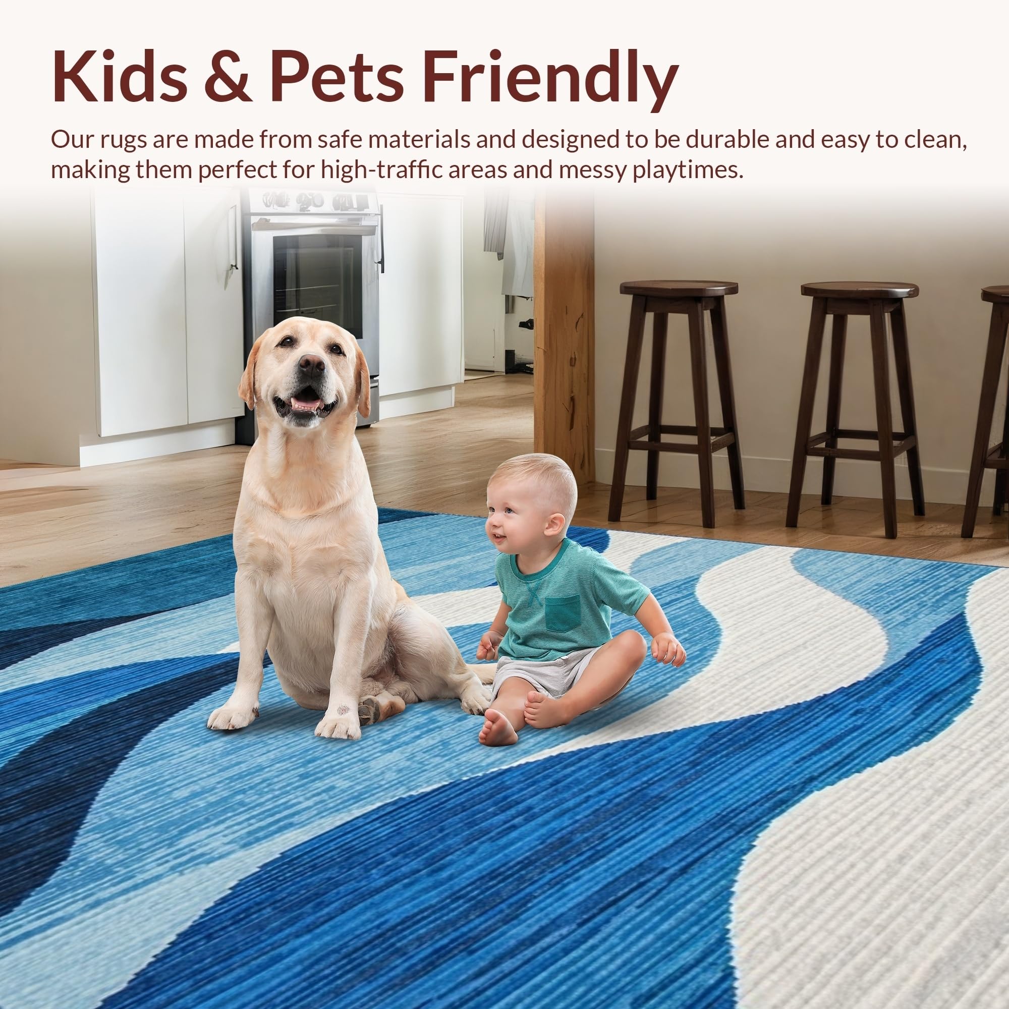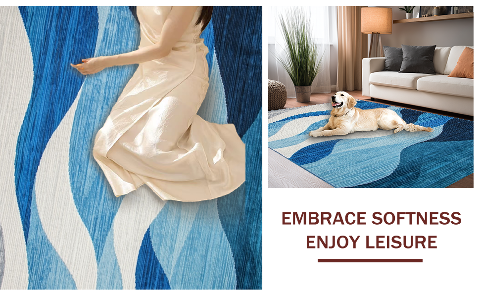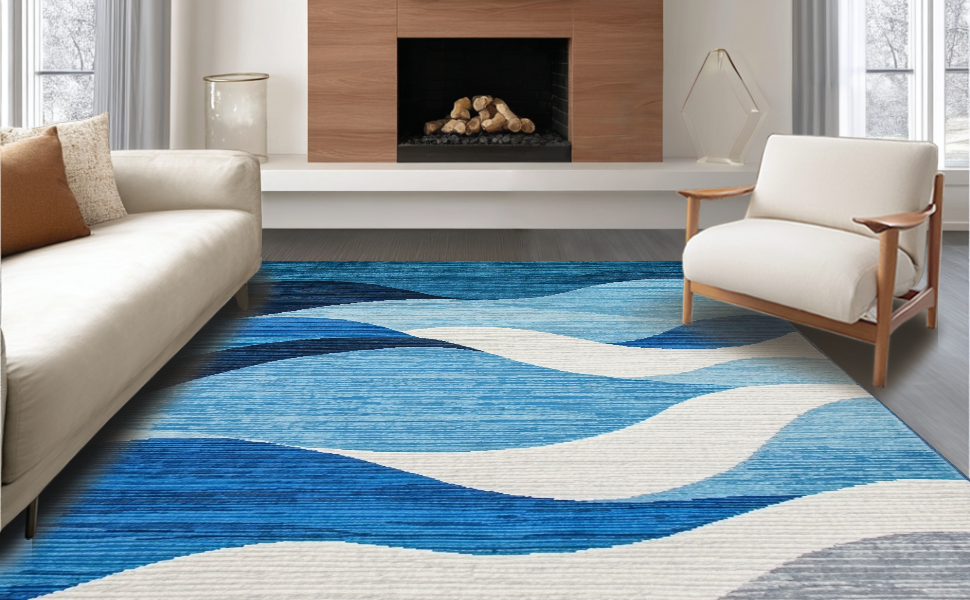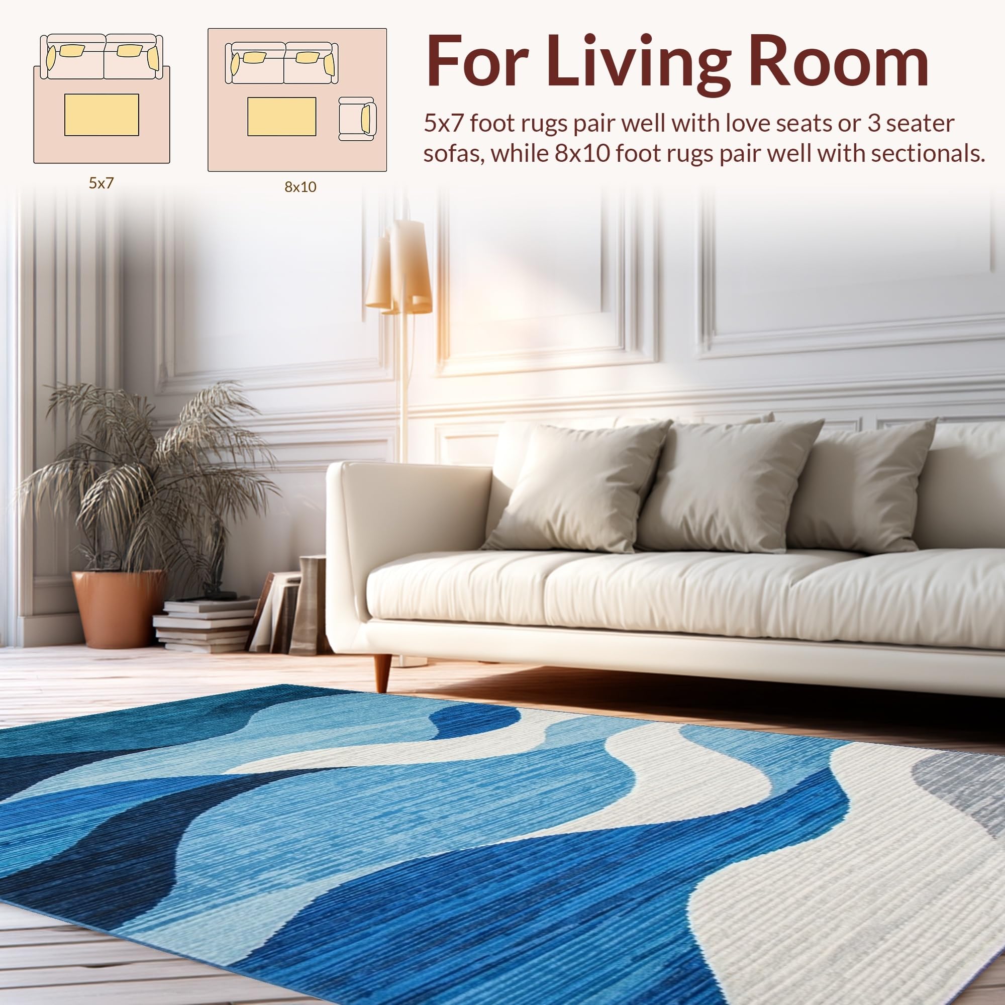 Ultra Soft Area Rug, Non Slip, Stain Resistant, Washable Area Rugs for Living Room, Bedroom, Stylish Minimalist Artistic Texture(Blue) Overview: