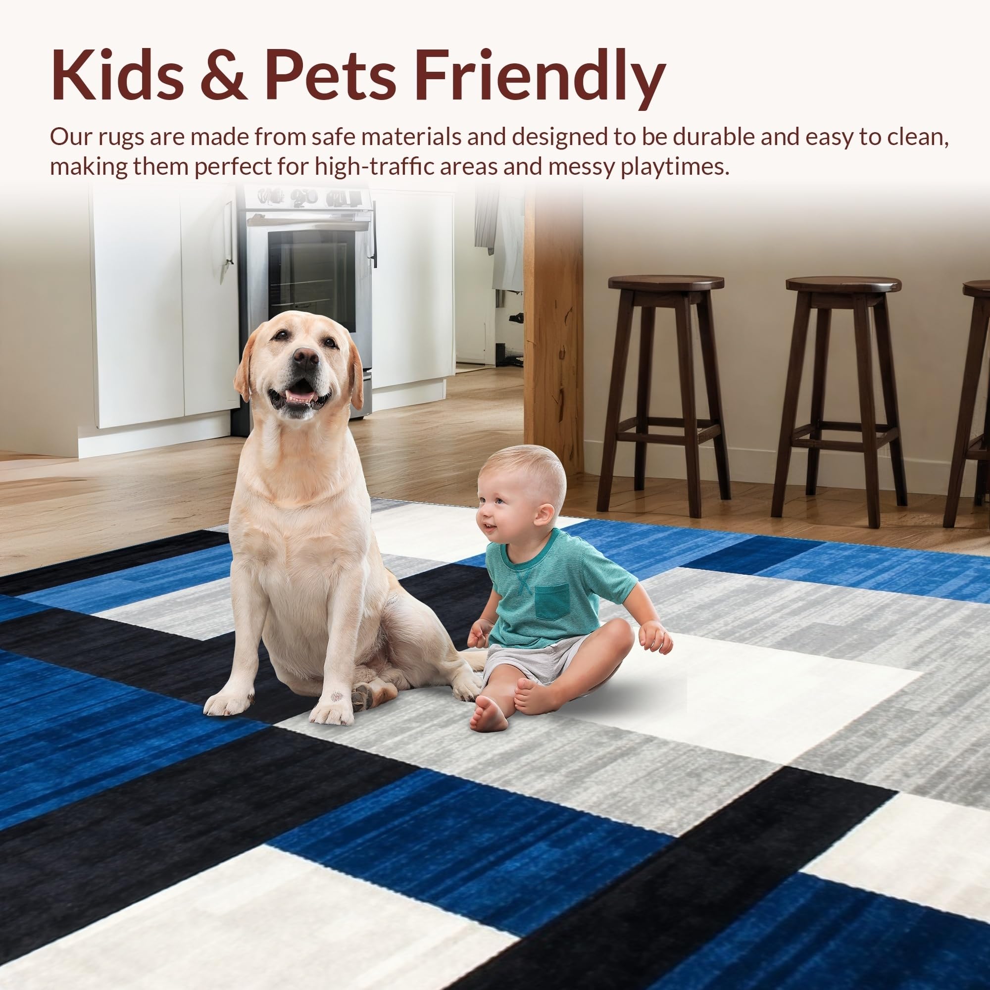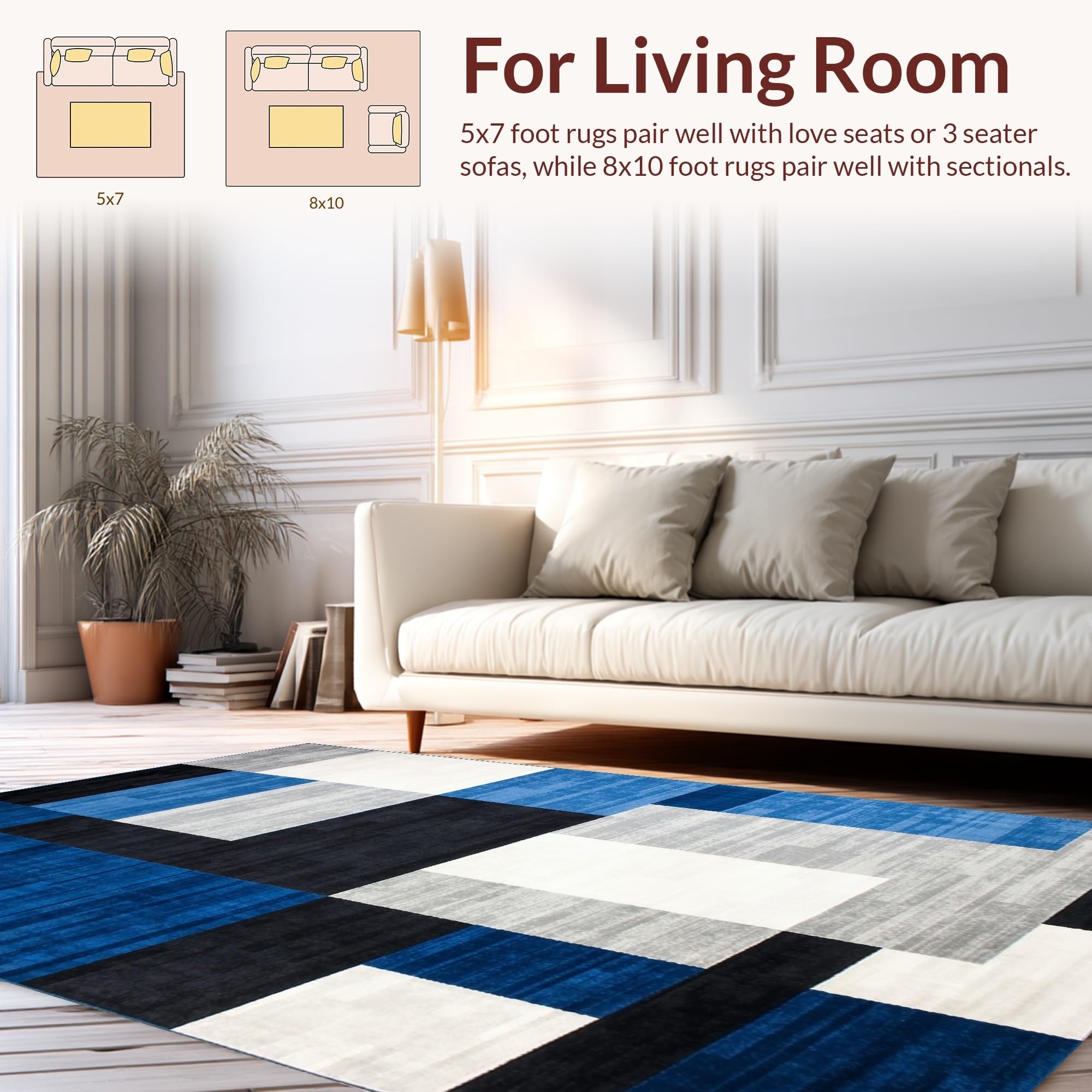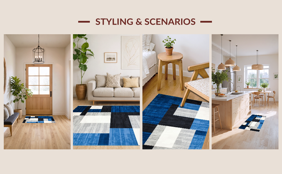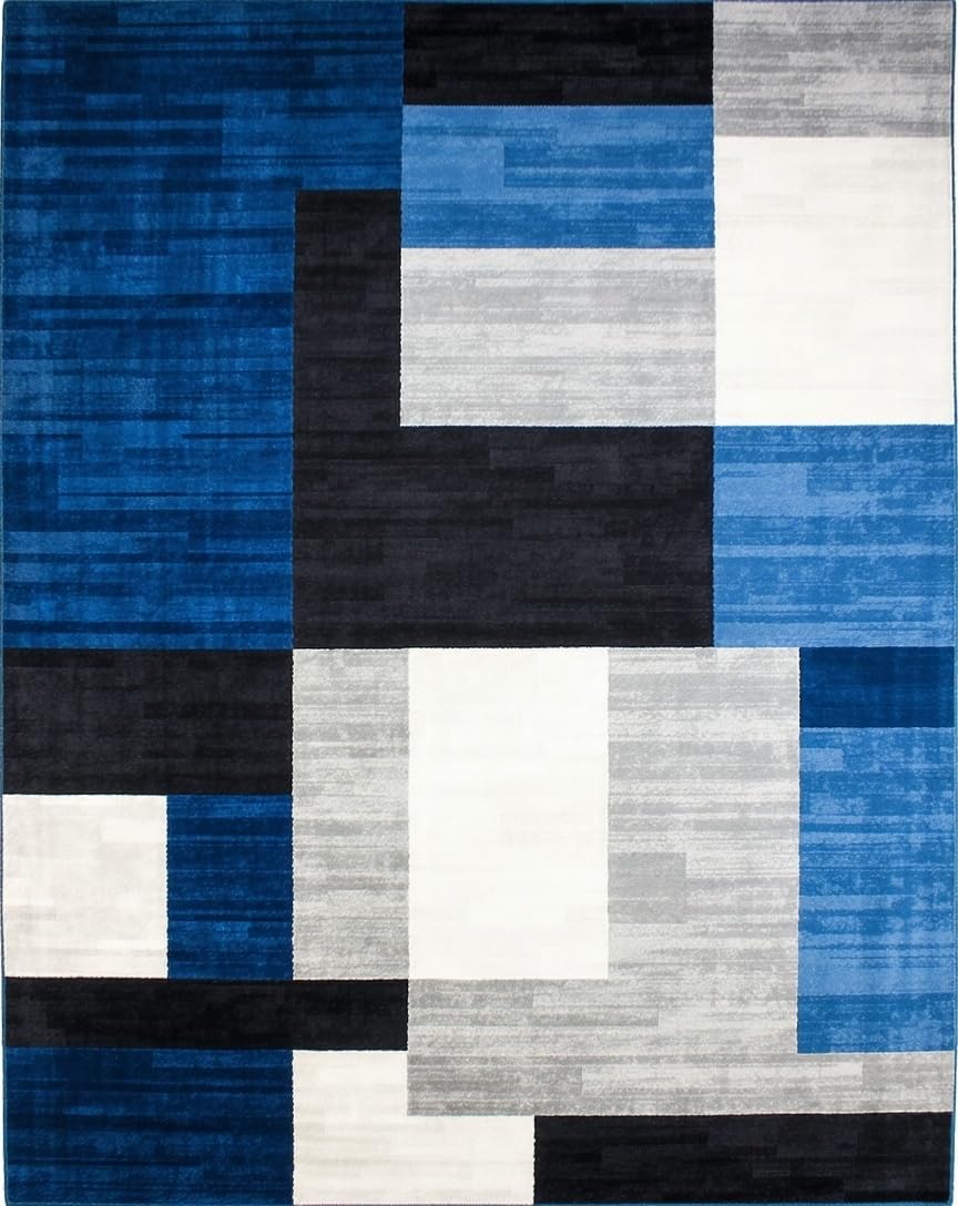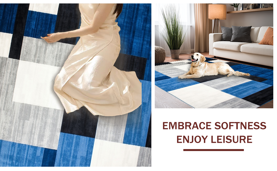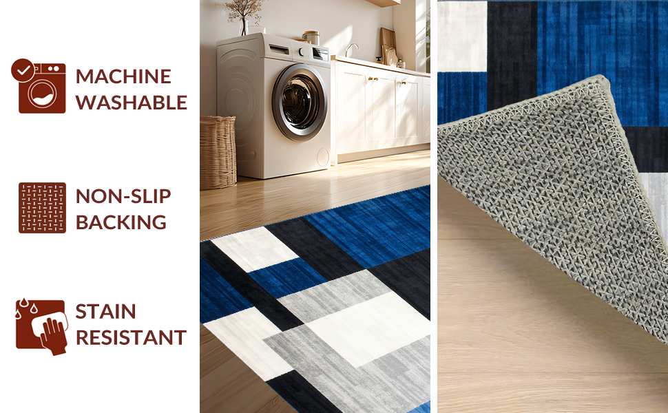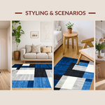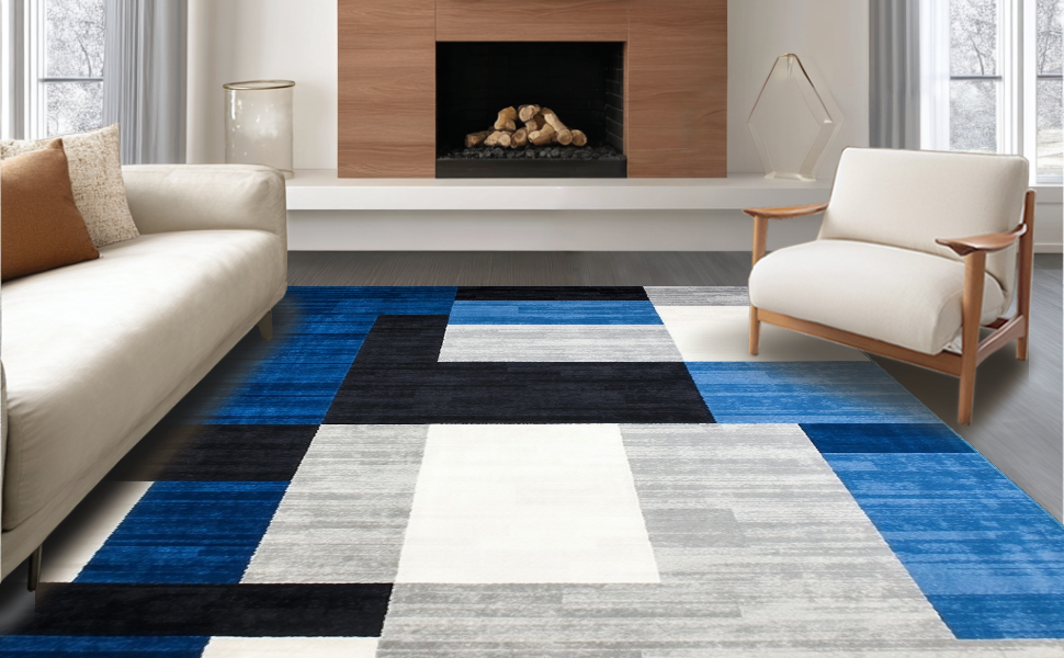 Ultra Soft Area Rug, Non Slip, Stain Resistant, Washable Area Rugs for Living Room, Bedroom, Stylish Minimalist Block Design(Blue) Overview: