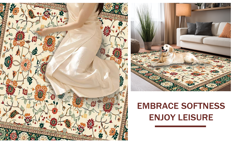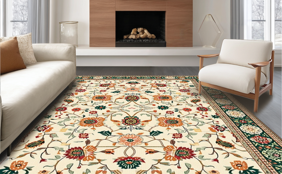 Ultra Soft Area Rug, Non Slip, Stain Resistant, Washable Area Rugs for Living Room, Bedroom, Stylish Minimalist Nature Outline(Ivory) Overview: