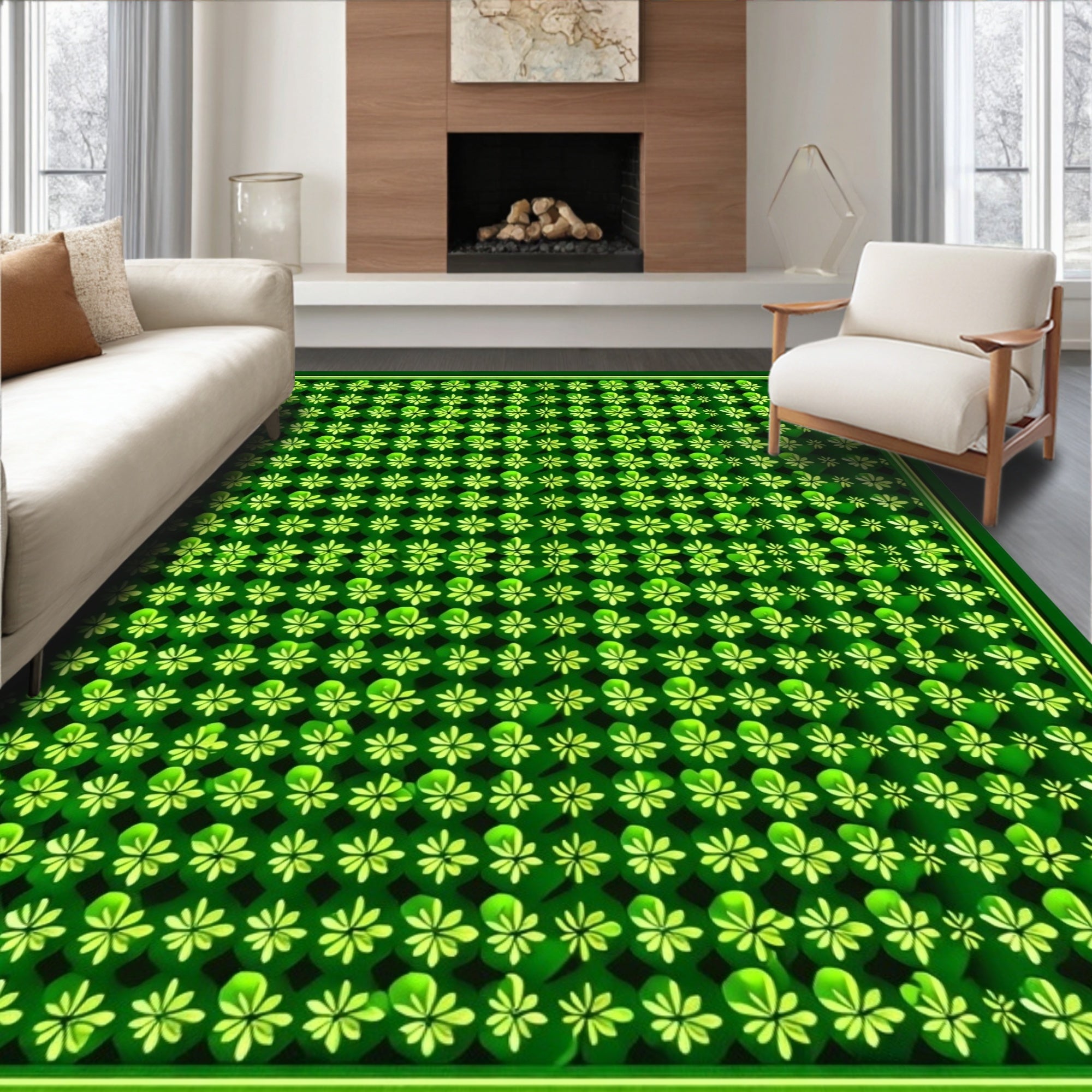 Flatwoven High Traffic Area Rug, Stylish Minimalist Shamrock Graphic, Non Slip, Stain Resistant, Washable Area Rugs for Living Room, Bedroom (Green) Overview: