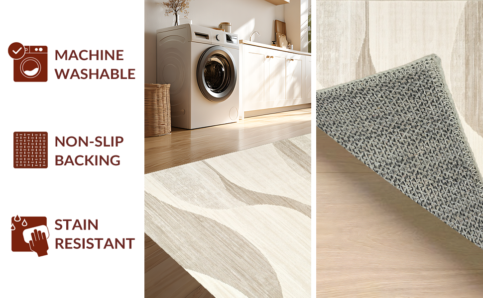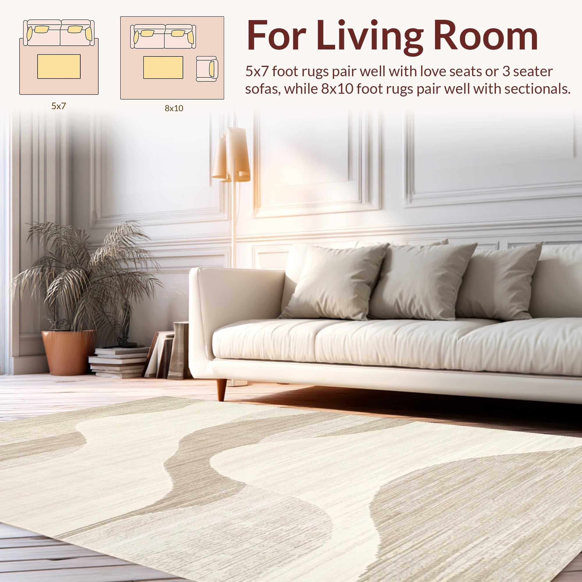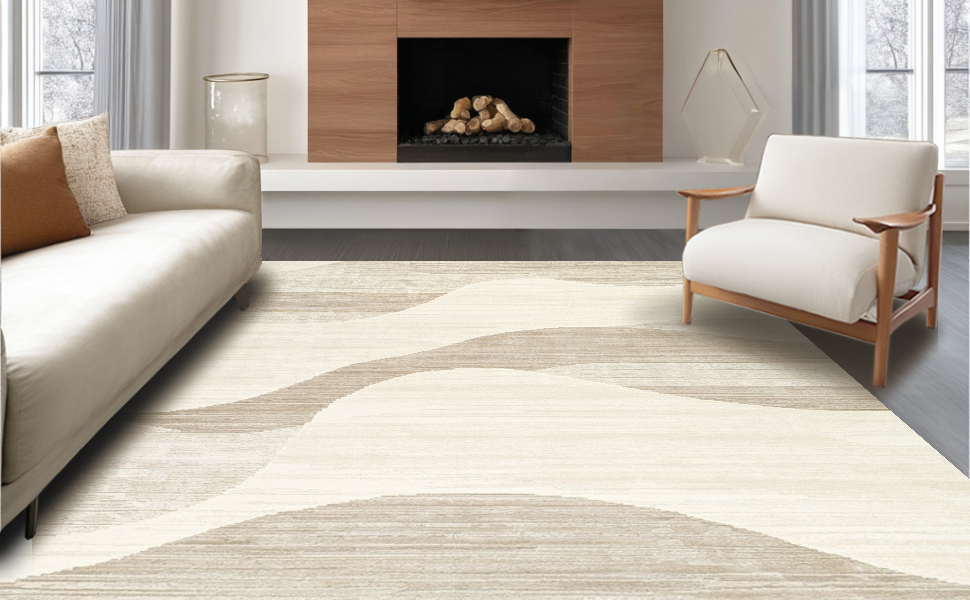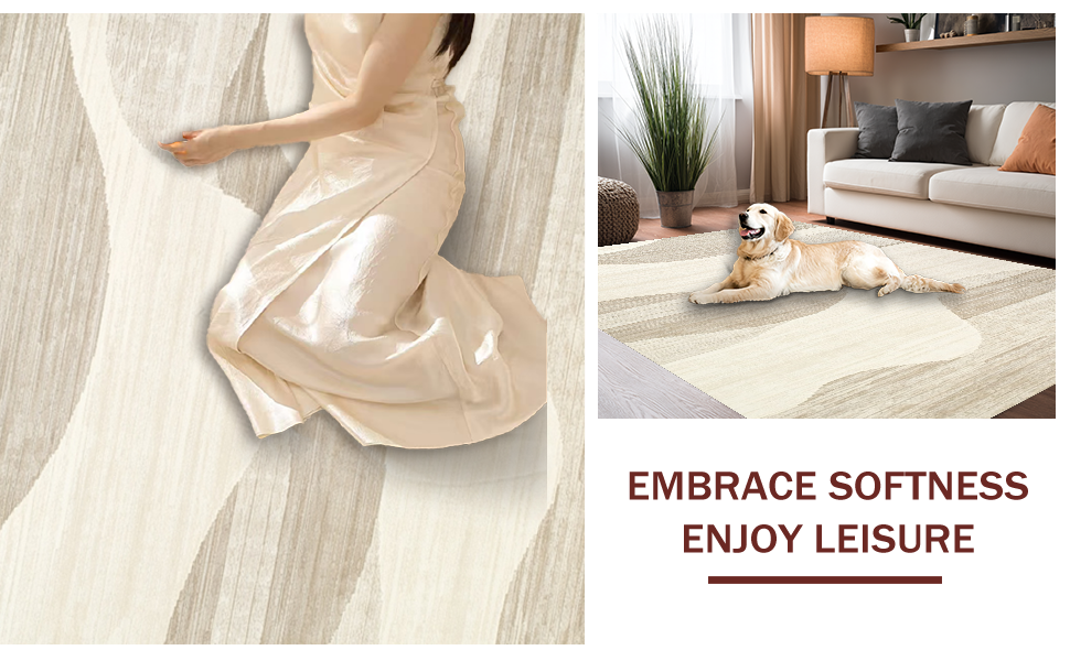 Ultra Soft Area Rug, Non Slip, Stain Resistant, Washable Area Rugs for Living Room, Bedroom, Stylish Modern Dynamic Patterns(Beige) Overview: