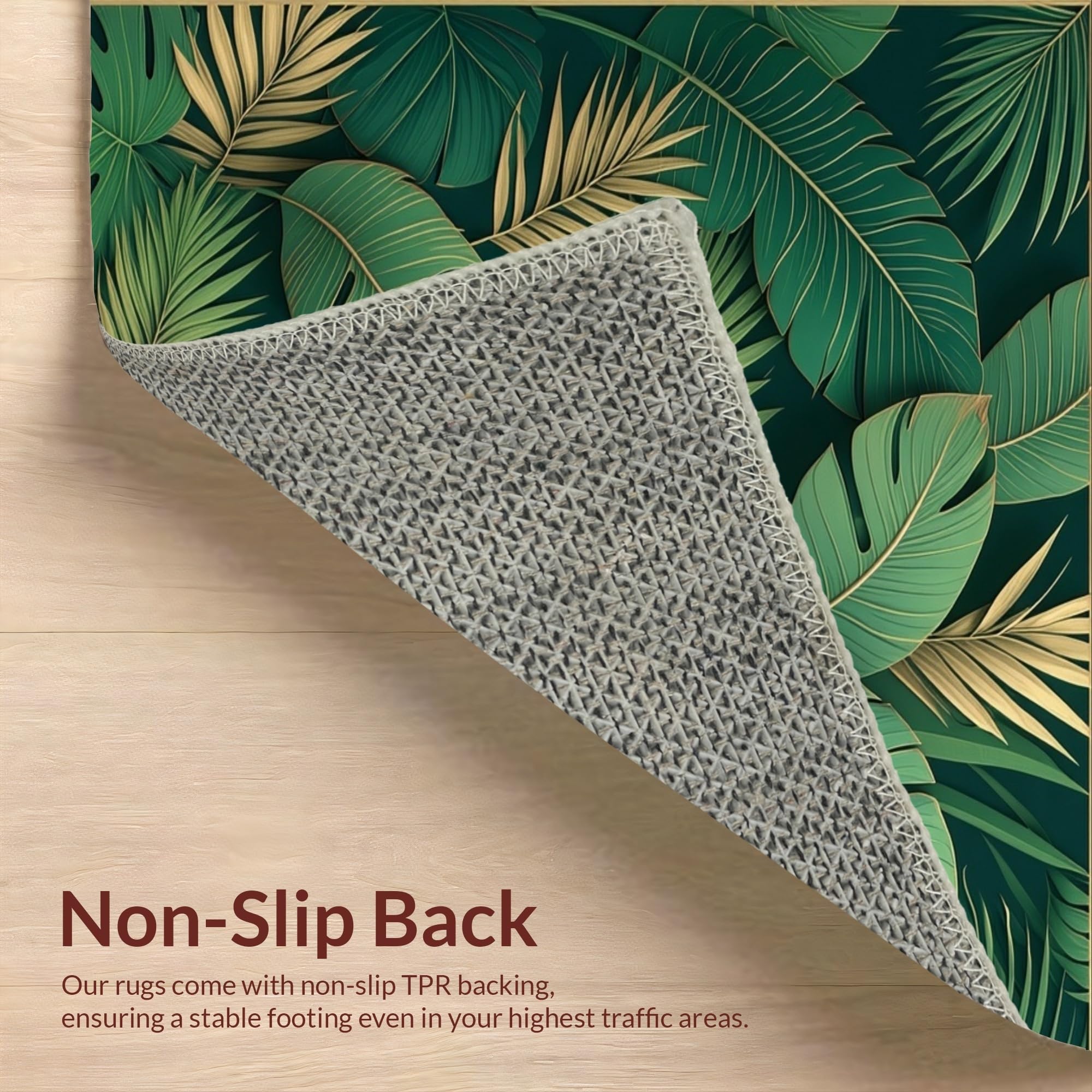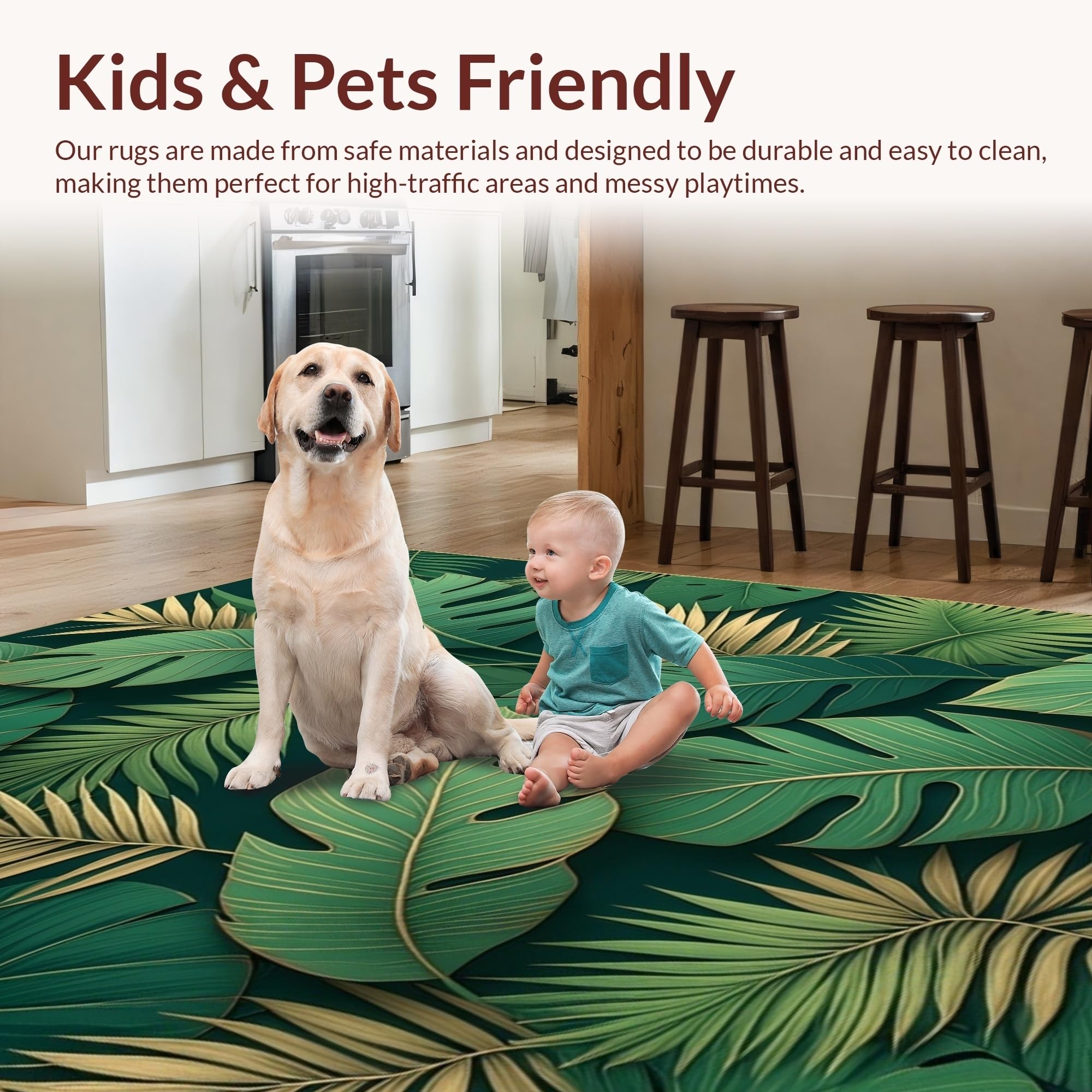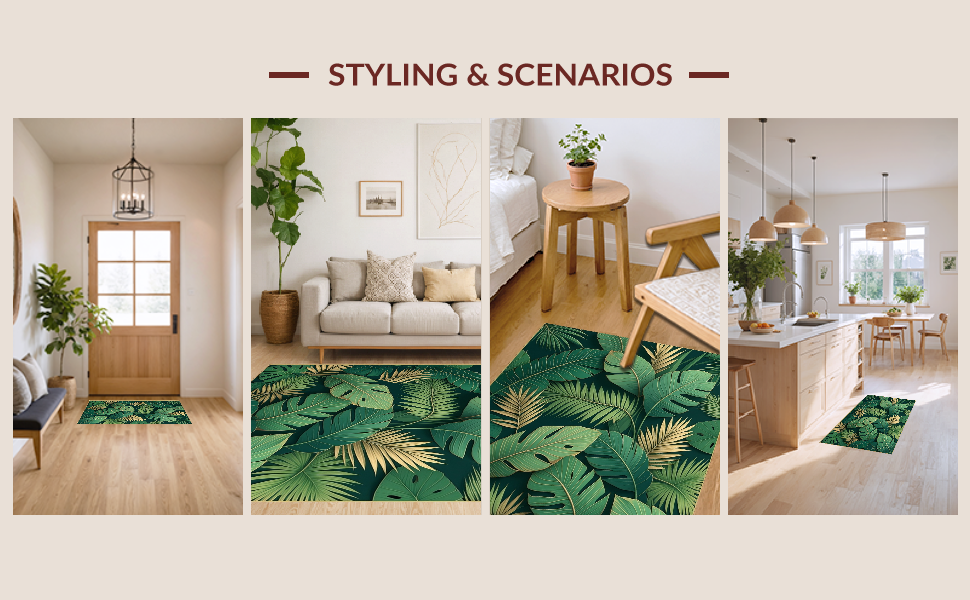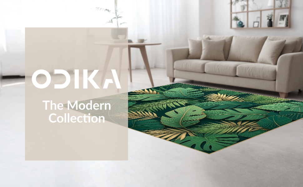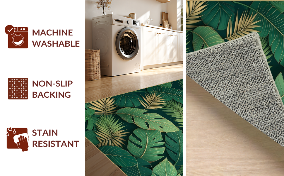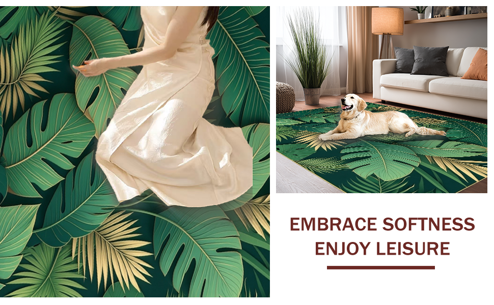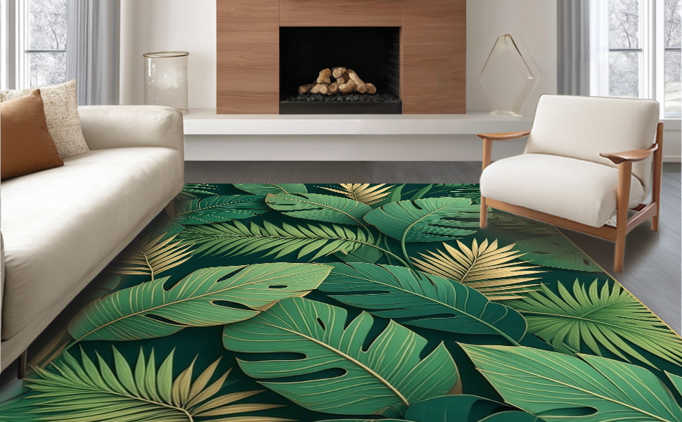 Ultra Soft Area Rug, Non Slip, Stain Resistant, Washable Area Rugs for Living Room, Bedroom, Stylish Modern Leaf Illustration(Green) Overview: