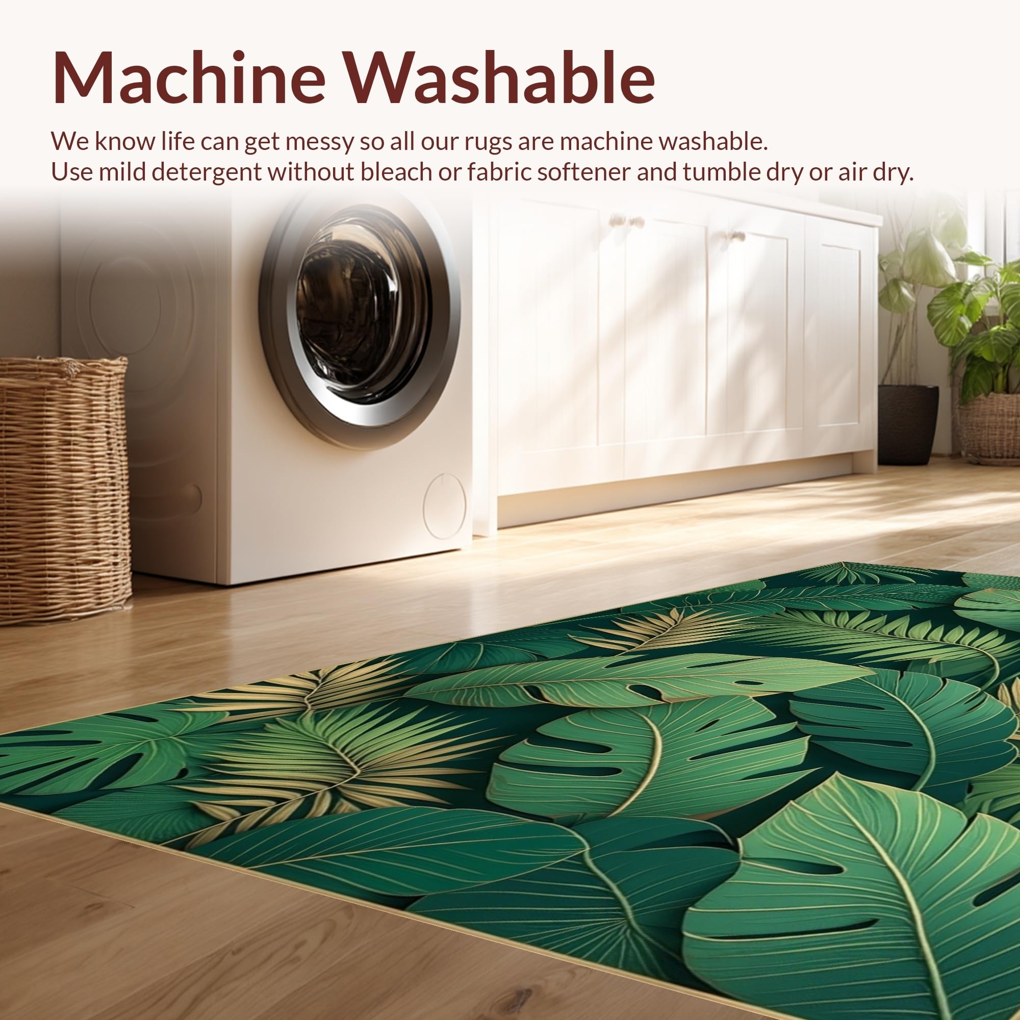 - Machine Washable: Our rugs can be easily thrown in the wash machine.