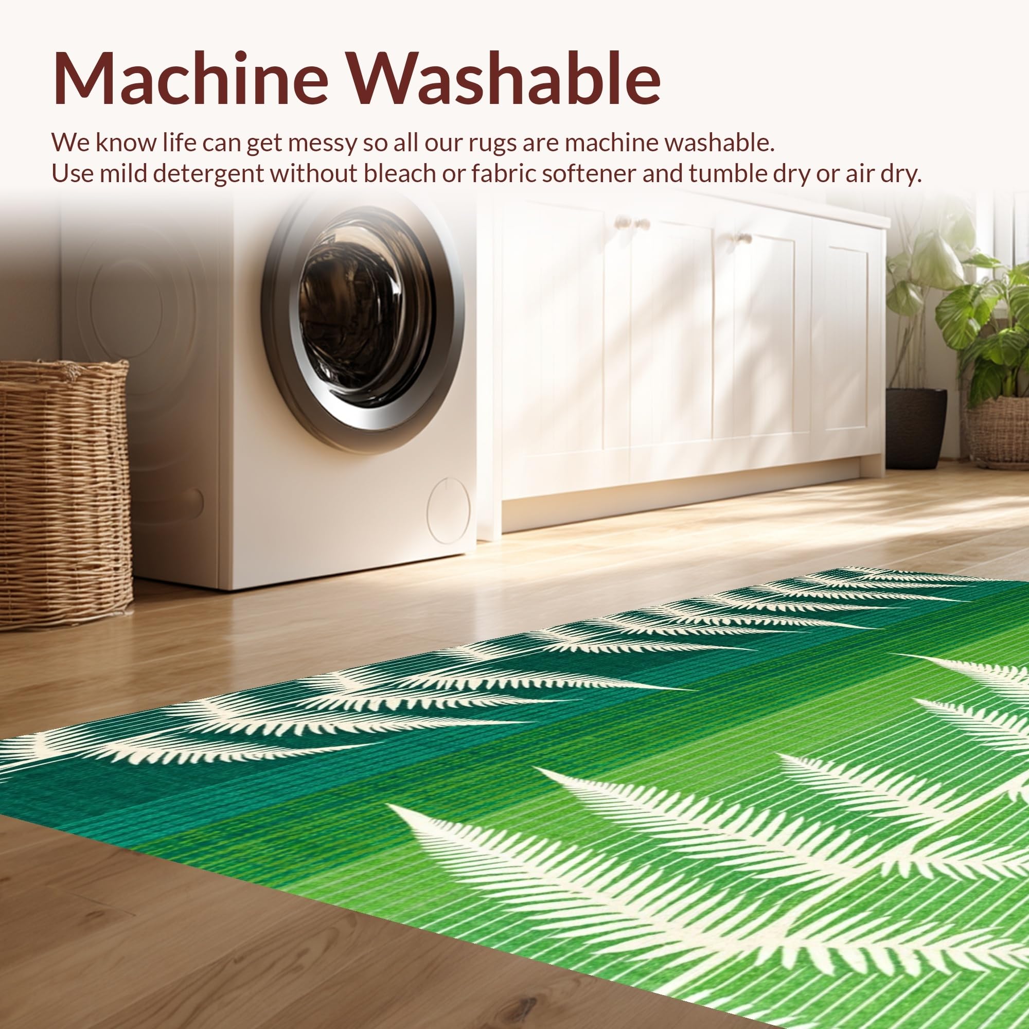 - Machine Washable: Our rugs can be easily thrown in the wash machine.
