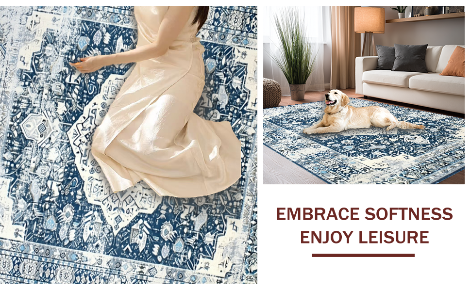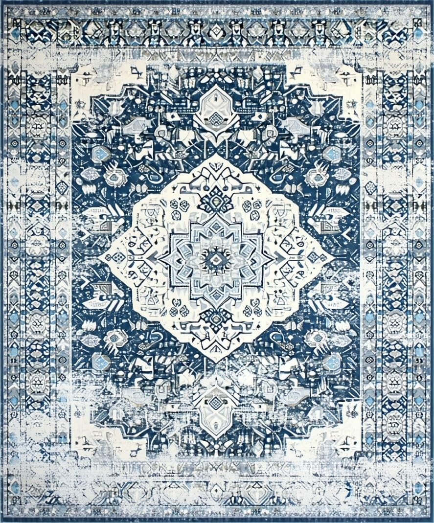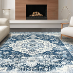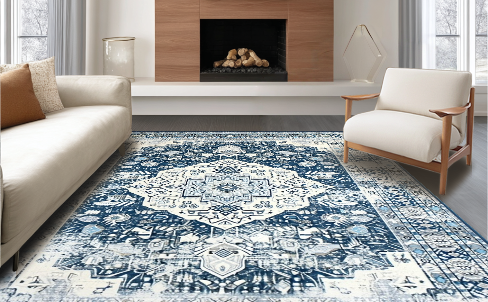 Ultra Soft Area Rug, Non Slip, Stain Resistant, Washable Area Rugs for Living Room, Bedroom, Stylish Modern Symmetrical Design(Blue) Overview: