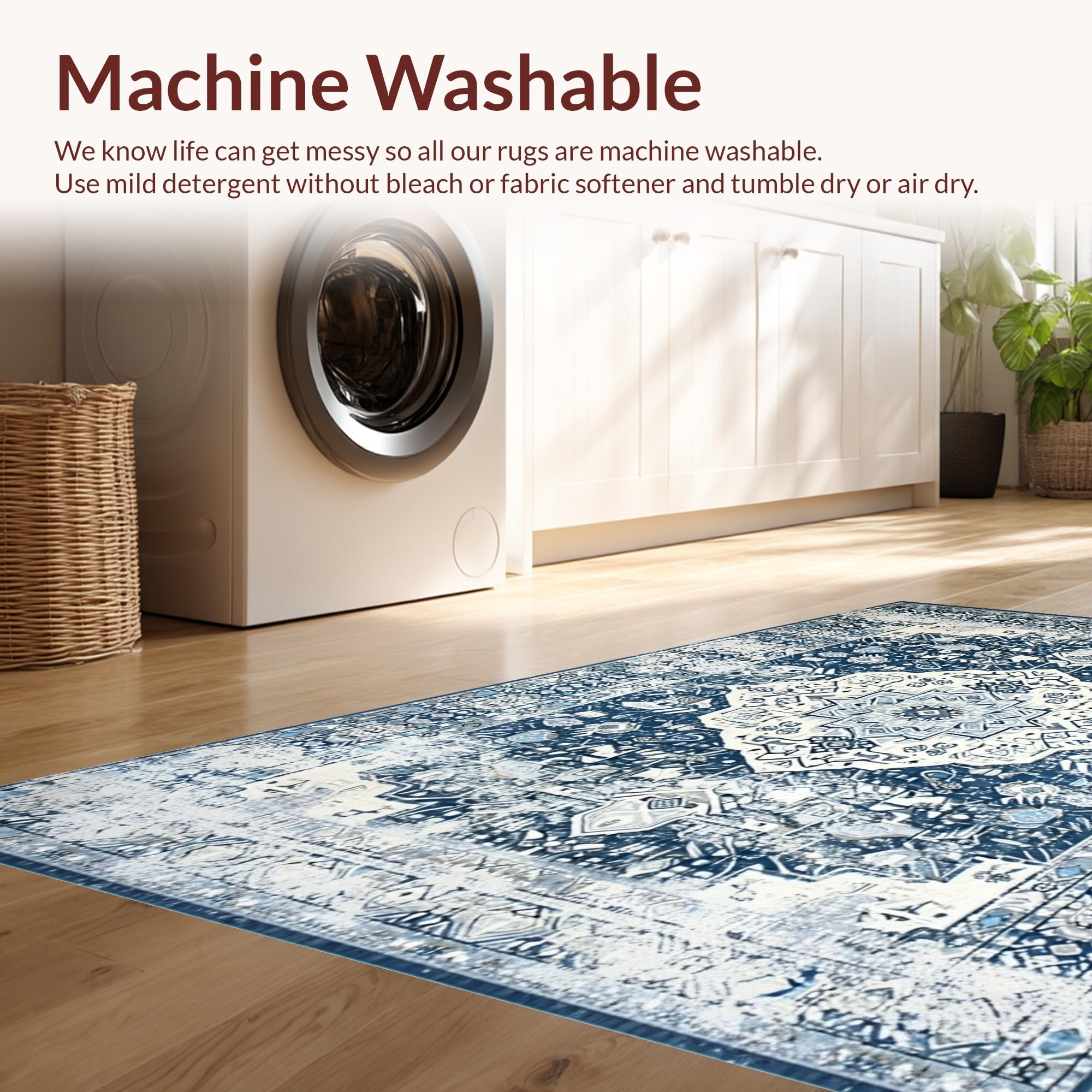 - Machine Washable: Our rugs can be easily thrown in the wash machine.