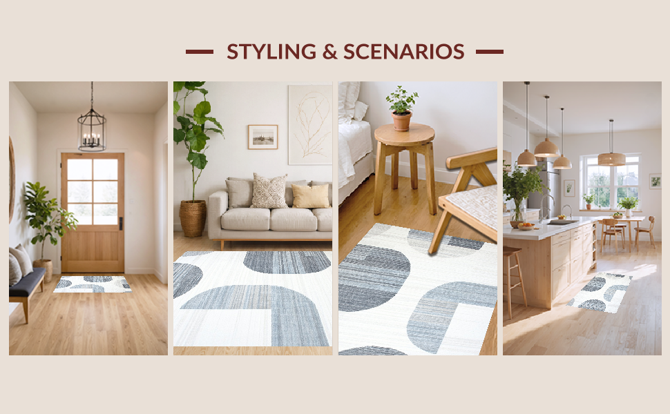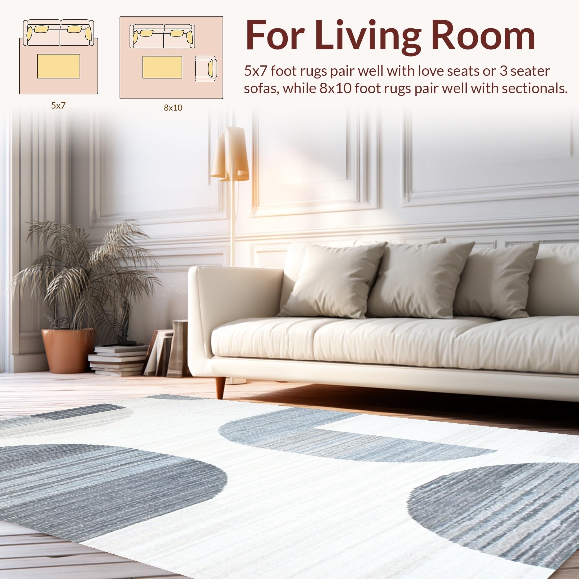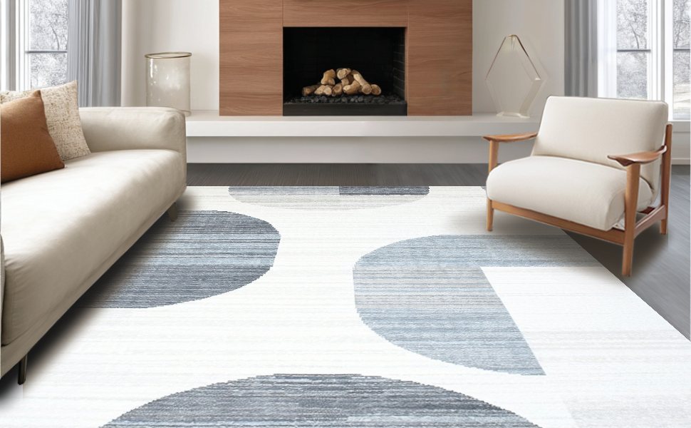 Ultra Soft Area Rug, Non Slip, Stain Resistant, Washable Area Rugs for Living Room, Bedroom, Stylish Modern Symmetrical Motif(Gray) Overview: