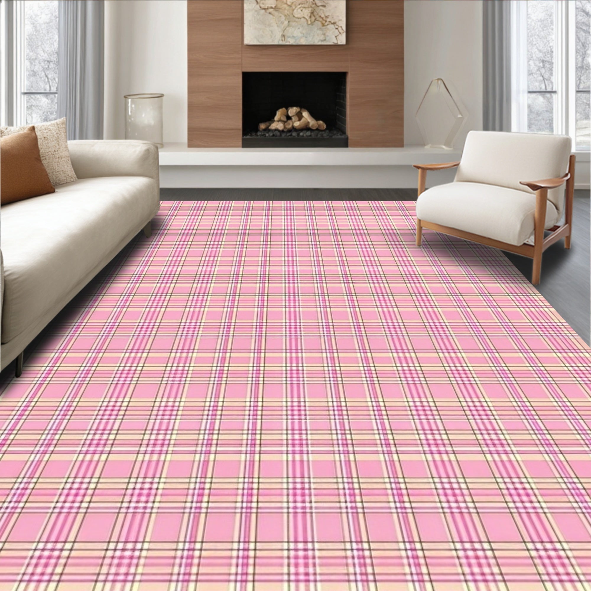 Flatwoven High Traffic Area Rug, Stylish Modern Tiled Aesthetic, Non Slip, Stain Resistant, Washable Area Rugs for Living Room, Bedroom (Pink) Overview: