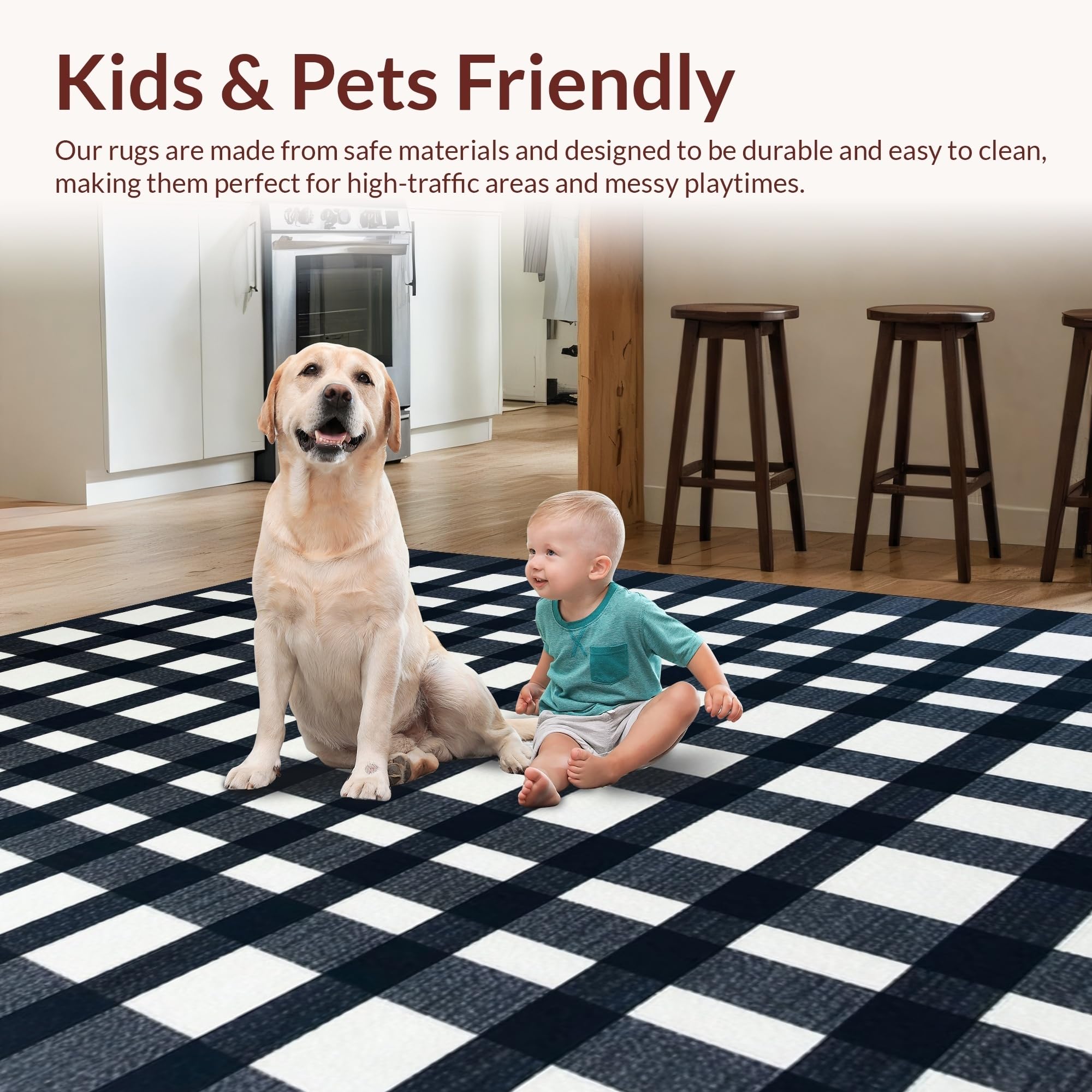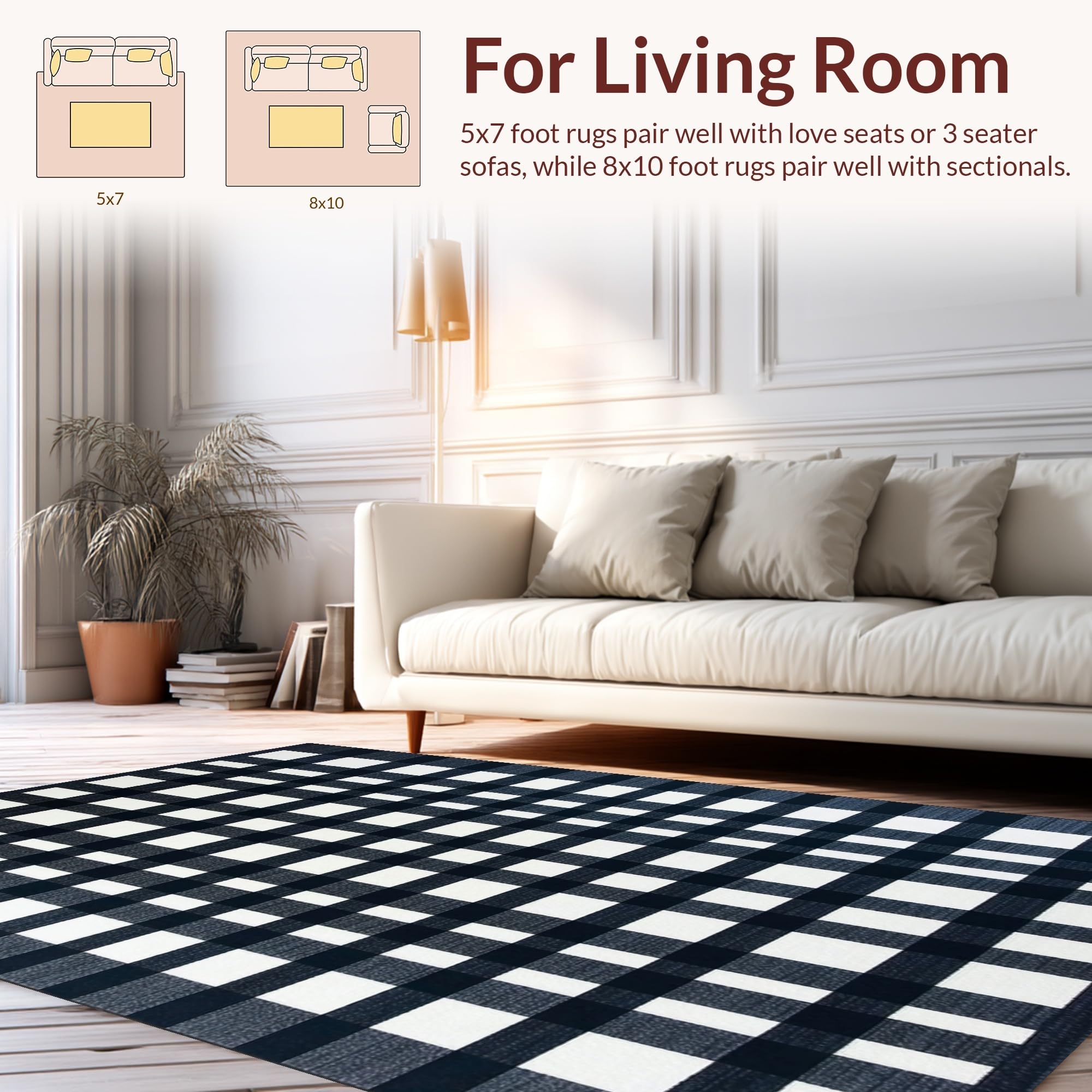 Ultra Soft Area Rug, Non Slip, Stain Resistant, Washable Area Rugs for Living Room, Bedroom, Stylish Monochrome Diamond Texture(Black) Overview: