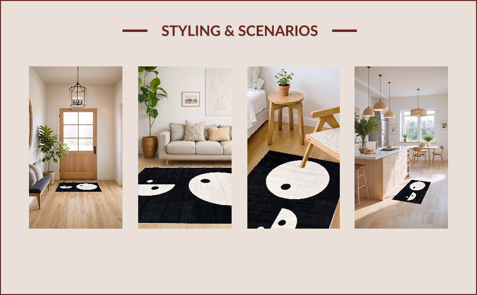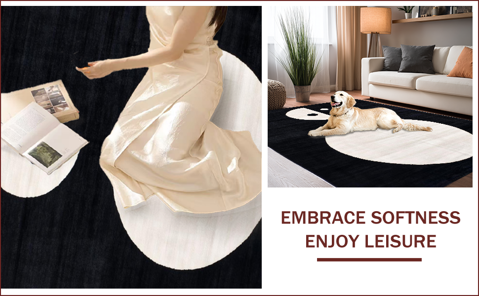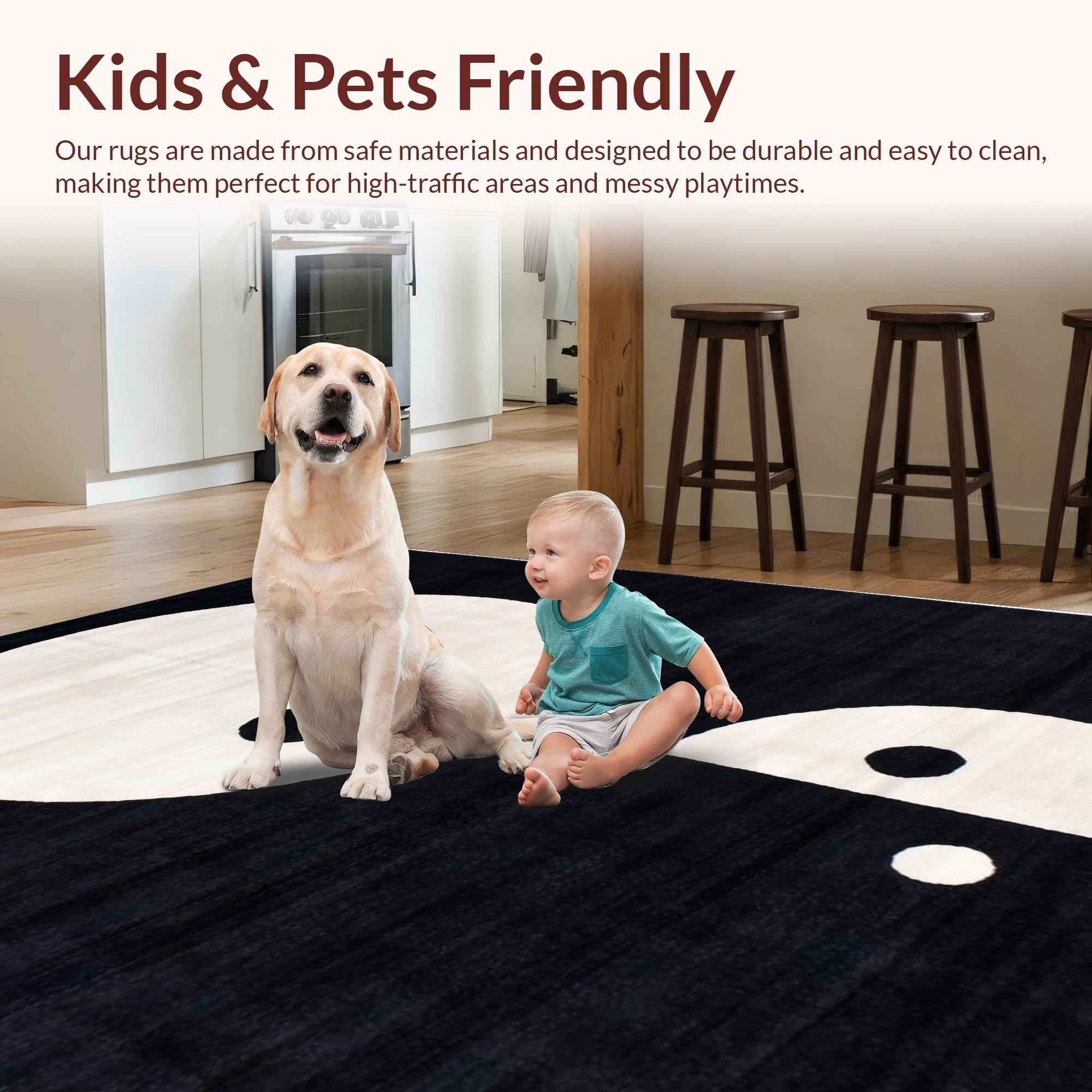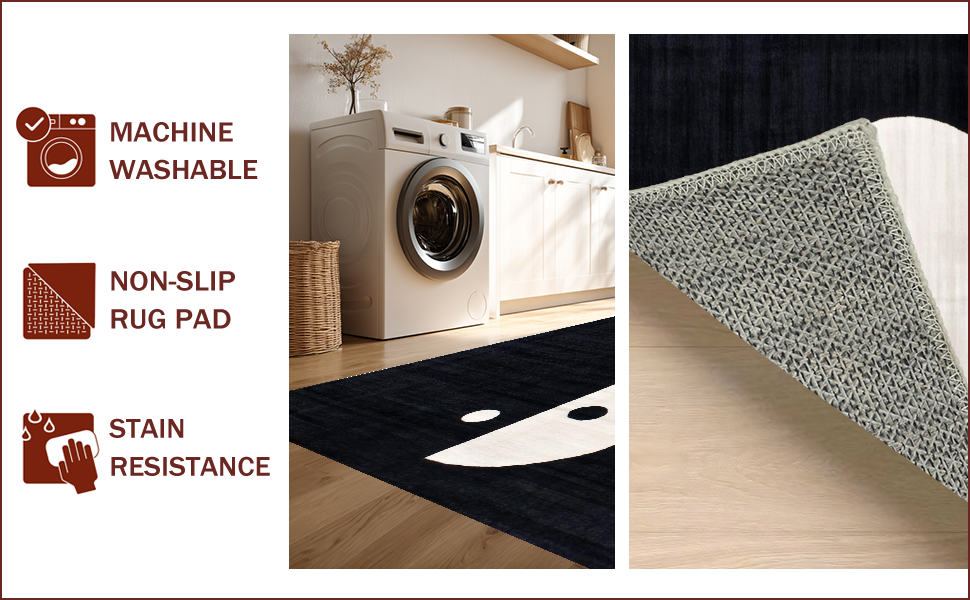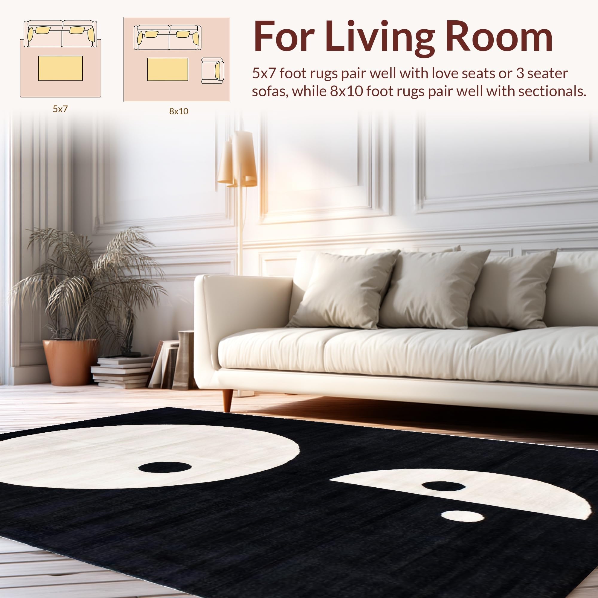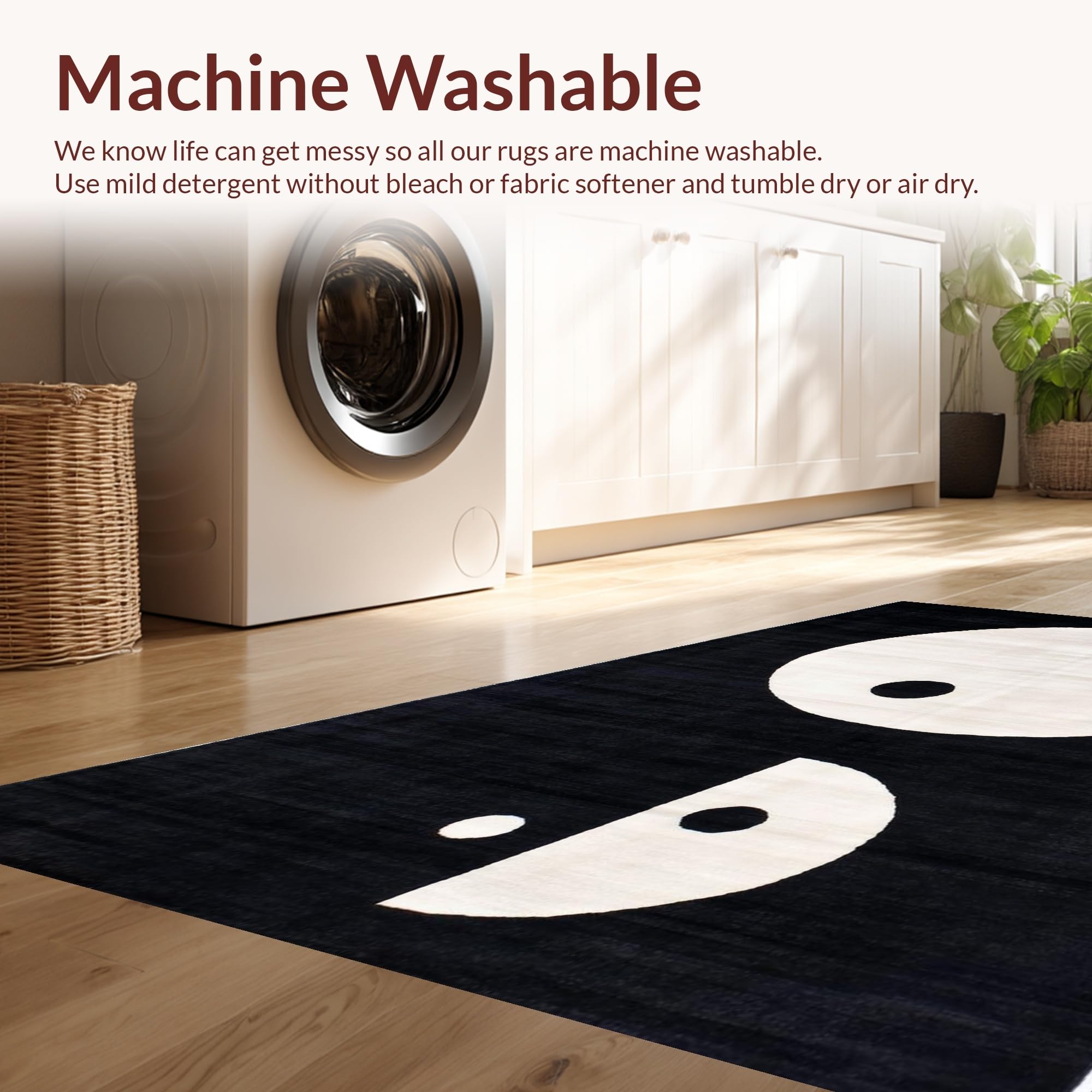 Ultra Soft Area Rug, Non Slip, Stain Resistant, Washable Area Rugs for Living Room, Bedroom, Stylish Monochrome Harmony Design(Black) Overview: