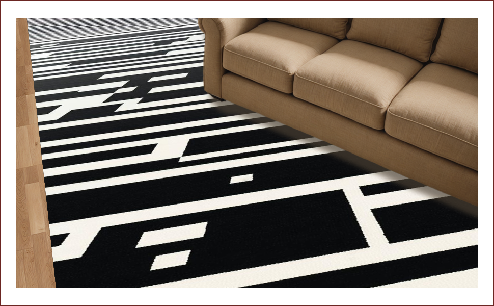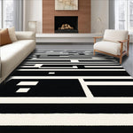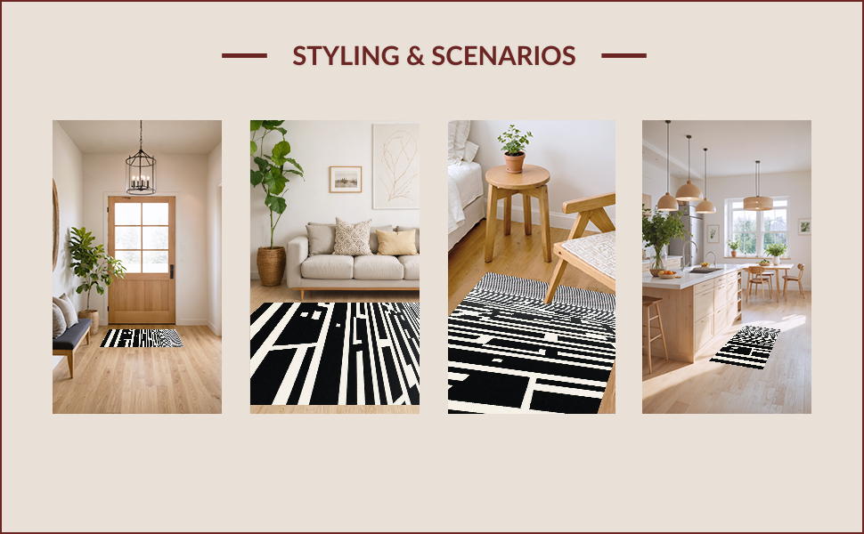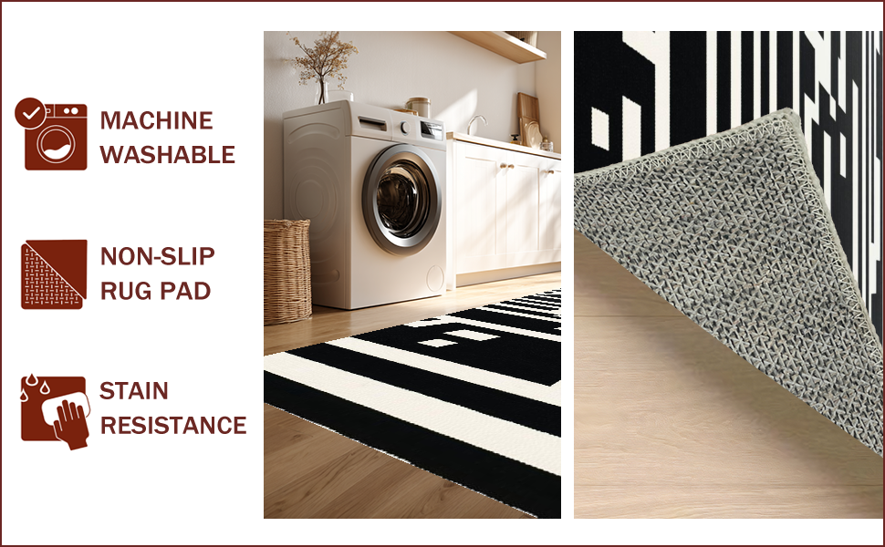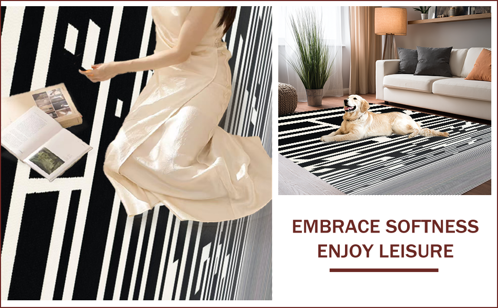 Ultra Soft Area Rug, Non Slip, Stain Resistant, Washable Area Rugs for Living Room, Bedroom, Stylish Monochrome Striped Decor Element(Black) Overview: