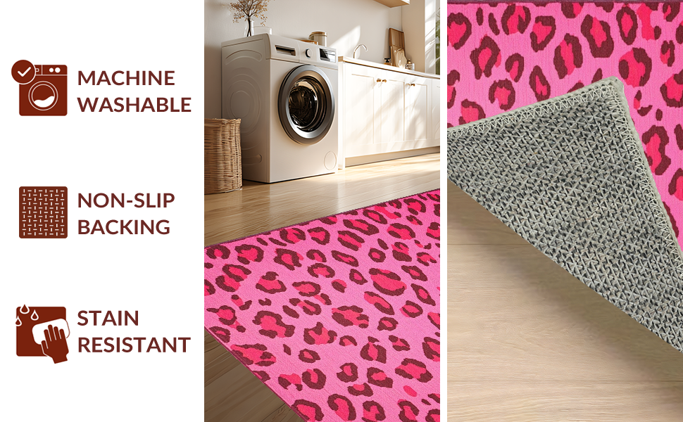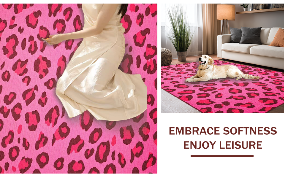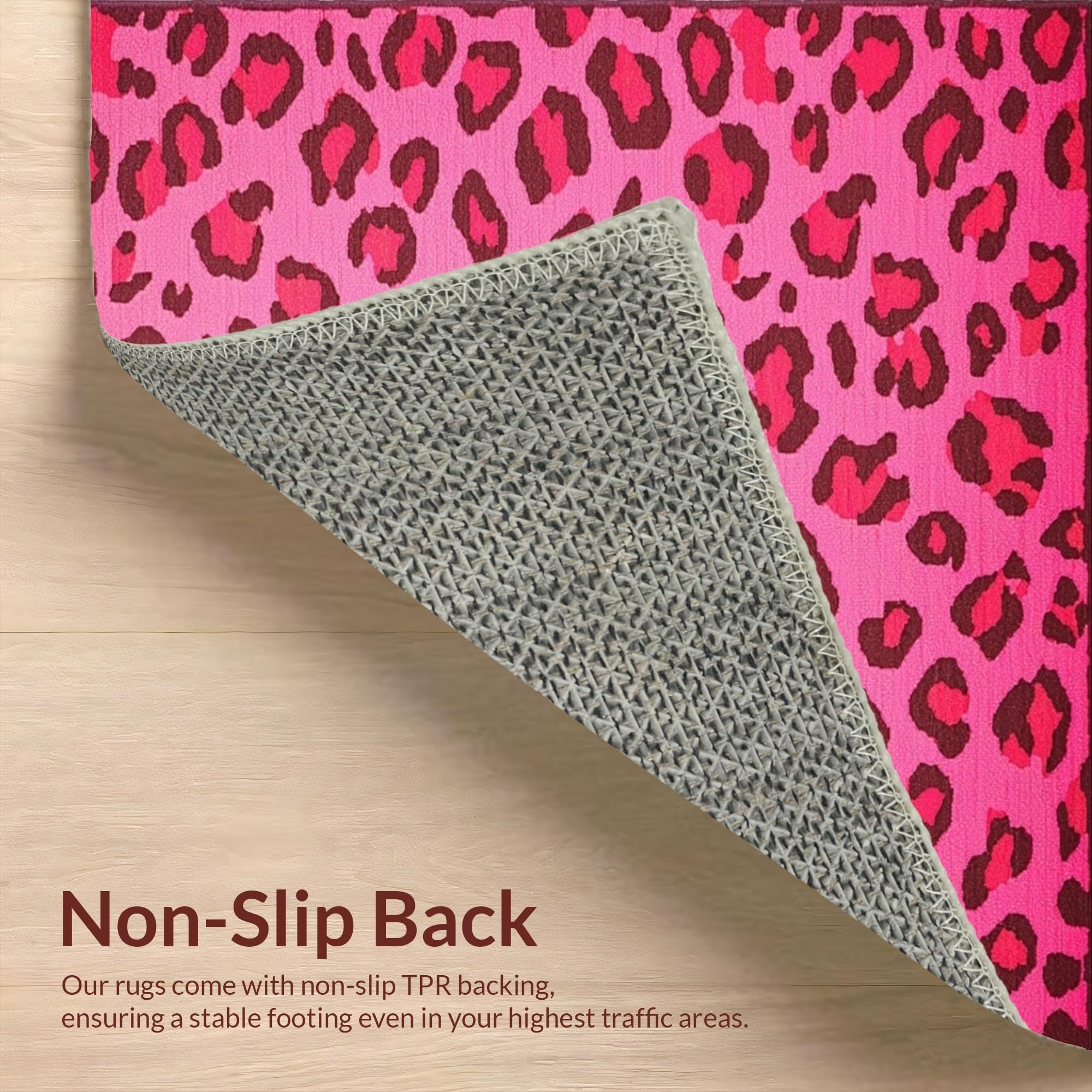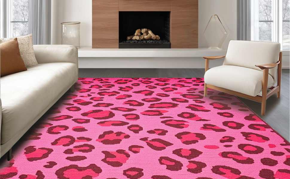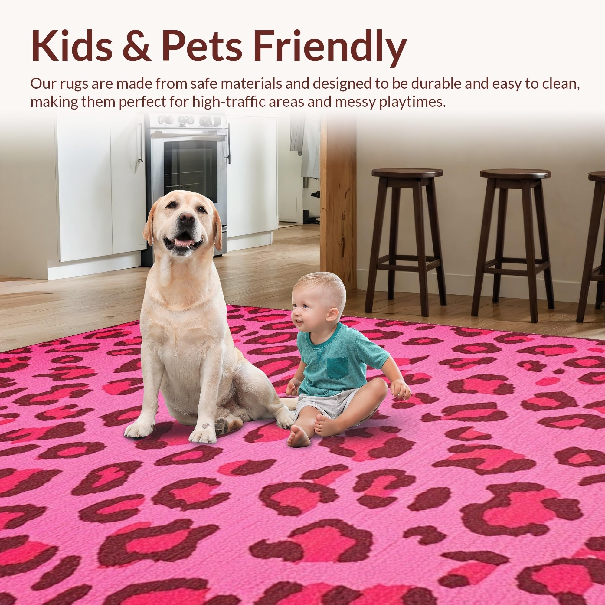 Ultra Soft Area Rug, Non Slip, Stain Resistant, Washable Area Rugs for Living Room, Bedroom, Stylish Multi-Color Cheetah Theme(Pink) Overview: