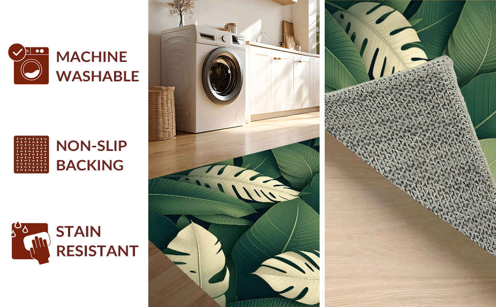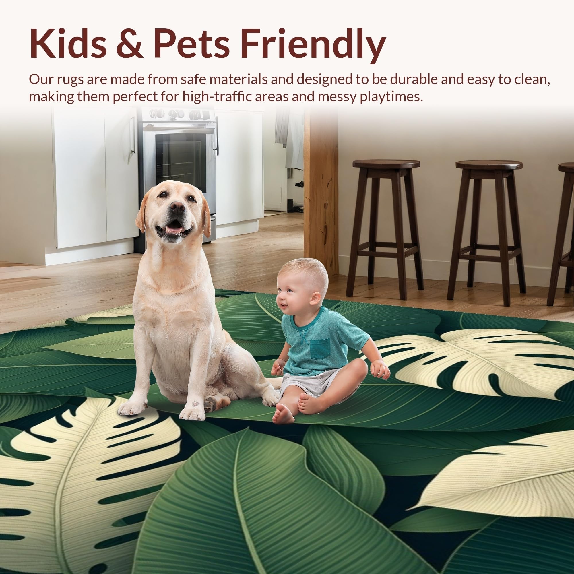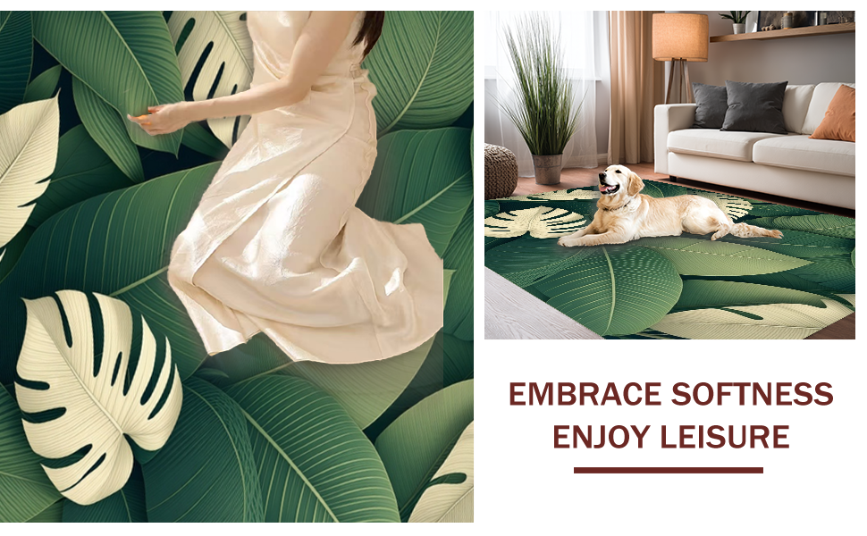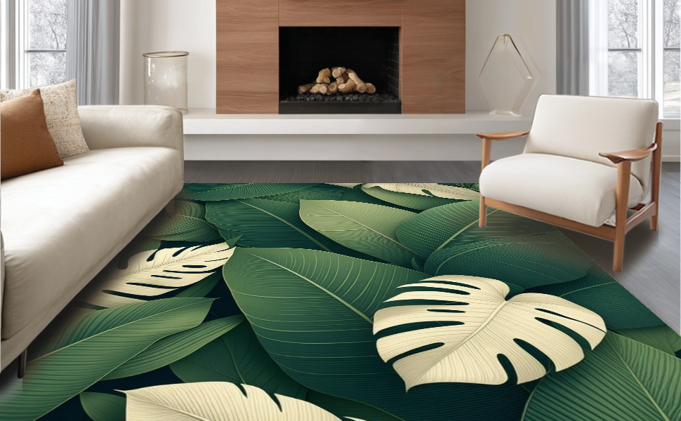 Ultra Soft Area Rug, Non Slip, Stain Resistant, Washable Area Rugs for Living Room, Bedroom, Stylish Nature-Inspired Print(Green) Overview: